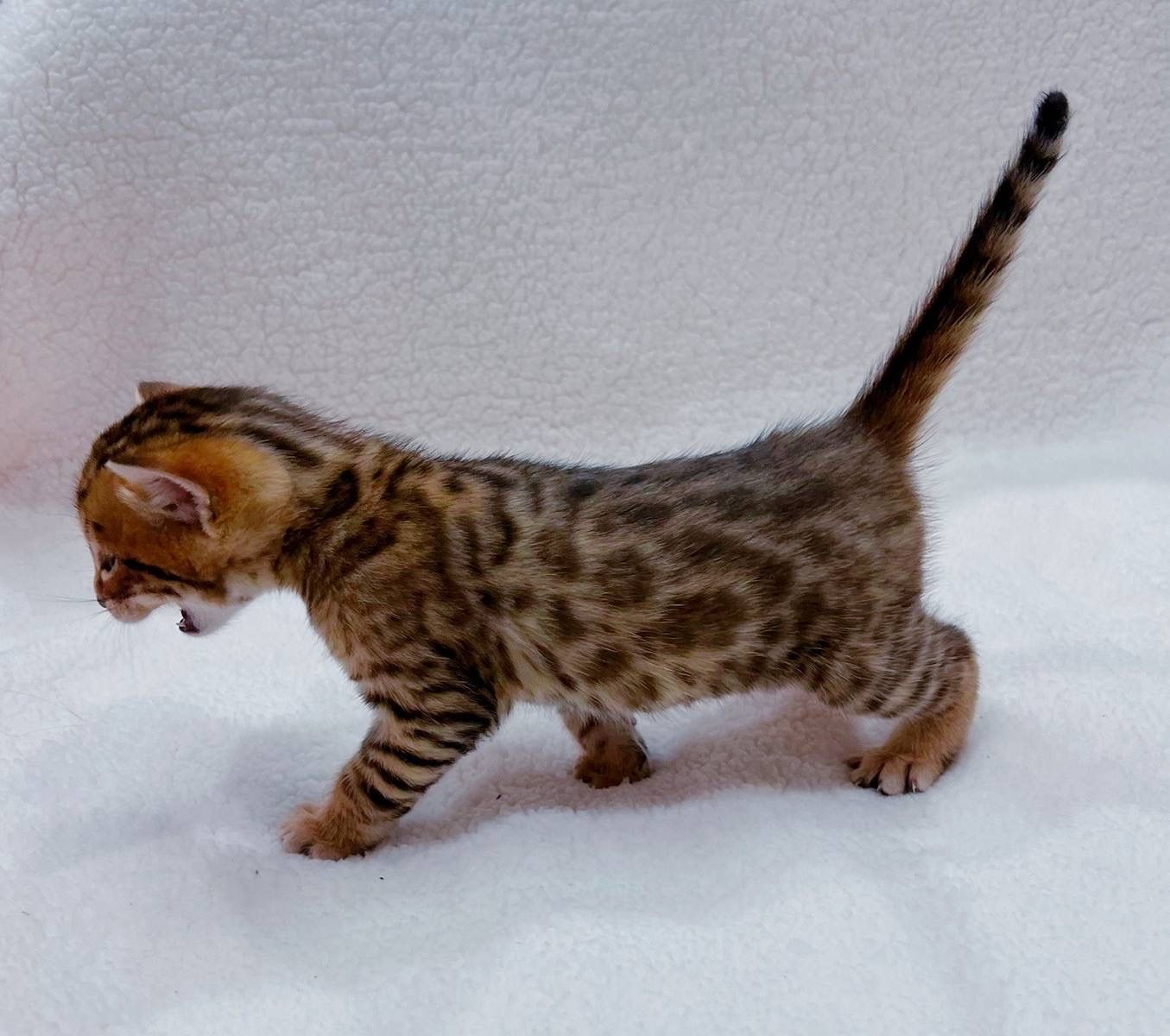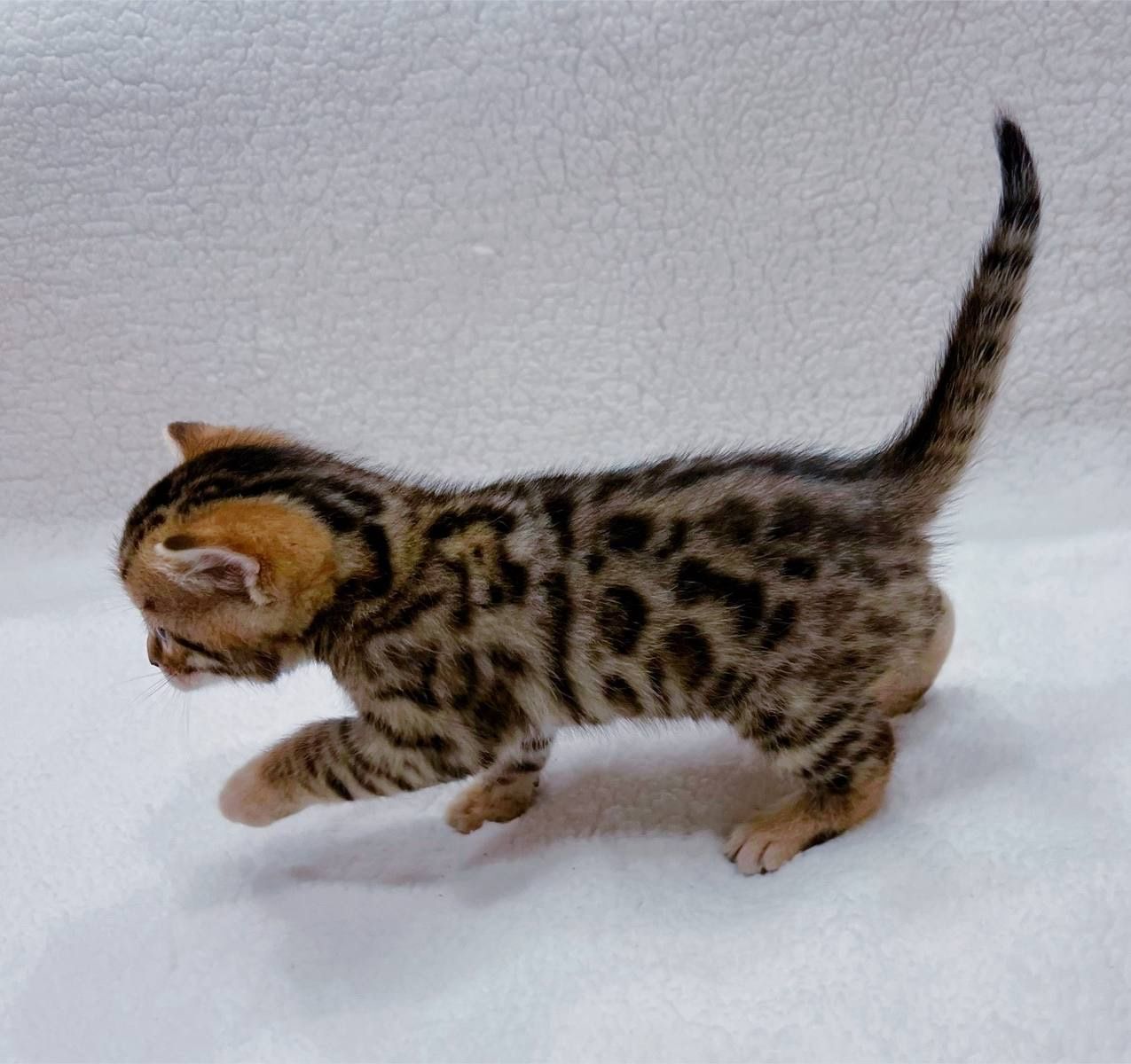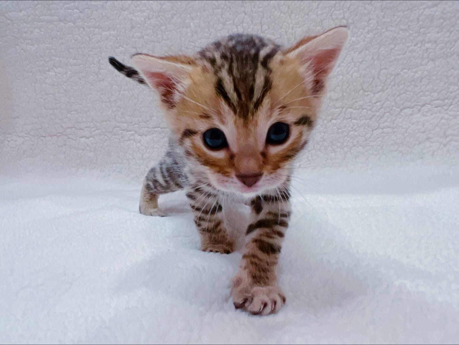 Bengal cats are different from regular house cats. they are very fast and known for having larger ears and paws and longer tails than regular house cats they are also bigger and they can enjoy water! they can jump up to 7ft just off the ground and they come in spotted or marbled patterns and many different colors like red, brown, black, blue, white, etc they are very athletic cats and love to climb things. bengal cats are very playful and outgoing and are closely related to the Asian leopard so they are way more exotic than a normal cat and bengal cats also move different than regular house cats. I encourage you to do your research on the bengal breed to see if it's right for you!