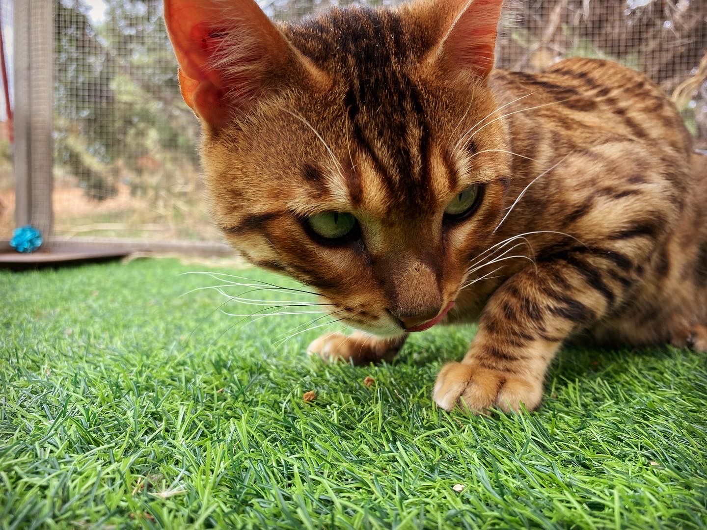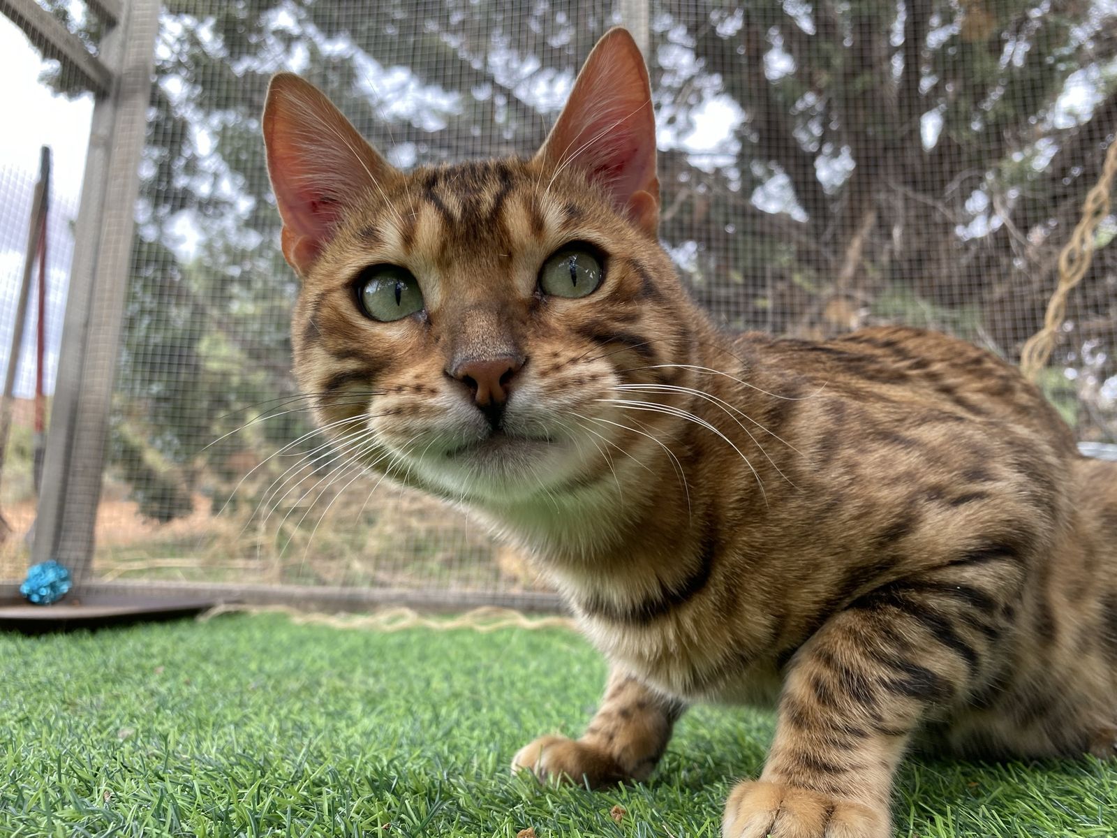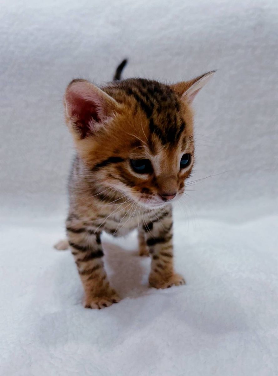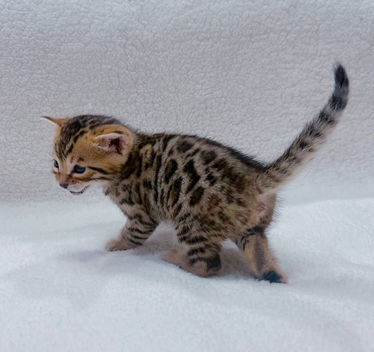 Bengal cats are different from regular house cats. they are very fast and known for having larger ears and paws and longer tails than regular house cats they are also bigger and they can enjoy water! they can jump up to 7ft just off the ground and they come in spotted or marbled patterns and many different colors like red, brown, black, blue, white, etc they are very athletic cats and love to climb things. bengal cats are very playful and outgoing and are closely related to the Asian leopard so they are way more exotic than a normal cat and bengal cats also move different than regular house cats. I encourage you to do your research on the bengal breed to see if it's right for you!