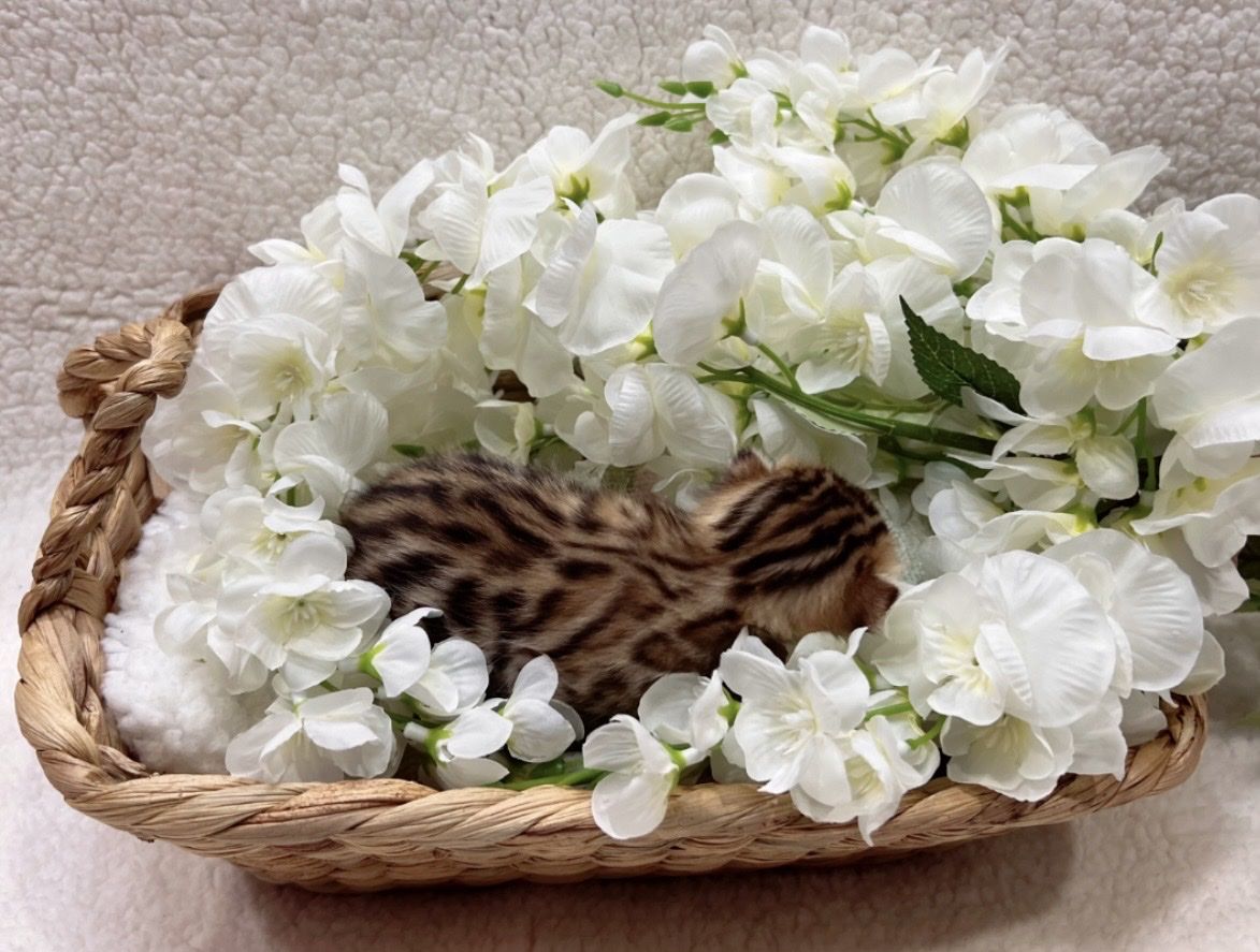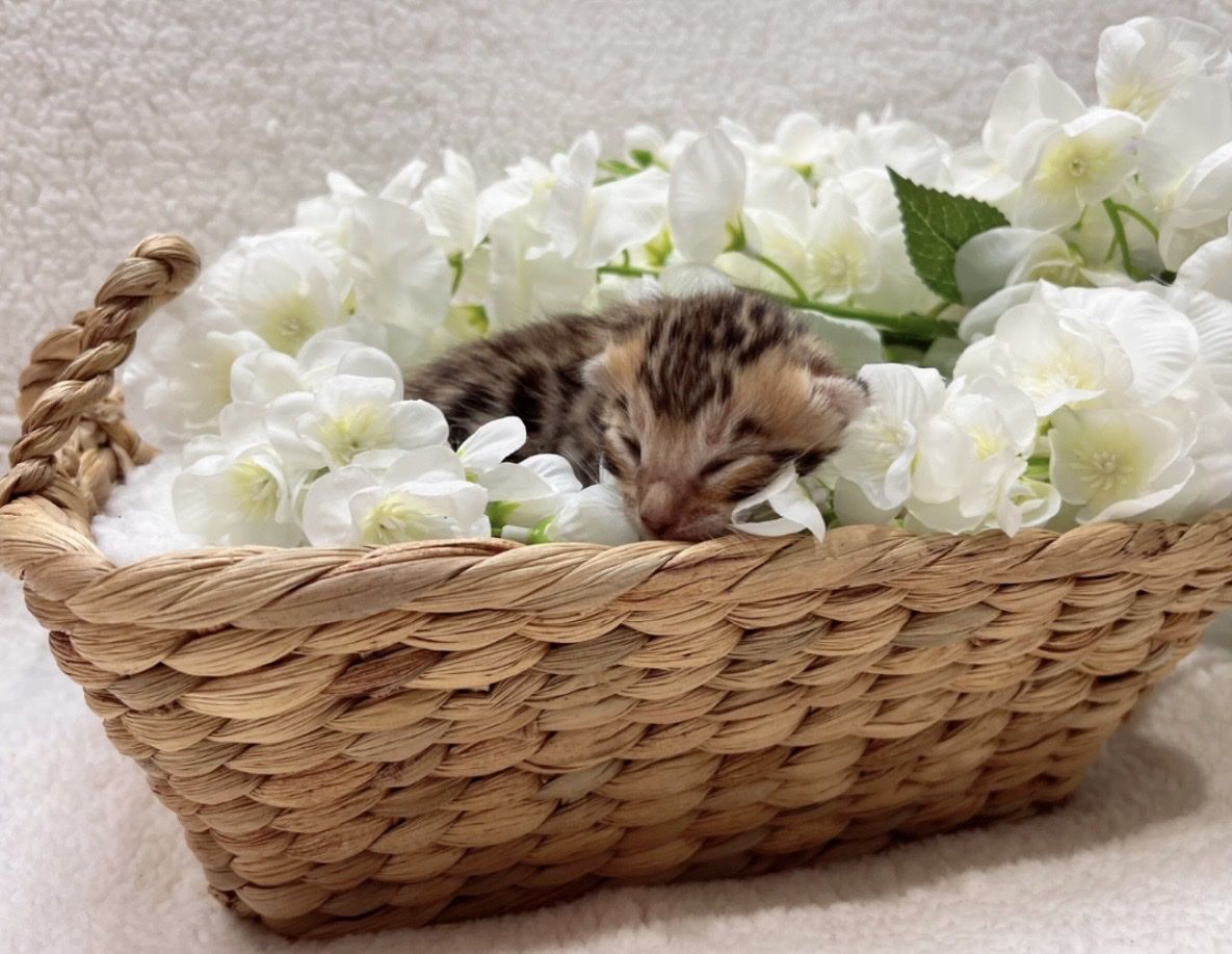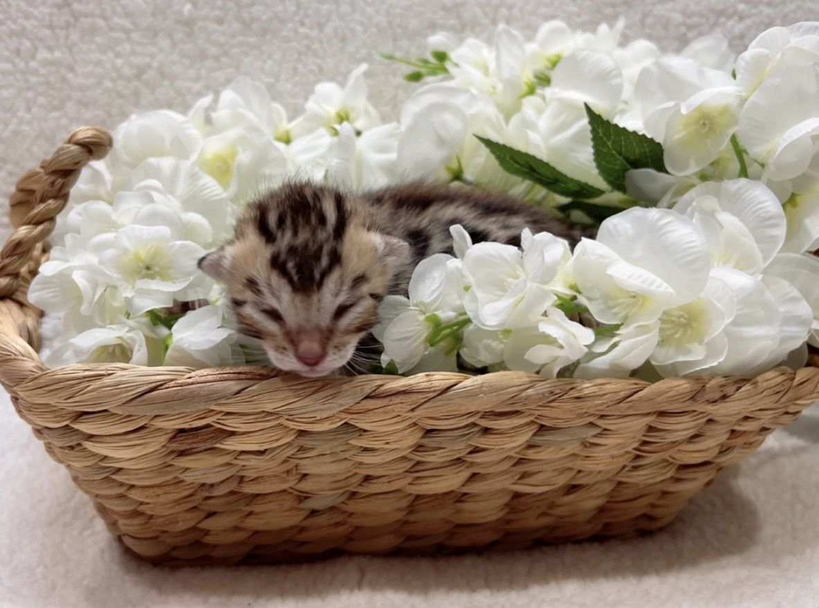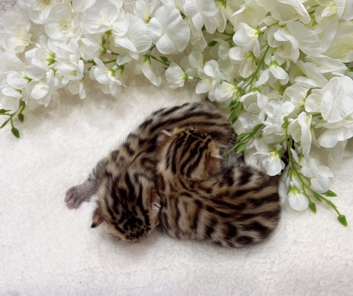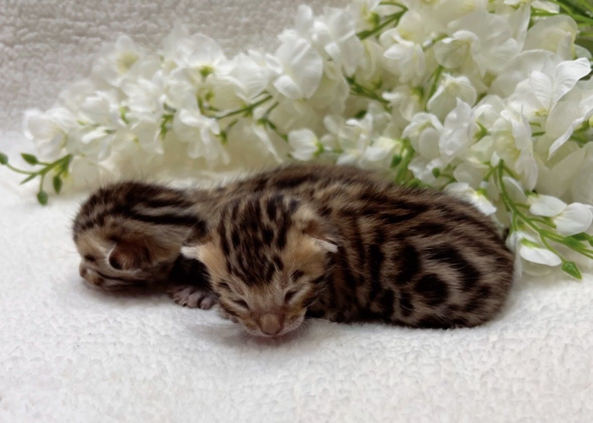 We have 2 purebred bengal kittens available 1 female and 1male. Born 04/07/2026 the females name is Tyra and the males name is Tailon . These are purebred bengal kittens they have a unique pattern simular to jaguar markings, they come in many different colors but these 2 kittens will most likely be red. They are extremely exotic cats if you don't know what a bengal is i encourage you to do your research. Bengals are more active than normal house cats they can jump up to 7ft high just from the ground and they are fast cats, they also can enjoy water. These cats move like jaguars not like normal house cats they are a very rare and unique breed. the last pics are of the parents Rajah & Iris are their names. Iris is their mother she has had many litters and does great with them. The kittens will stay with there mother until they are 10 weeks old. These kittens will be very beautiful and have rare big rosettes they are already so pretty for their age and they will only get prettier as they grow. I will update the photos to show you how they are growing and how much prettier they get by the day. These kittens will come with a gift bag of their essentials some of their toys, food, blanket, ect. if you want to know more about these kittens and my cats you can check us out on Instagram Facebook & Tik Tok @exottic_bengals_society