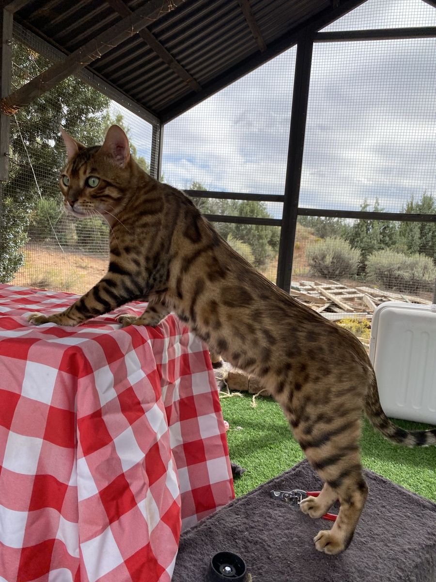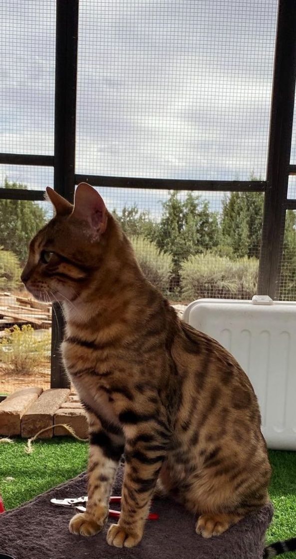 my female bengal cat (Iris) is pregnant and we think she has about 3 or more kittens! they are due any day now contact me at (435-348-1876) if your interested in one of these beautiful exotic kittens! These kittens will be very beautiful and will have big rosettes and very pretty coloring. The first pictures are of the dad cat Rajah and the next pictures are of the mom cat Iris. The next pictures are of our more previous litters. These kittens will each come with there own gift bag with some of there toys and food ect. You can put a deposit on one for $430 and we will hold the kitten of your choosing for you until he or she is ready to go with you! You can face time us or if you prefer videos/photos of the kitten, we will update you weekly on how your kitten is doing and growing until he or she can go to there forever home! we are asking $2,000 each contact us if you want to put a deposit on a kitten or if your interested in these amazingly exotic bengals!