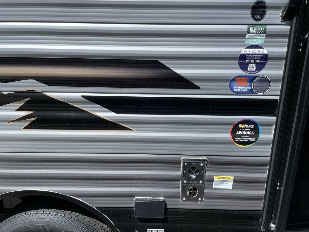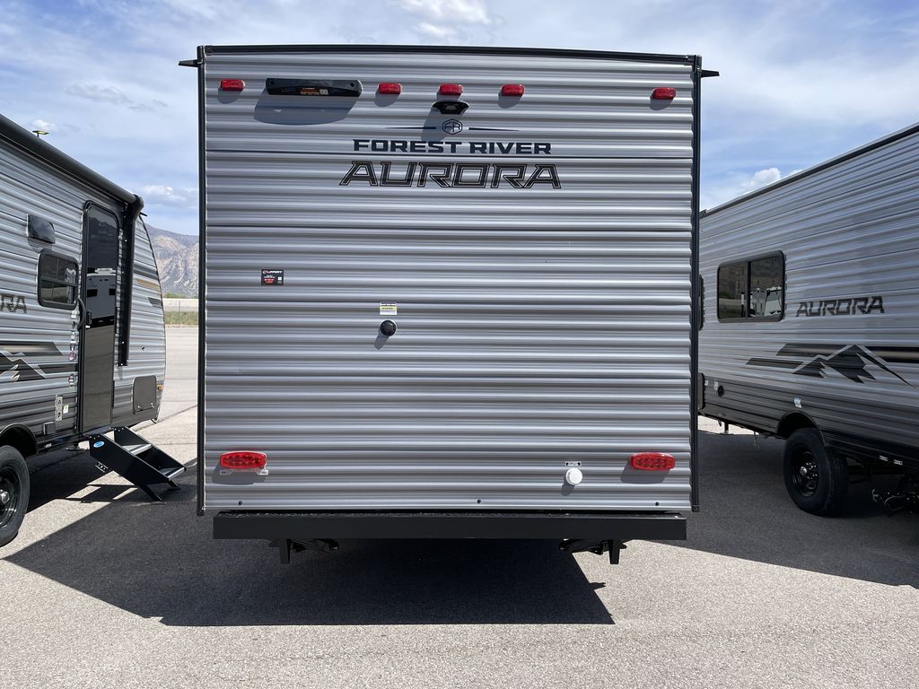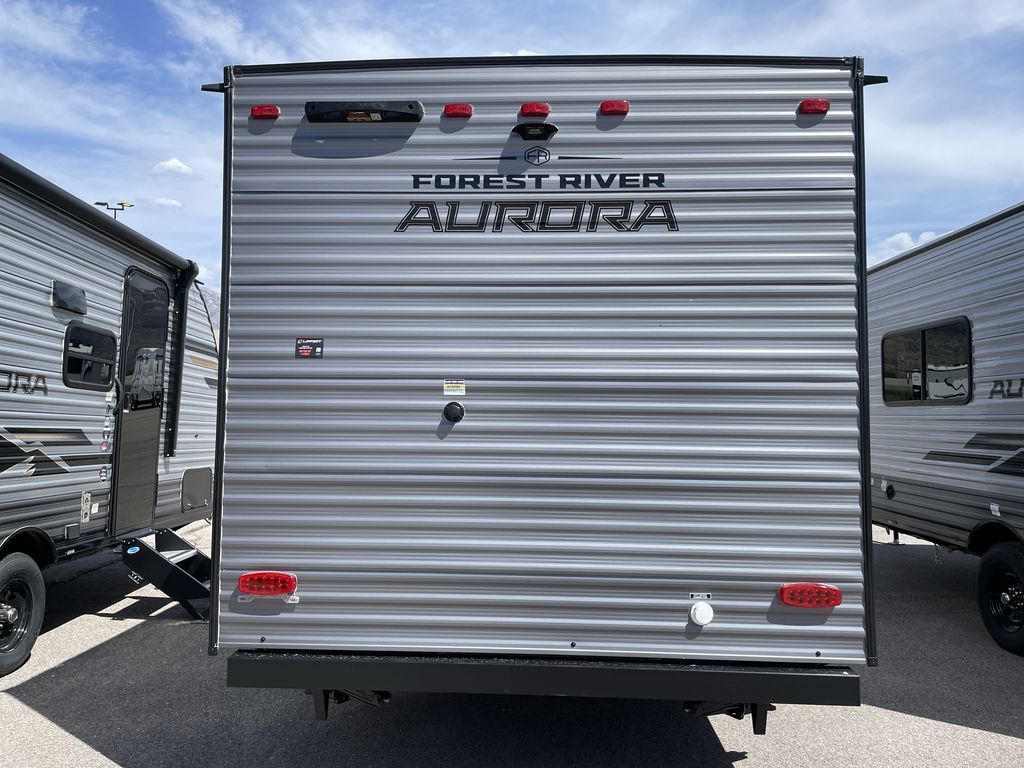 Comfortability, usability, and quality is what you will find in each one of these Forest River Aurora Light travel trailers! They are designed with a superior build and packed full with industry leading, functional, and distinctive standard features. The diamond plate rock guard will protect your unit from road debris and the nitrogen filled radial tires, which keep their pressure longer, offer better fuel economy. You will also find upgraded JBL Elite exterior speaker outside, an electric awning with multicolor lights and remote, plus flush mount baggage doors for easy packing. The interiors are beautifully designed with matte black kitchen and bath faucets, black nightshades in the living room, and GE kitchen appliances!