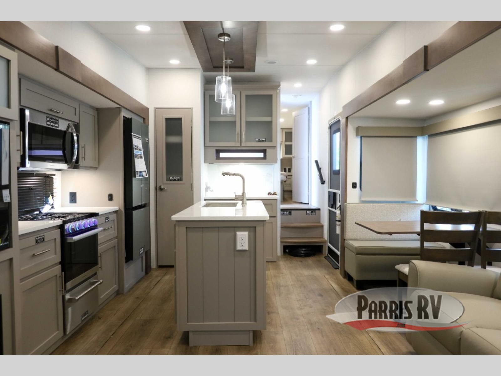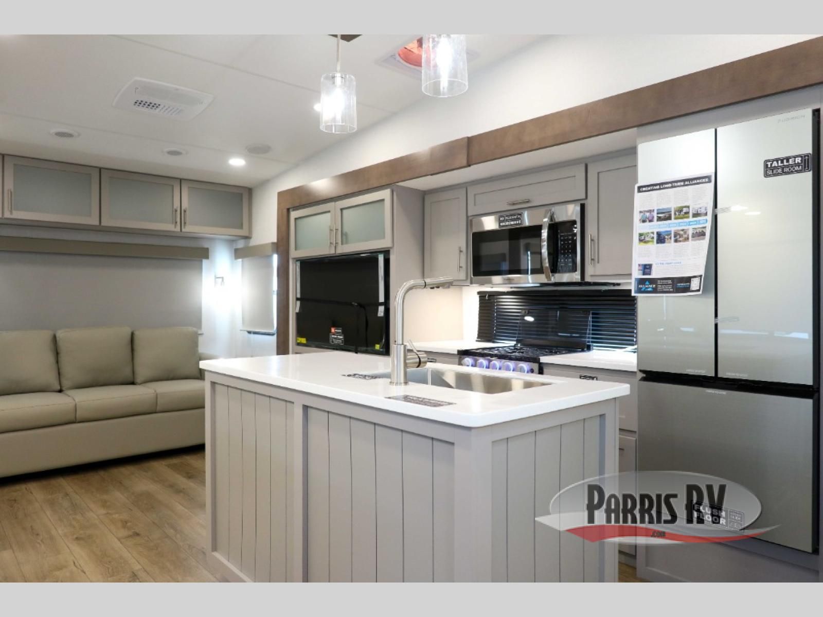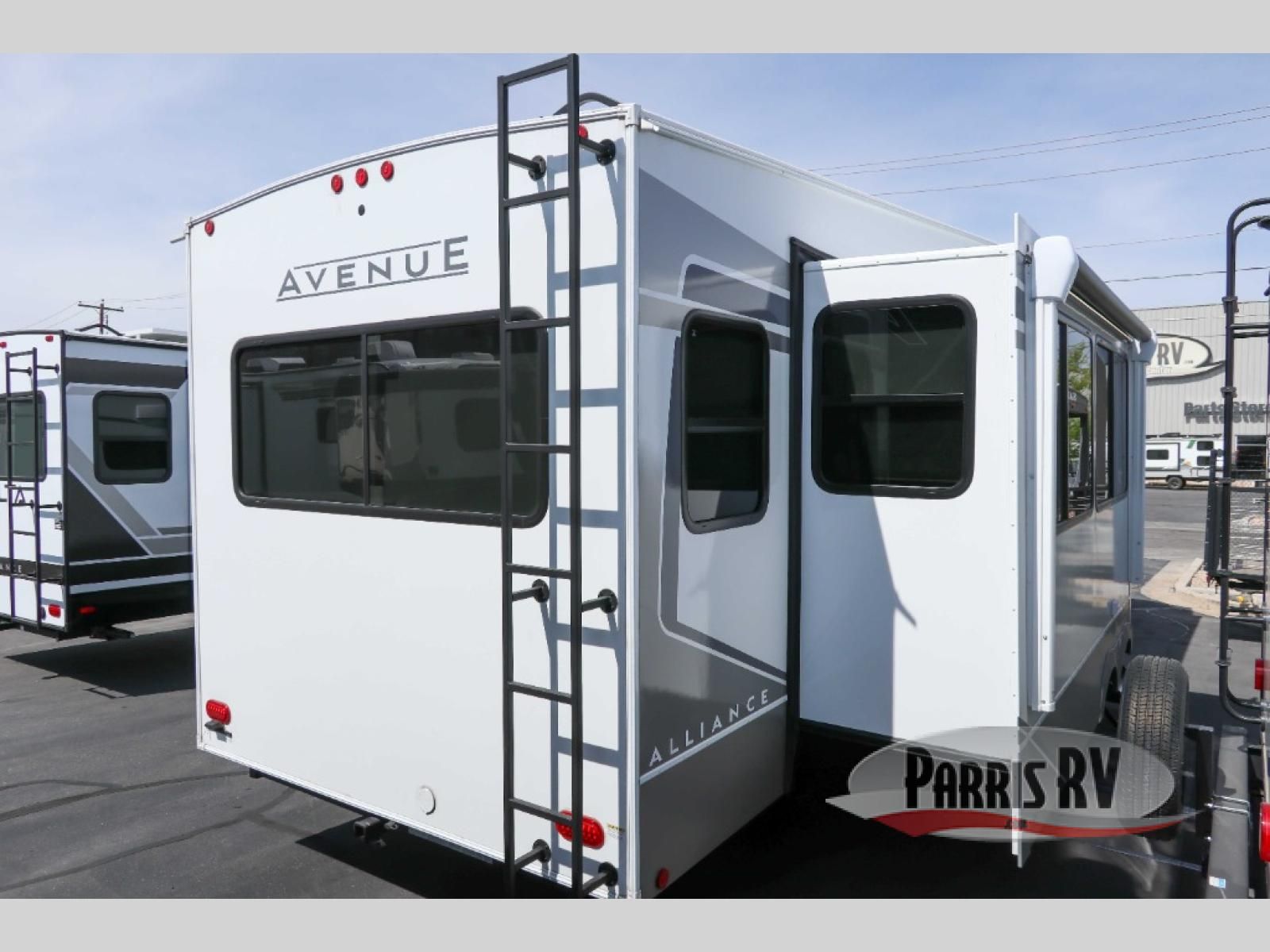 A benchmark chassis creates a space saver upper deck with each one of these Avenue All-Access fifth wheels by Alliance RV! The 101 in. wide-body construction gives you more room to walk around and the flush slide out floors throughout prevent any tripping. There are Azdel composite sidewalls inside and out, and a seamless fully walkable PVC roof for extreme durability and zero maintenance. You are sure to love no carpet throughout making each Avenue All-Access easy to clean and allergen free, not to mention pet friendly. You can maximize your space throughout with innovative storage solutions like the hidden storage behind the TV, inside the end tables, ottoman, and dinette chairs. These units also include the OTG Solar Package with a 200 watt solar panel, 15 amp MPPT charger, multiple outlets, and more to keep you powered up!