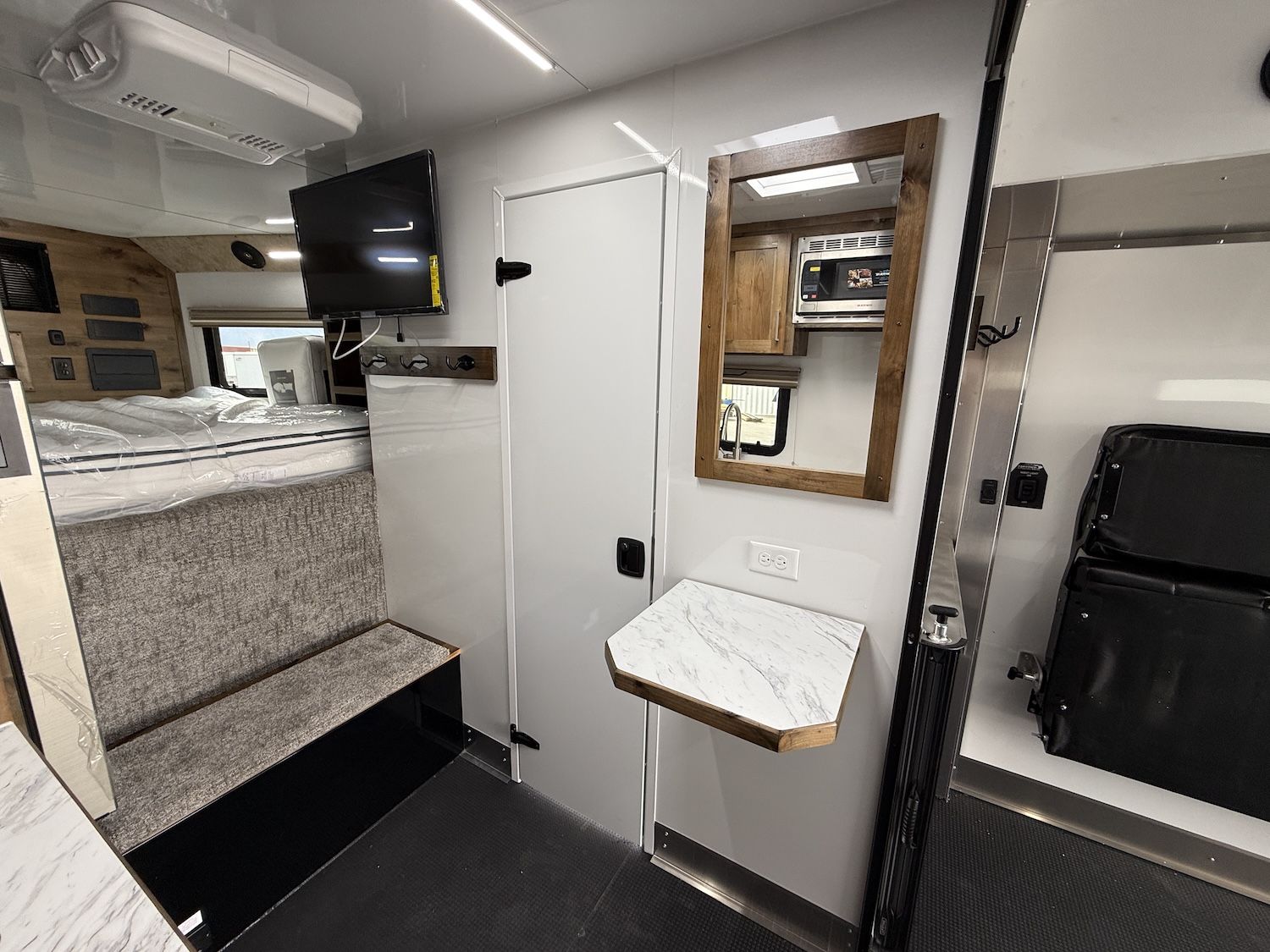 The time has finally come for the NEW 2027 RPM FREERIDE! With many new features and new sizes this trailer is hard to pass up! New 24’ length to easily fit (1) 4-seater for the small family without having to buy too large of a trailer! New to the 2027 year is the new access door that goes into the bathroom making the front of the trailer easily accessbile when it's loaded with toys! Added skylight in the galley area to bring in tons of natural light, along with additional storage with drawers, cabinet under sink, and a garbage can pull out drawer! Interior finished with wood cabinetry up in the living area and mill finish aluminum make this trailer feel like home! 86" Interior Height giving you plenty of clearance for these newer side by sides! Dual Zone Heat/A/C for the front of the trailer and the rear! Some new standard features for these trailers include a double step, fully accessible gooseneck enclosure, 12V Fridge, 320W Solar Panel, Accordion Door, Formica Marble Countertop, Stainless Steel Kitchen Appliances, Frameless Window, and finally a separate Toilet/Shower Room! So many new features to make this trailer stand out against its other competitors! The Trails West RPM FreeRide is designed to elevate your recreational experiences to new heights. Whether you’re embarking on a weekend getaway or competing in adrenaline-fueled competitions, the RPM FreeRide transports your vehicles with ease and confidence. With its robust construction, versatile layout, and innovative features, the RPM FreeRide offers unparalleled convenience and peace of mind for all your outdoor adventures. From spacious cargo areas to secure tie-down points, this trailer provides the perfect blend of functionality and flexibility to accommodate all your gear and equipment. The Trails West RPM FreeRide is the ultimate choice for enthusiasts who refuse to compromise on quality and reliability.