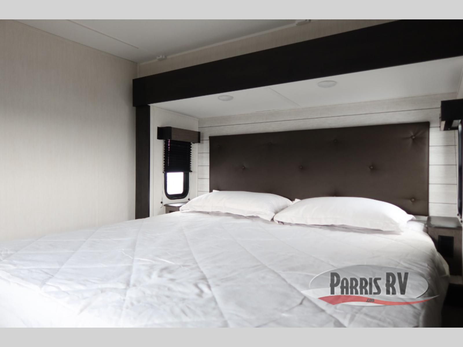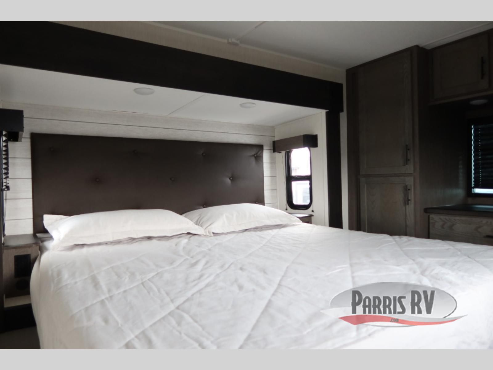 You will have amazing residential comfort in the Forest River Cherokee Arctic Wolf fifth wheels! These bed slide units have a "SuperStor" basement storage compartment to allow you to bring more gear, and they have been constructed with a "ToughBend" rigid skirt metal design, a 1x engineered wood "SuperTruss" roof structure with 3/8" decking, and a 5/8" tongue-and-groove plywood floor decking. Each model includes Leash Latch pet safety technology, an outside shower with hot/cold water and preparations for an exterior TV. The supersized central air conditioning unit (15,000 BTU) with quick cool and second oversized 15,000 BTU ducted A/C will cool your unit down in a snap when you camp in the hot summer months.