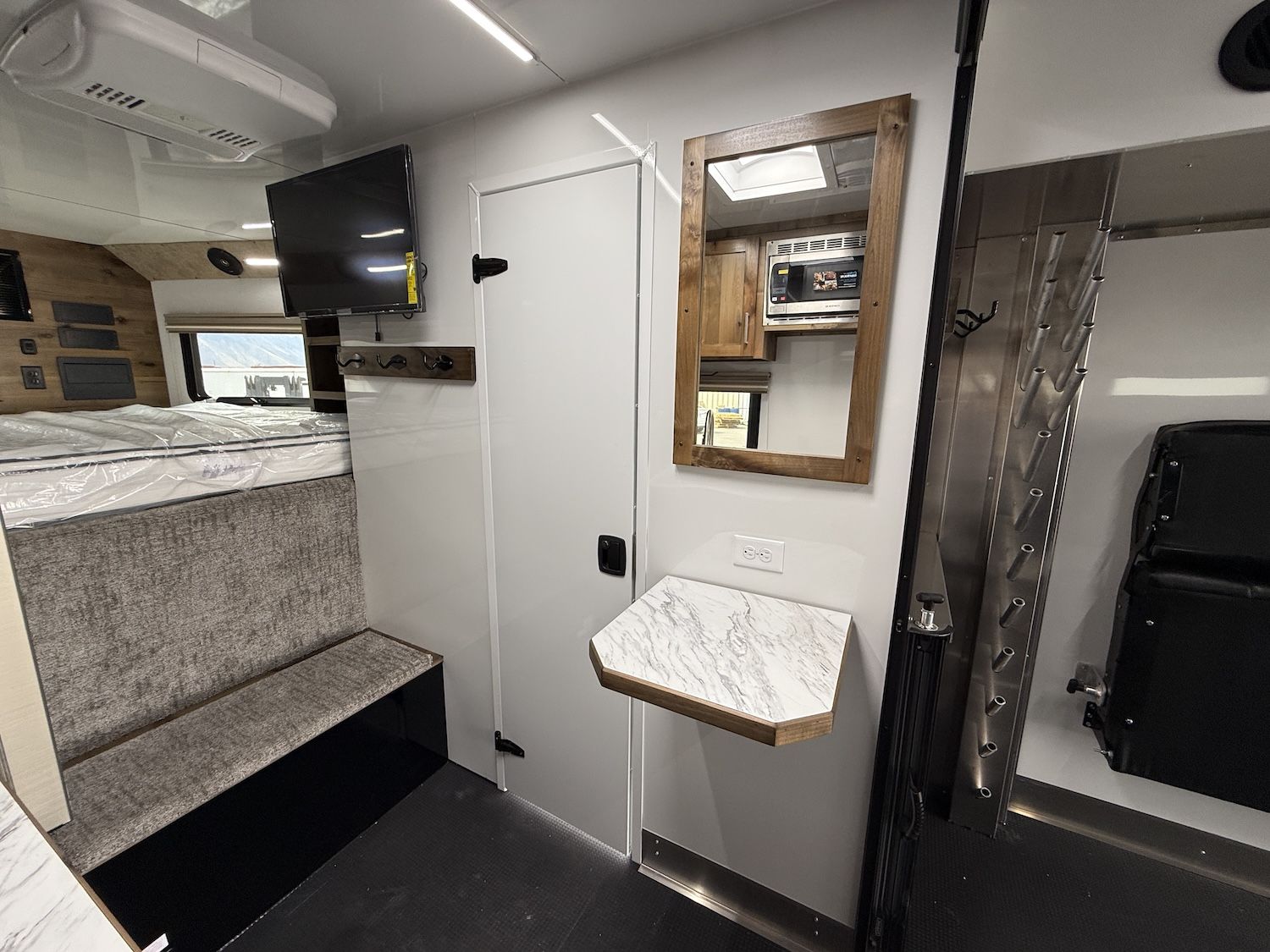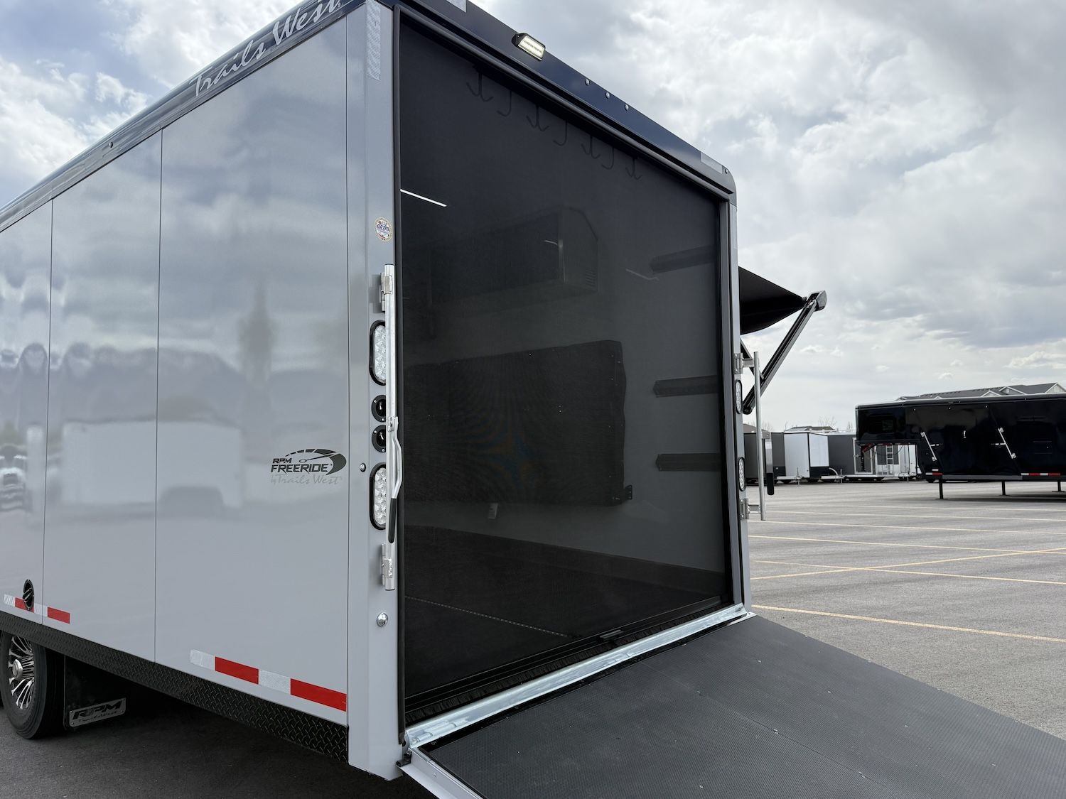 The time has finally come for the NEW 2027 RPM FREERIDE! With many new features and new sizes this trailer is hard to pass up! New 24’ length to easily fit (1) 4-seater for the small family without having to buy too large of a trailer! New to the 2027 year is the new access door that goes into the bathroom making the front of the trailer easily accessbile when it's loaded with toys! Added skylight in the galley area to bring in tons of natural light, along with additional storage with drawers, cabinet under sink, and a garbage can pull out drawer! Interior finished with wood cabinetry up in the living area and mill finish aluminum make this trailer feel like home! 86" Interior Height giving you plenty of clearance for these newer side by sides! Dual Zone Heat/A/C for the front of the trailer and the rear! Some new standard features for these trailers include a double step, fully accessible gooseneck enclosure, 12V Fridge, 320W Solar Panel, Accordion Door, Formica Marble Countertop, Stainless Steel Kitchen Appliances, Frameless Window, and finally a separate Toilet/Shower Room! So many new features to make this trailer stand out against its other competitors! The Trails West RPM FreeRide is designed to elevate your recreational experiences to new heights. Whether you’re embarking on a weekend getaway or competing in adrenaline-fueled competitions, the RPM FreeRide transports your vehicles with ease and confidence. With its robust construction, versatile layout, and innovative features, the RPM FreeRide offers unparalleled convenience and peace of mind for all your outdoor adventures. From spacious cargo areas to secure tie-down points, this trailer provides the perfect blend of functionality and flexibility to accommodate all your gear and equipment. The Trails West RPM FreeRide is the ultimate choice for enthusiasts who refuse to compromise on quality and reliability.