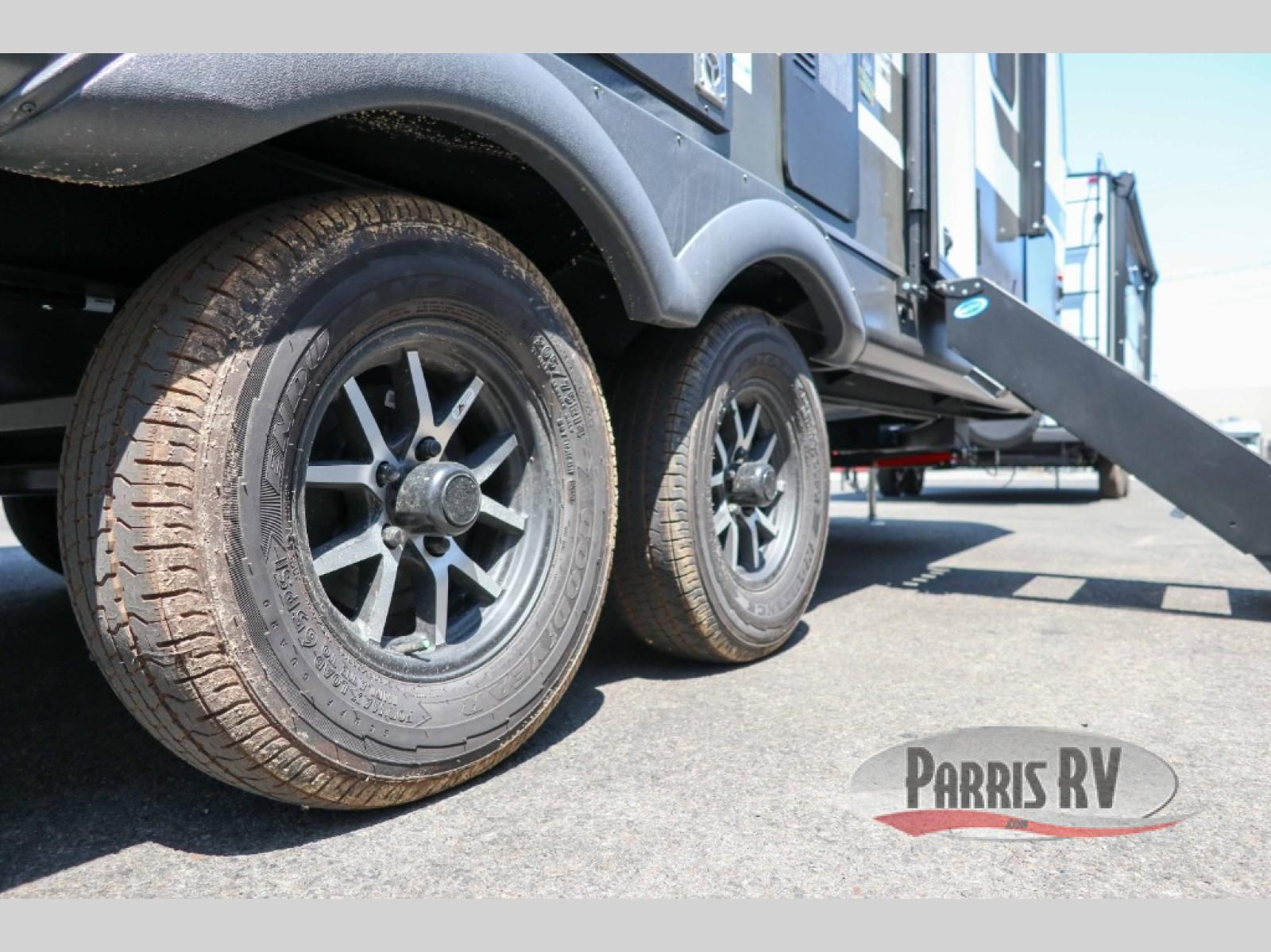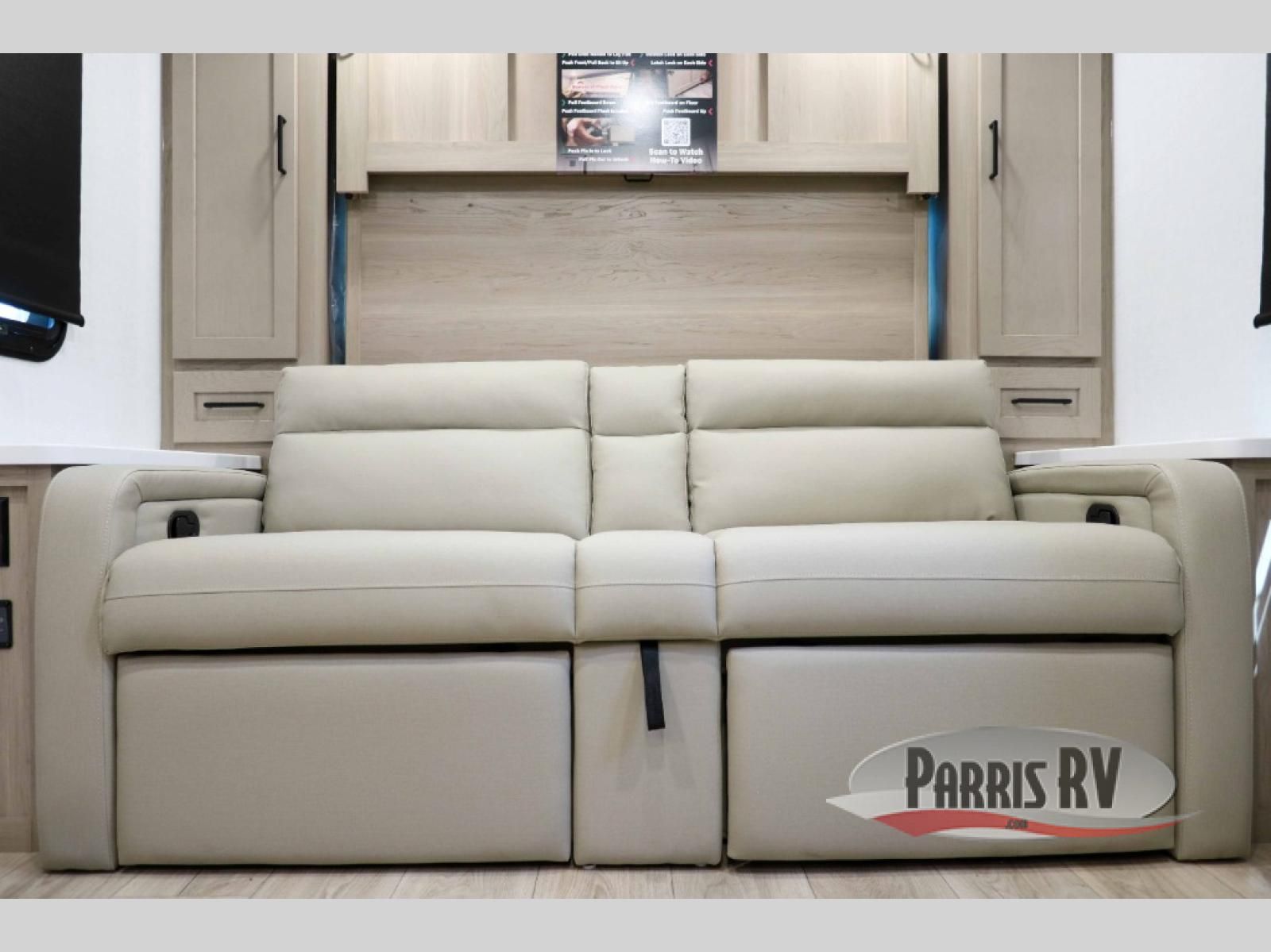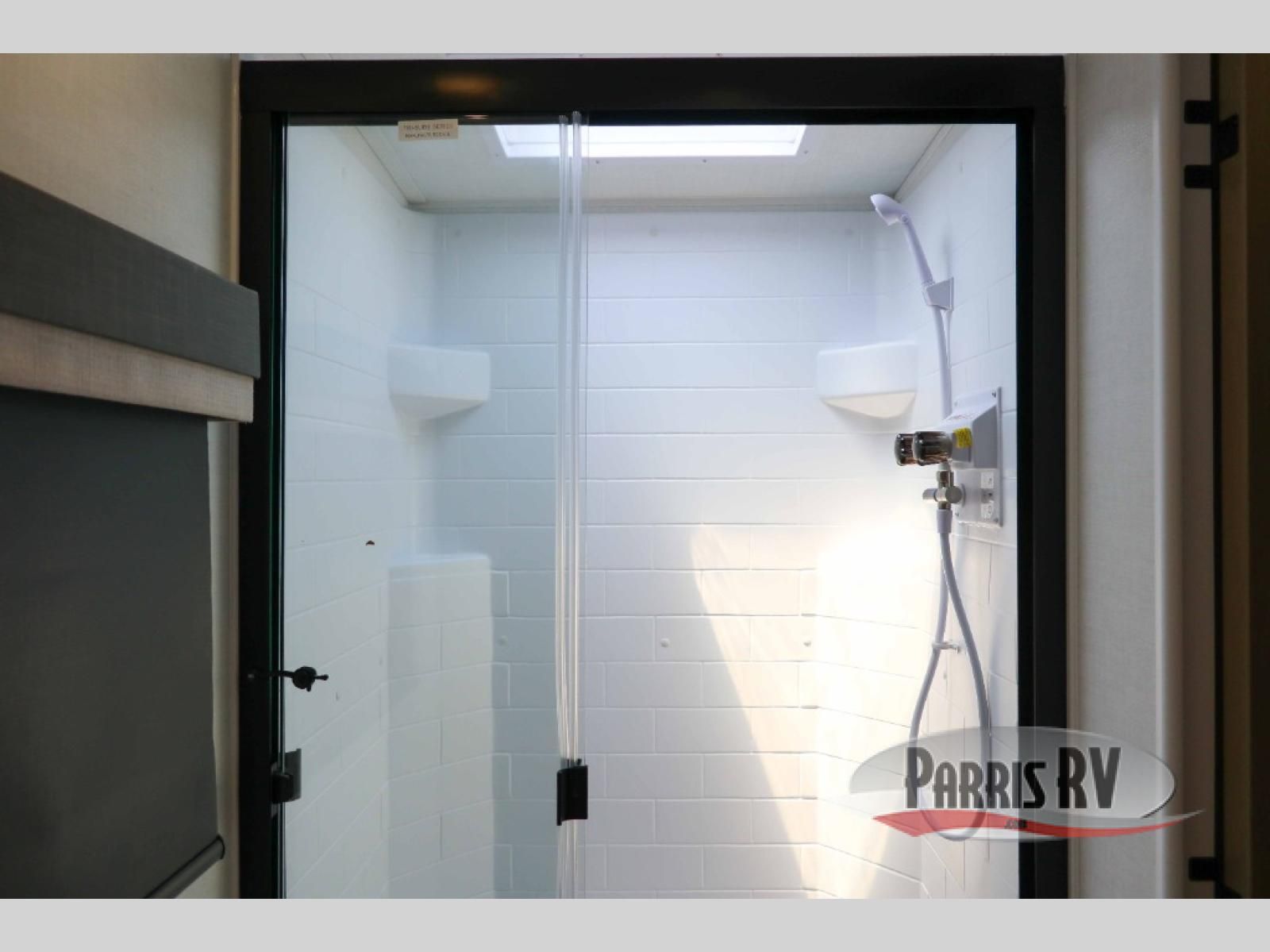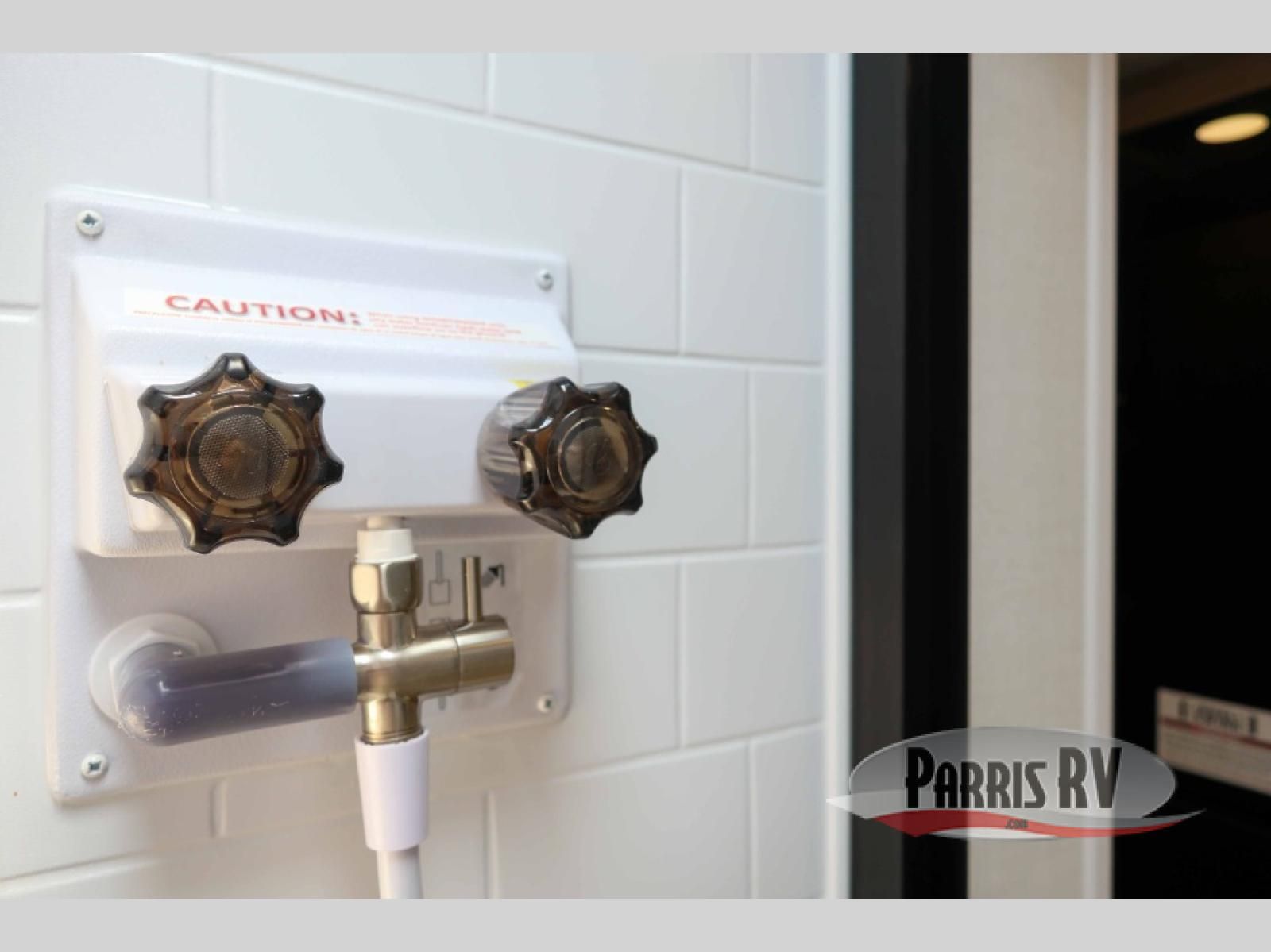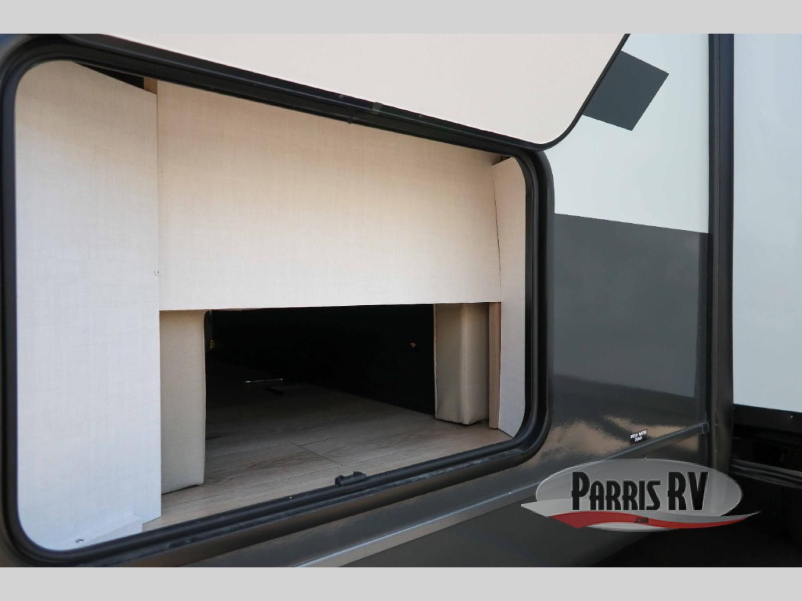 This versatile and cozy travel trailer will be perfect for weekend trips to the lake. Once you arrive at your campground, you can unload the water toys from the pass-thru storage, put out the 15' power awning, then make lunch on the exterior griddle. The U-shaped dinette slide inside will provide a place to dine, play board games, and let a guest or two sleep over, while you take the RV queen-size Murphy bed up front. In the morning, just fold up the bed to expose the 74" sofa! There is a three burner cooktop and microwave oven in the kitchen to make meals each day, along with a 12V refrigerator to keep leftovers fresh.