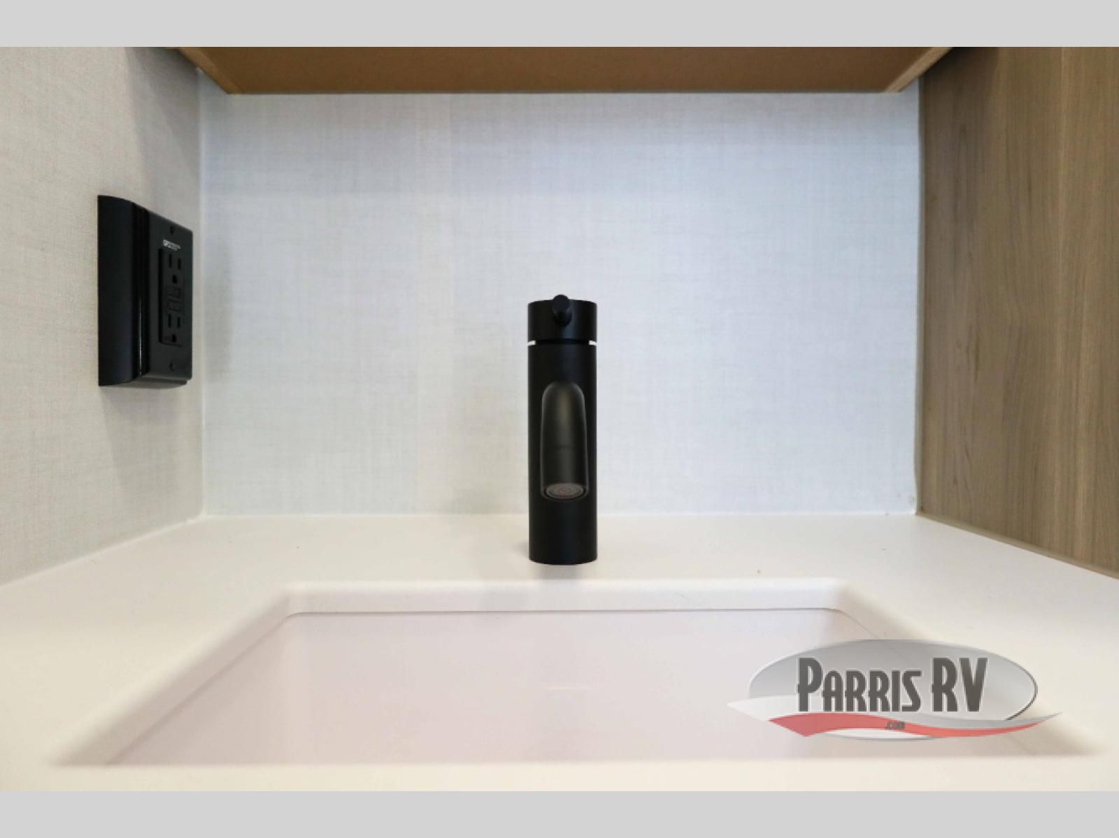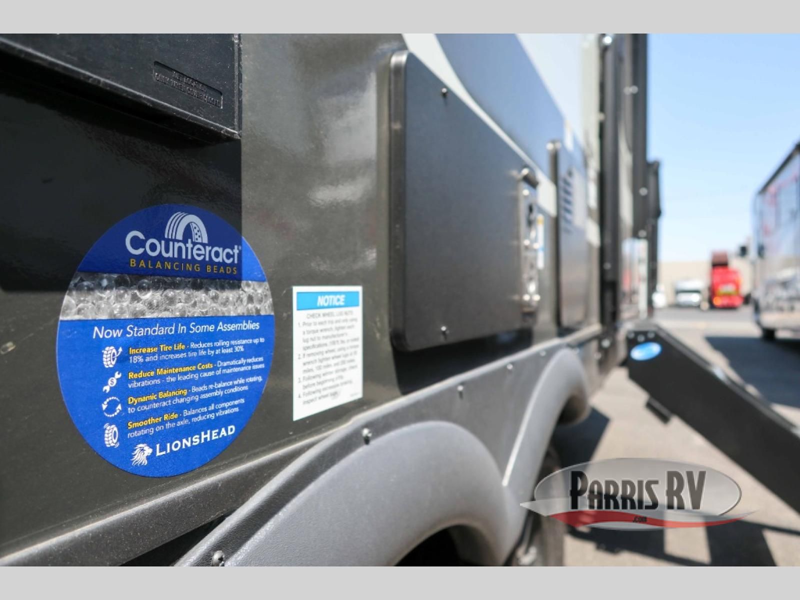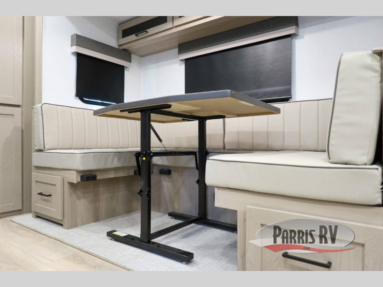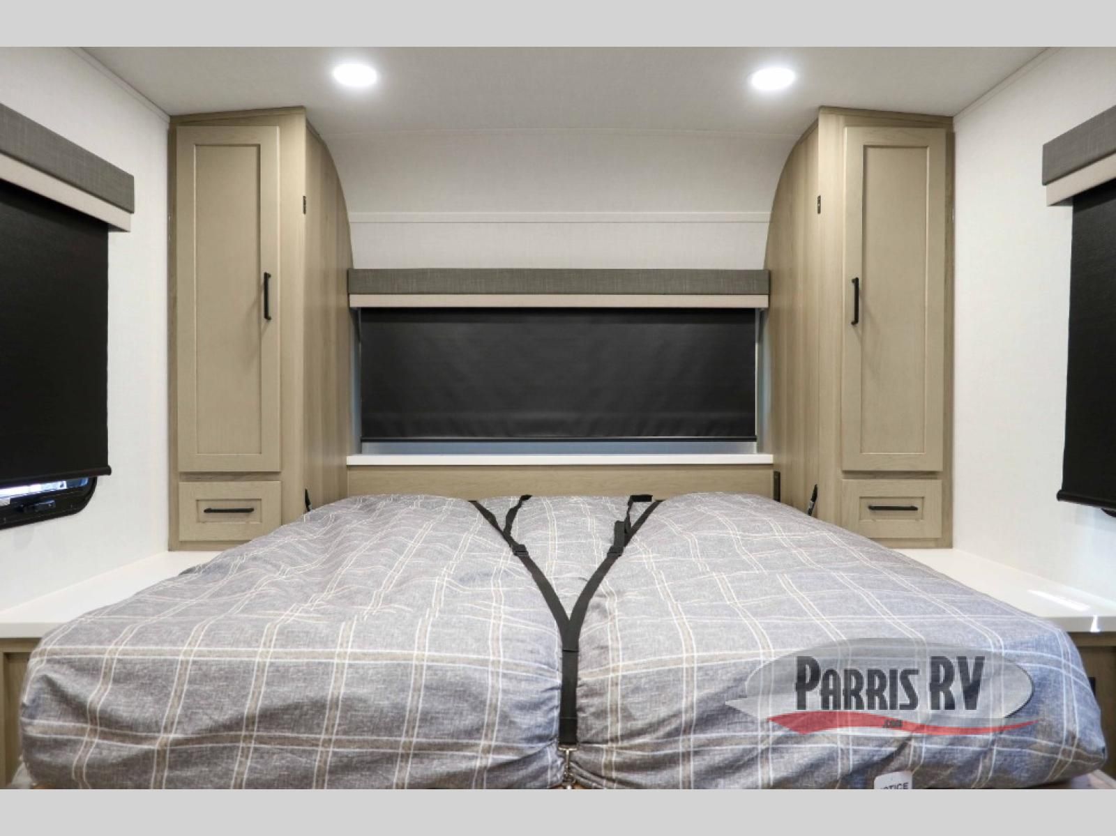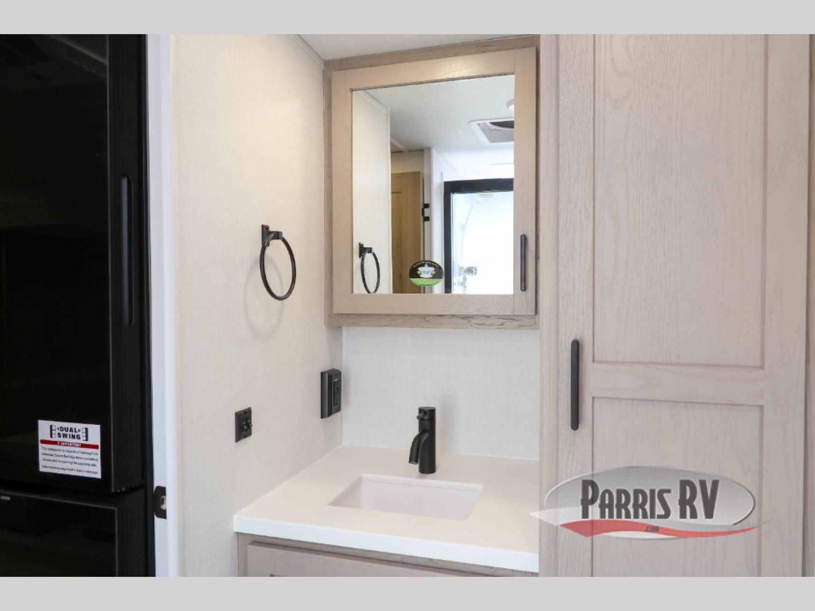 This versatile and cozy travel trailer will be perfect for weekend trips to the lake. Once you arrive at your campground, you can unload the water toys from the pass-thru storage, put out the 15' power awning, then make lunch on the exterior griddle. The U-shaped dinette slide inside will provide a place to dine, play board games, and let a guest or two sleep over, while you take the RV queen-size Murphy bed up front. In the morning, just fold up the bed to expose the 74" sofa! There is a three burner cooktop and microwave oven in the kitchen to make meals each day, along with a 12V refrigerator to keep leftovers fresh.