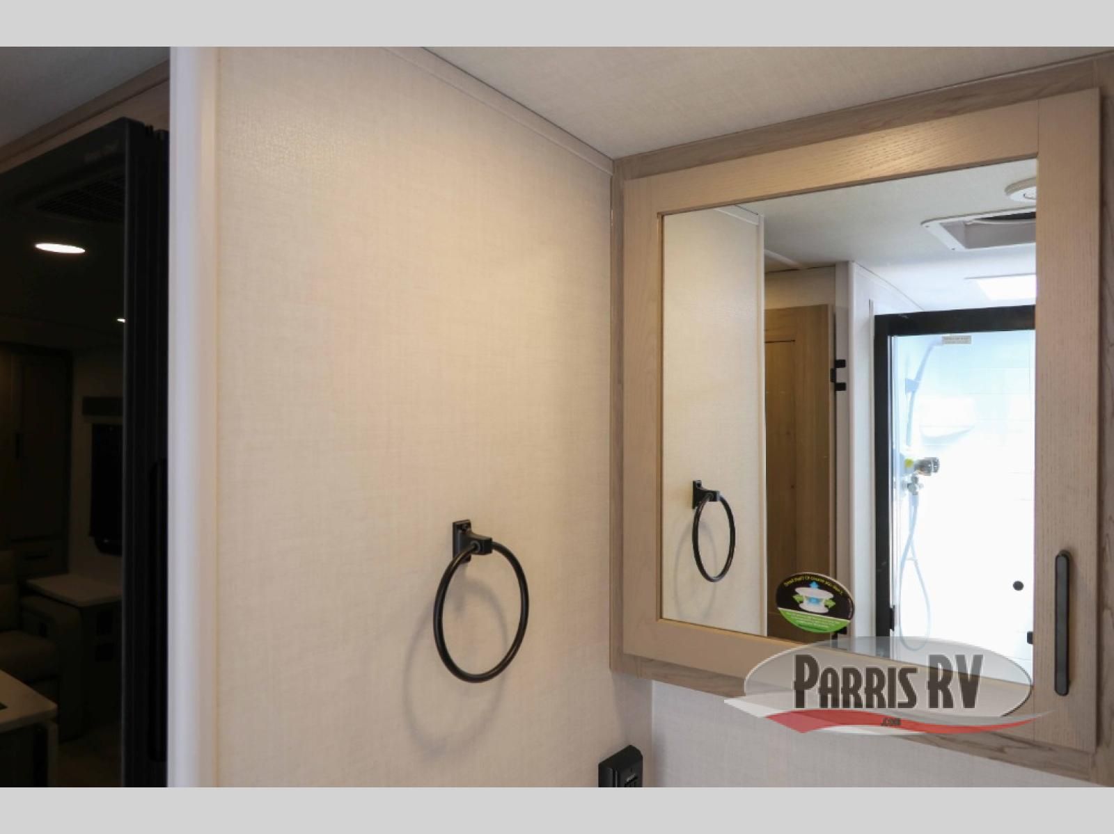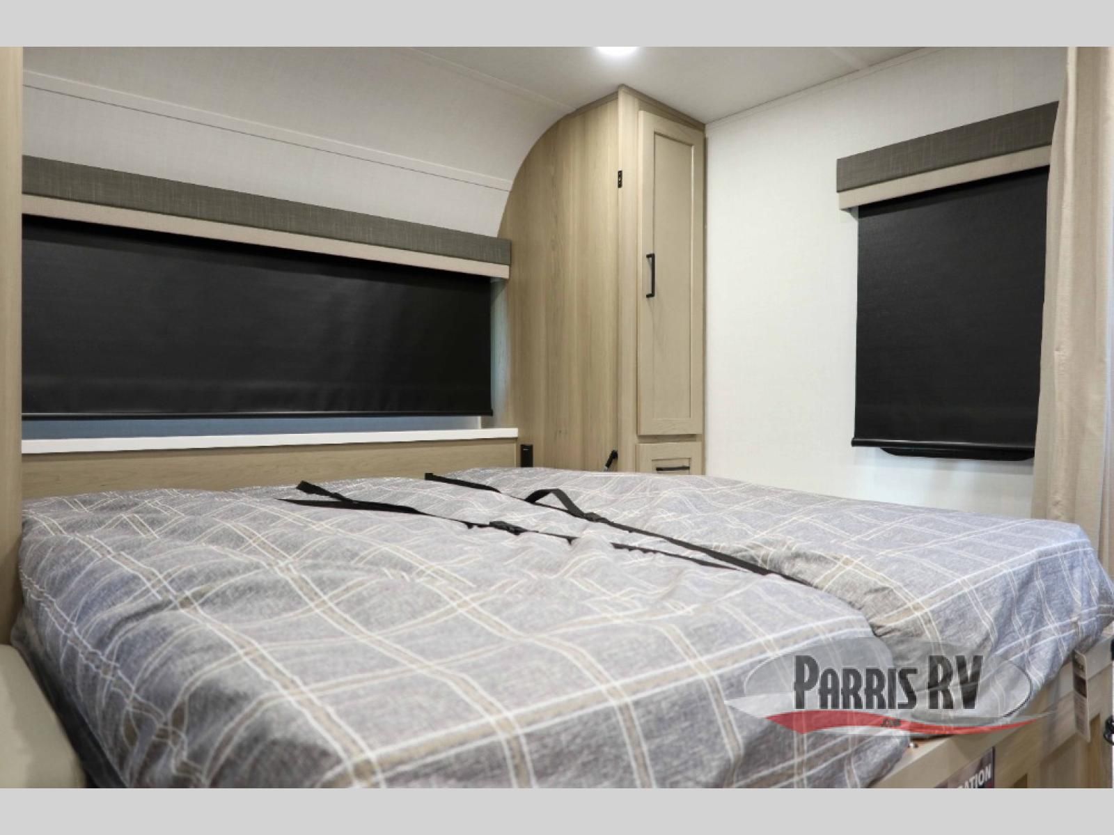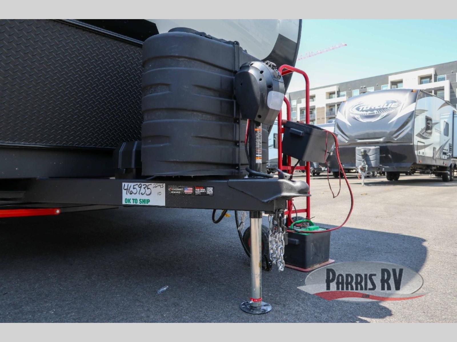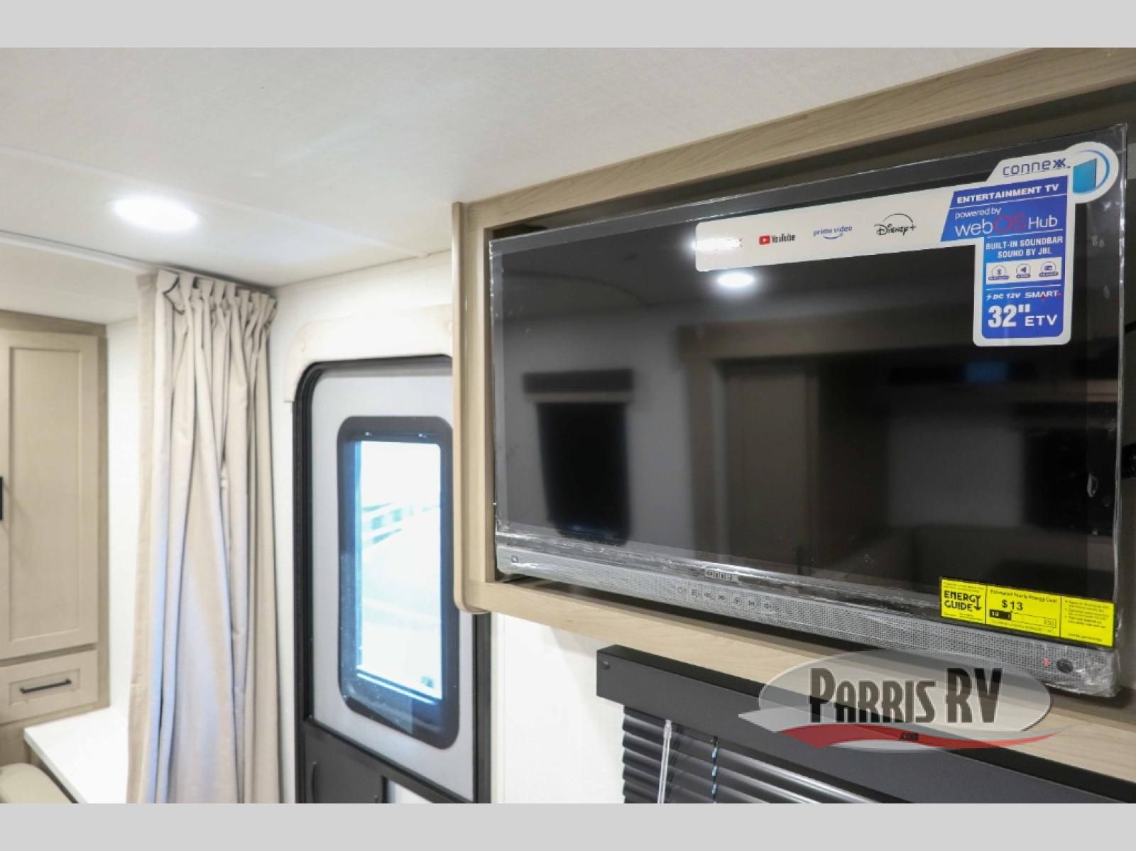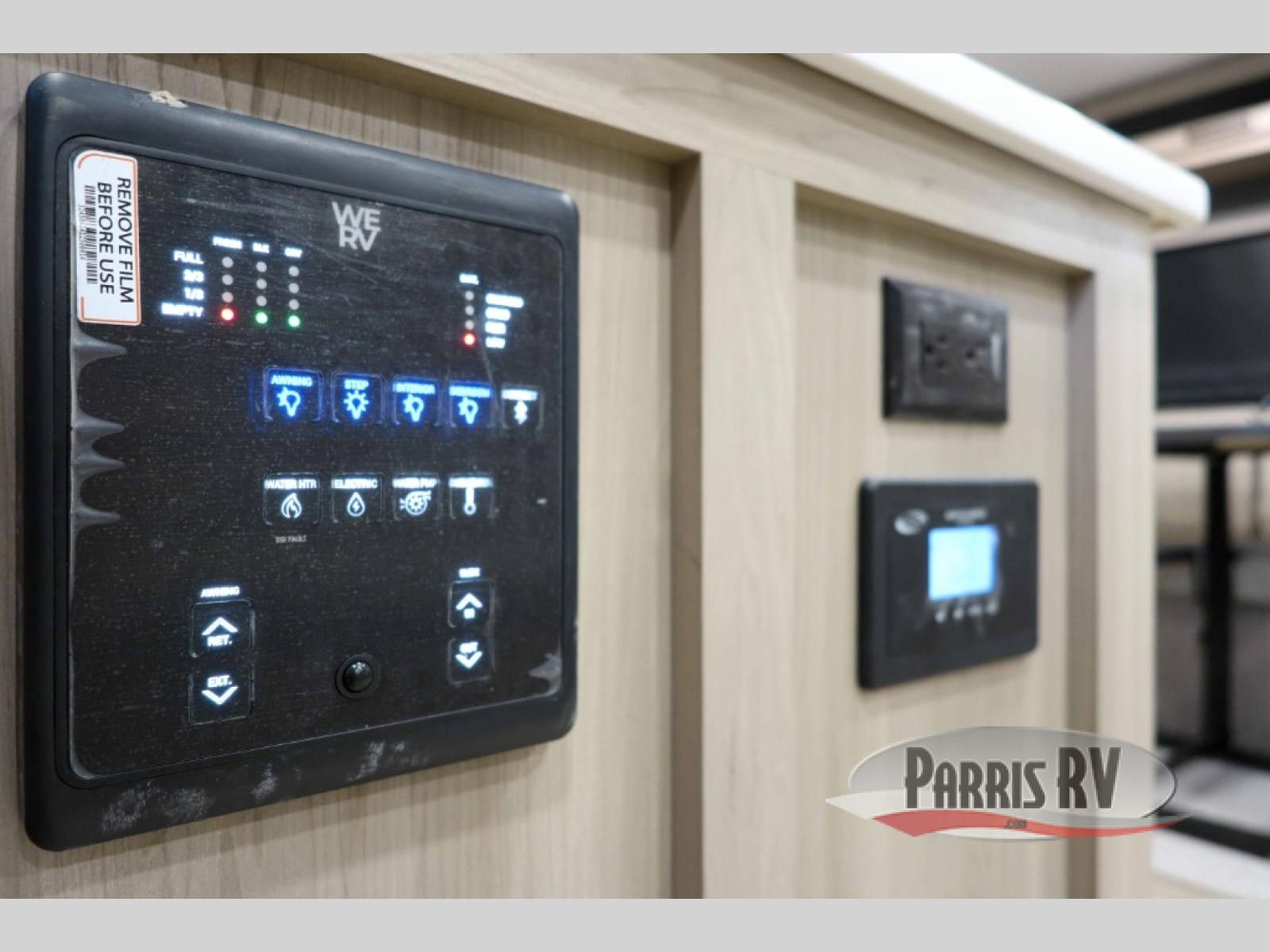This versatile and cozy travel trailer will be perfect for weekend trips to the lake. Once you arrive at your campground, you can unload the water toys from the pass-thru storage, put out the 15' power awning, then make lunch on the exterior griddle. The U-shaped dinette slide inside will provide a place to dine, play board games, and let a guest or two sleep over, while you take the RV queen-size Murphy bed up front. In the morning, just fold up the bed to expose the 74" sofa! There is a three burner cooktop and microwave oven in the kitchen to make meals each day, along with a 12V refrigerator to keep leftovers fresh.