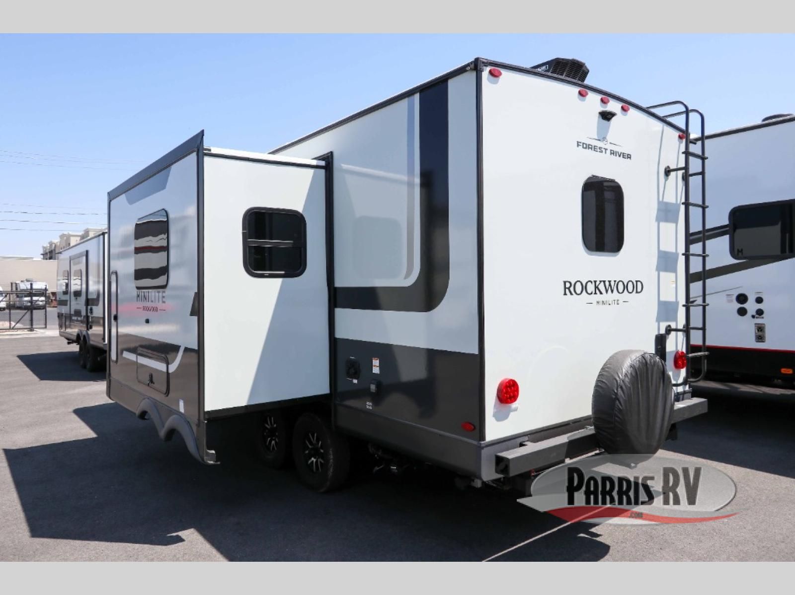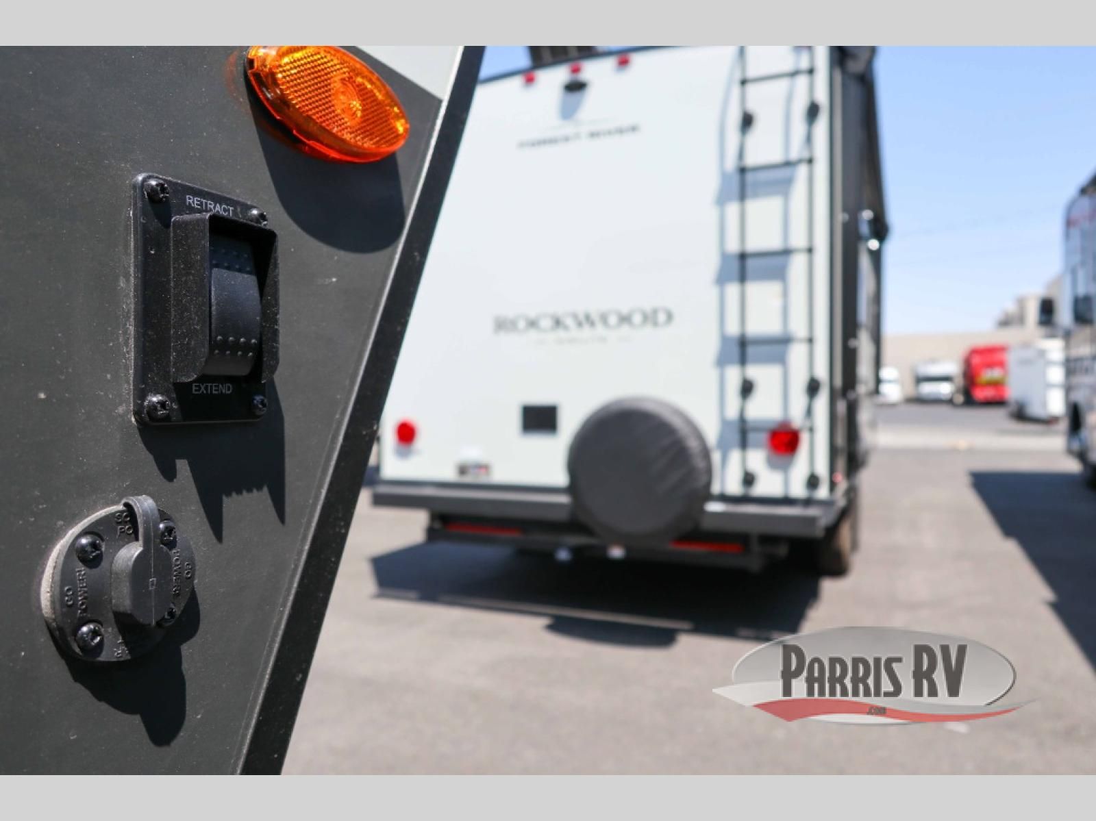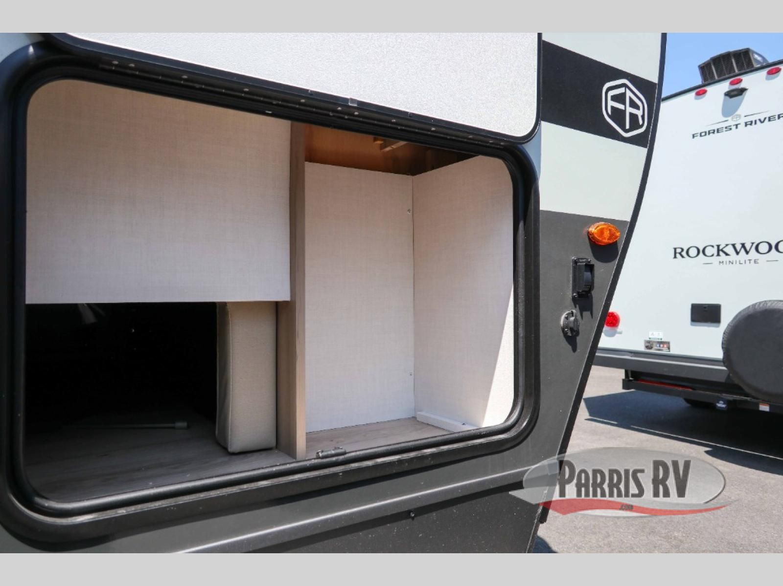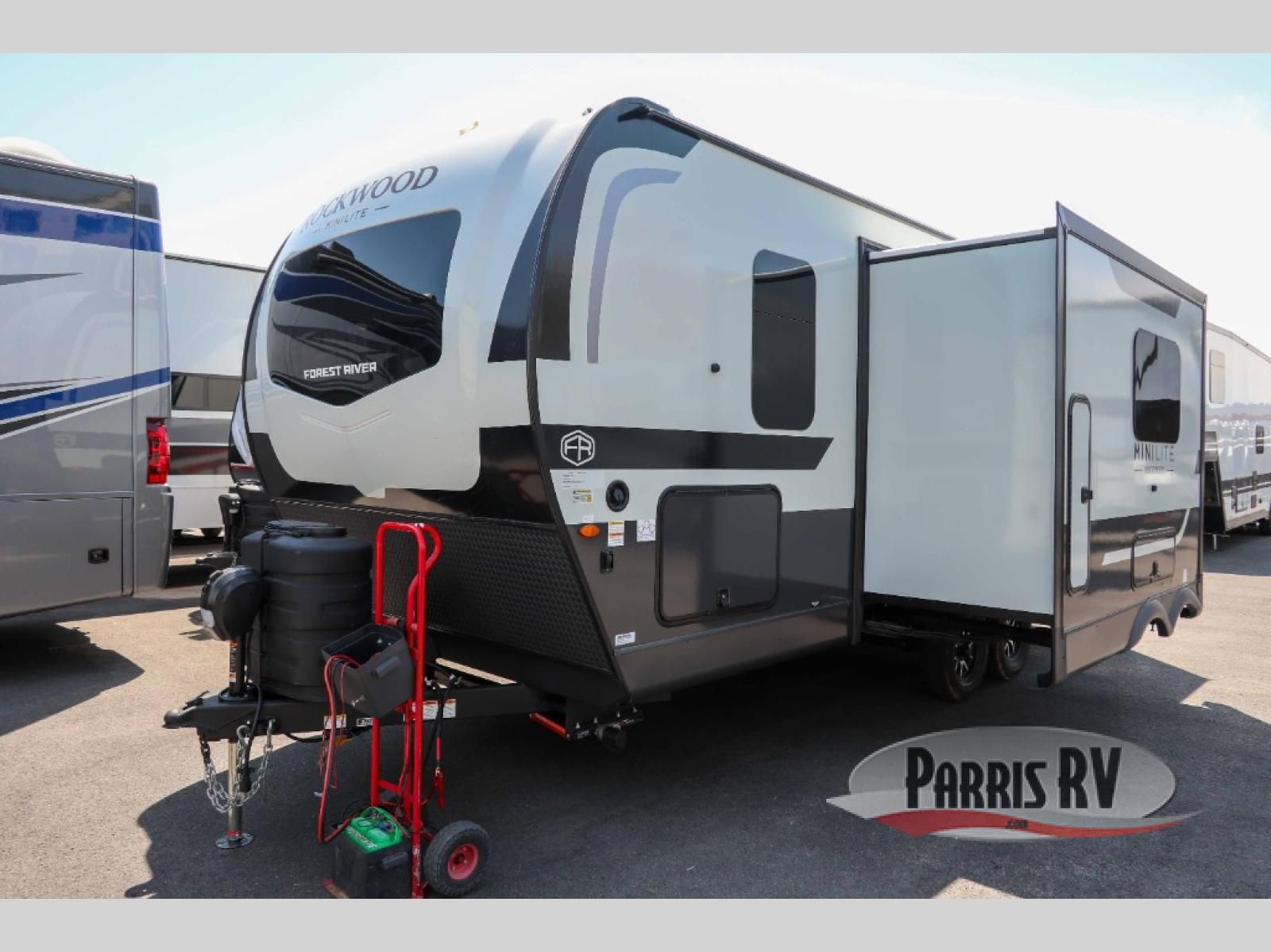 Each Rockwood Mini Lite travel trailer by Forest River is constructed with a fully laminated one-piece walkable roof, sleek frameless windows, and a six-sided full aluminum frame for strength and durability. The 12V thermostatically controlled heated tanks, plus radiant foil in the underbelly will allow you to camp well into the colder months, and the 200W roof solar panel will be perfect for a little off-gridding. Each model includes solid surface kitchen countertops, hidden hinge cabinet doors, roller shades, plus many more interior features. Having an AIR 360+ omnidirectional antenna with WiFi prep on board gives you the option to get some work done if it's needed, and the power tongue jack provides hassle-free set up, so you can enjoy more time relaxing!