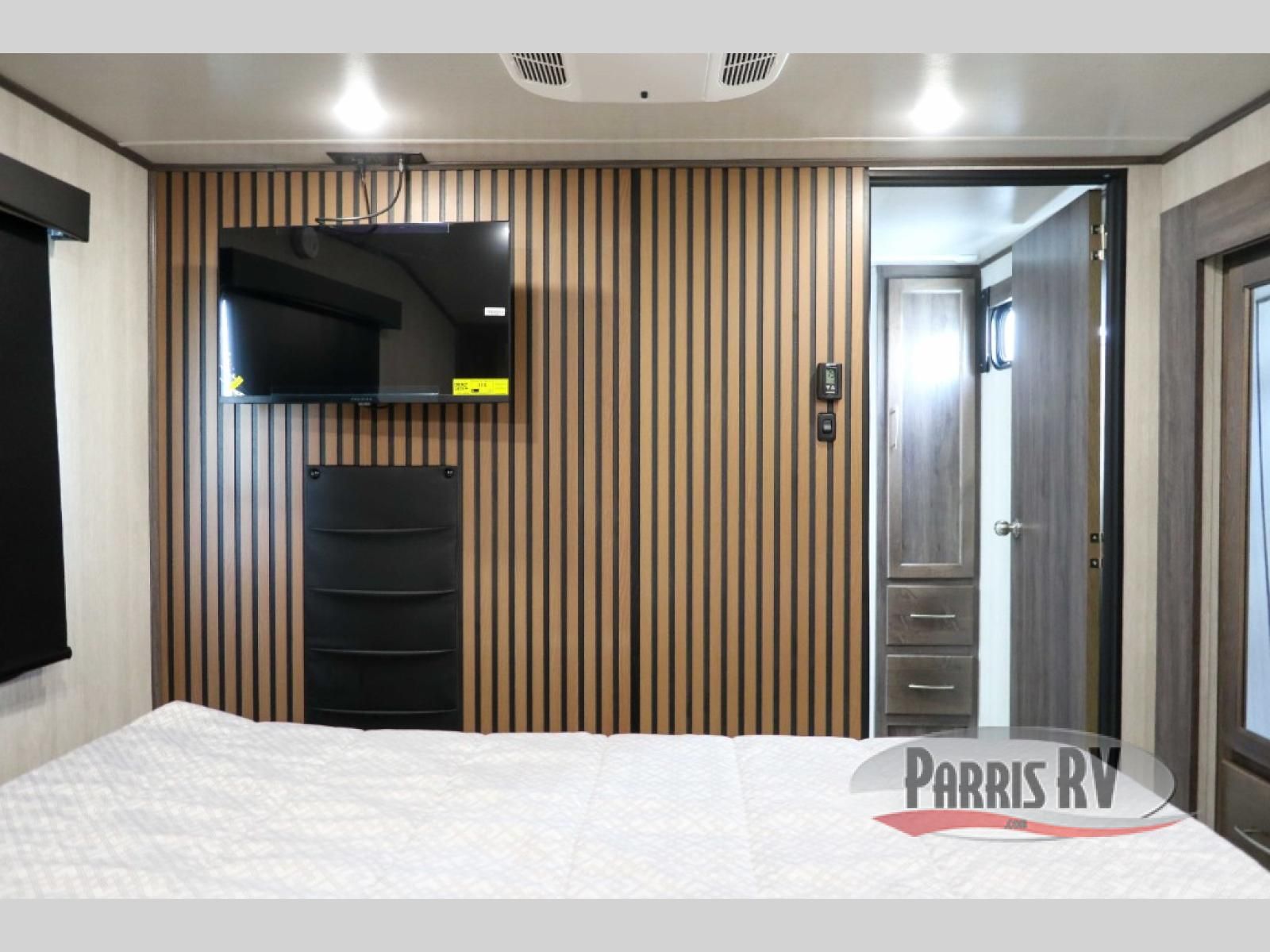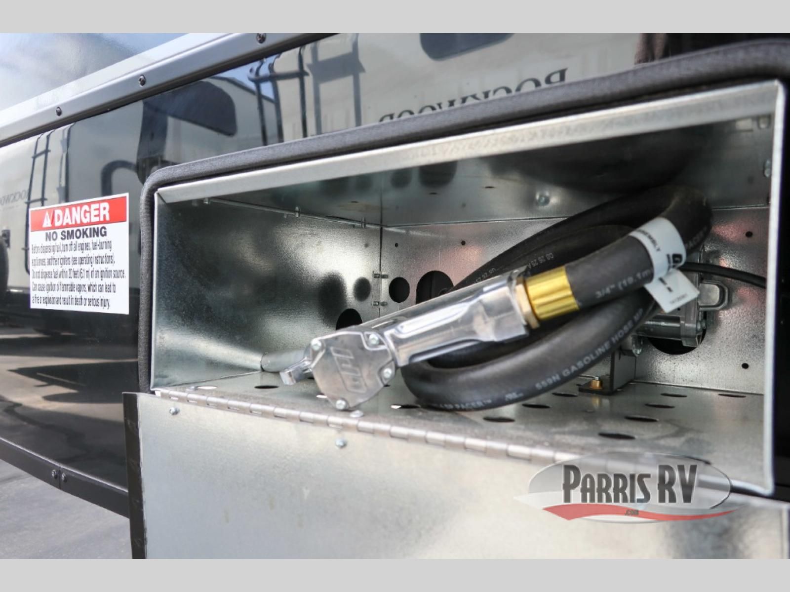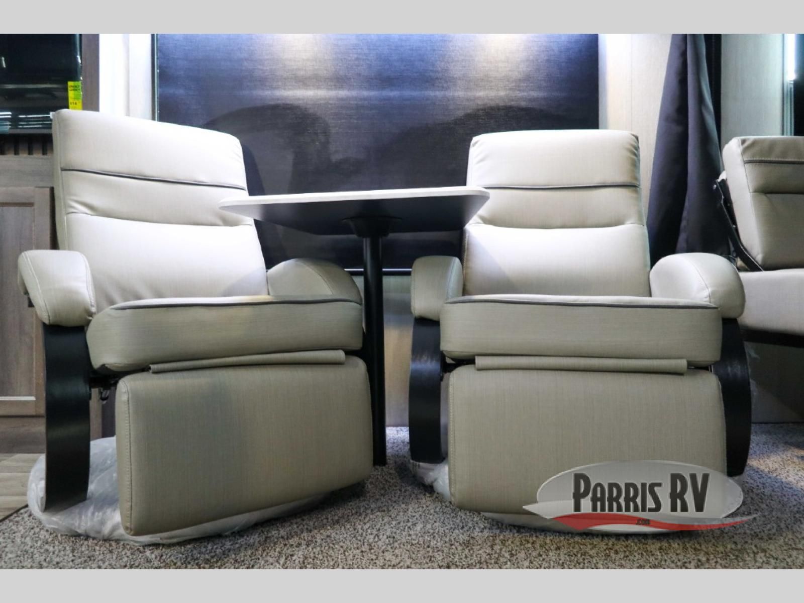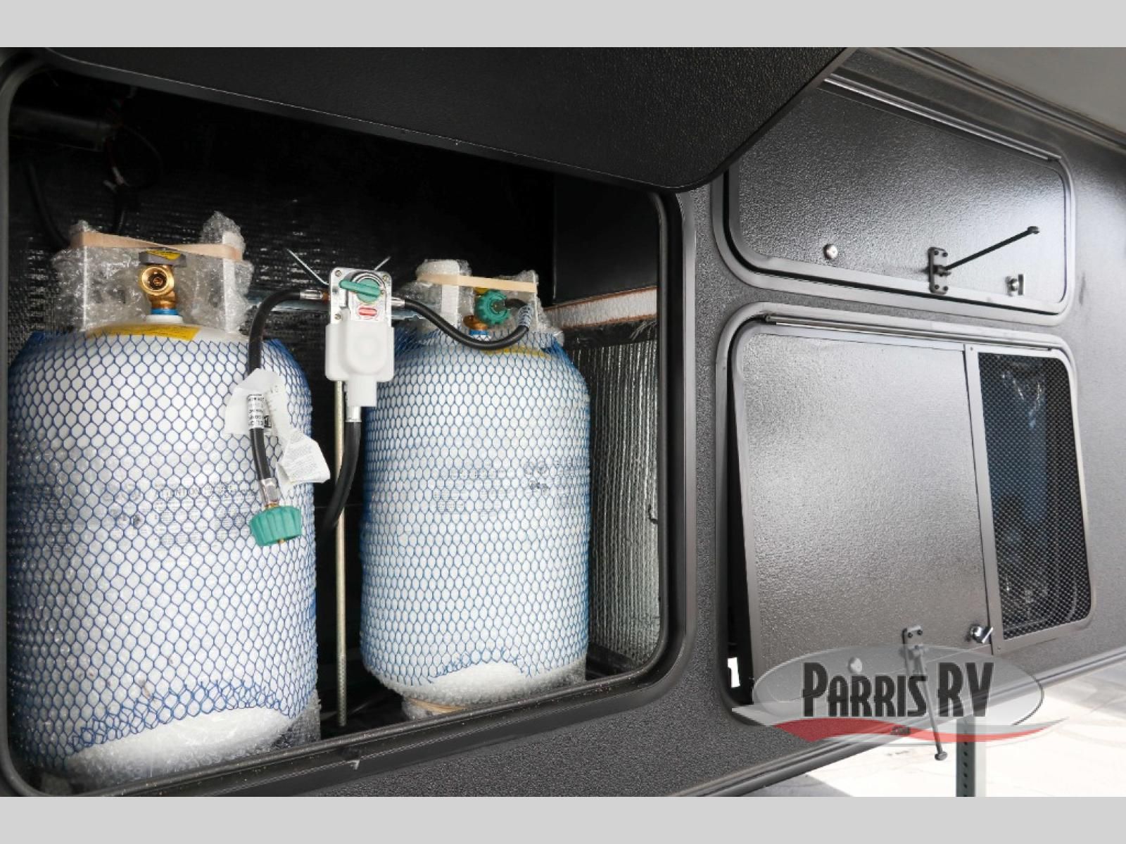 Sit back in one of the two lounge chairs on this Vortex toy hauler after exerting all of your energy out on the trails for the day! If you need to replenish your energy, grab some food from the 8-cubic foot refrigerator or heat up some leftovers in the XL residential microwave. The sofa table is good for eating meals or catching up with friends over dessert, and the full bathroom has a linen closet to store your towels. The private bedroom has a wardrobe slide to add space for moving about and storing your clothes, and you can also add another optional slide in the main living area.