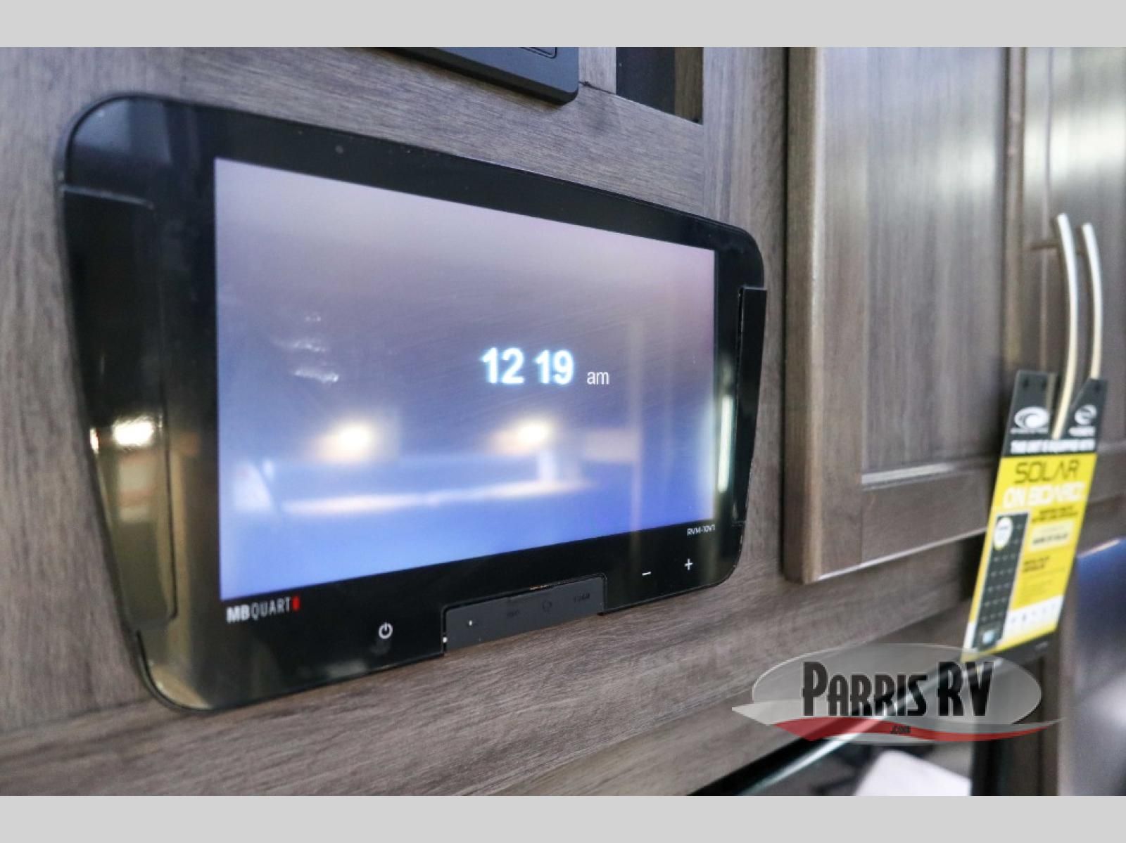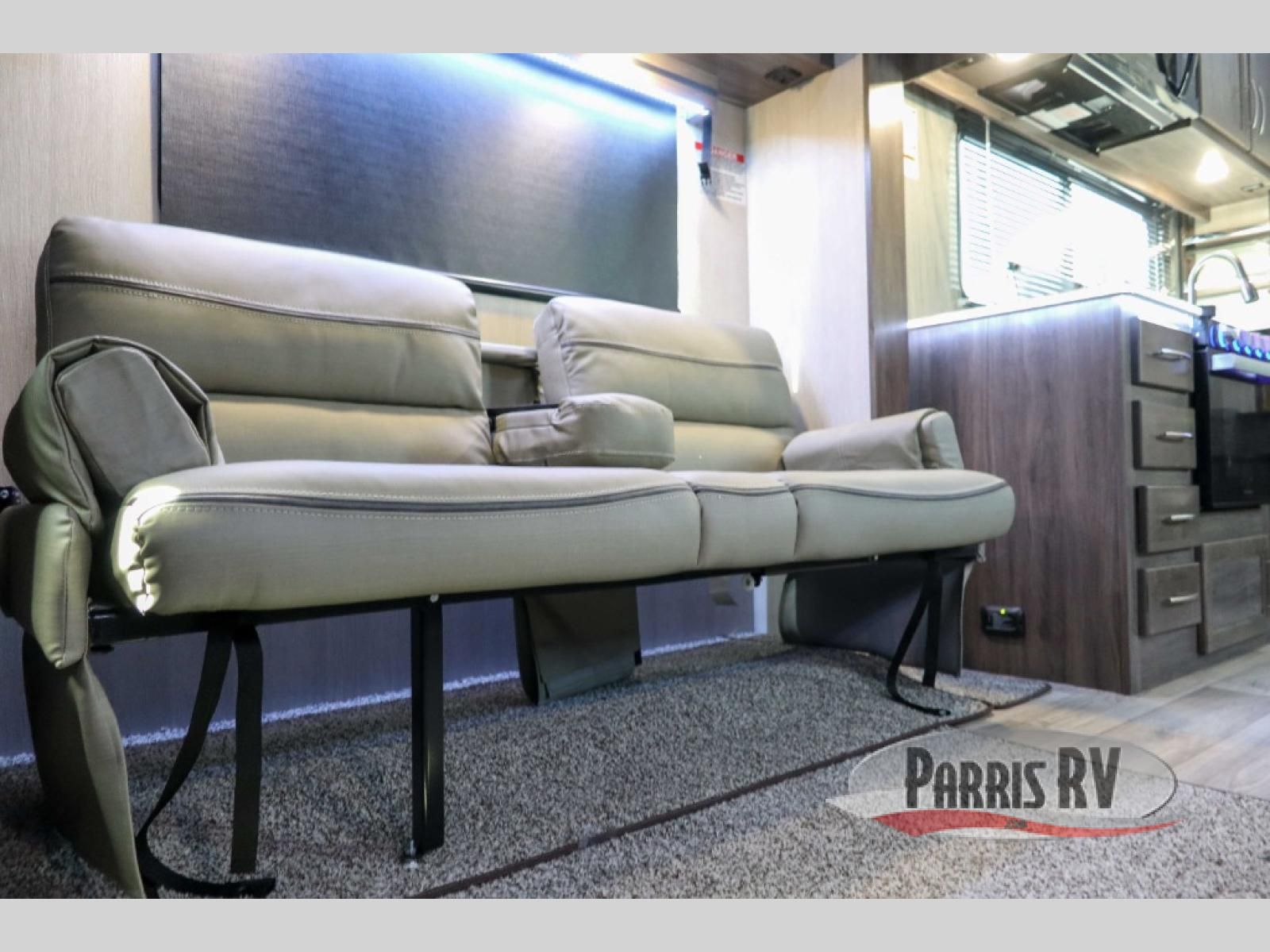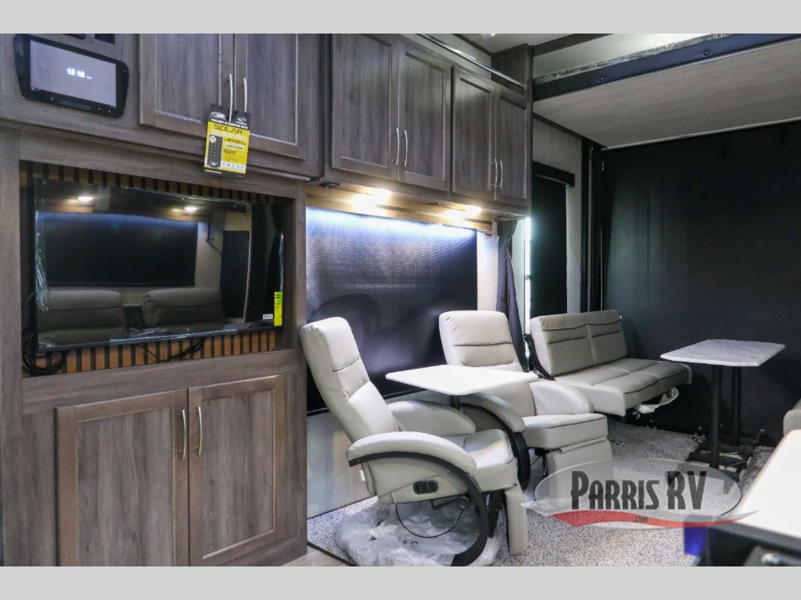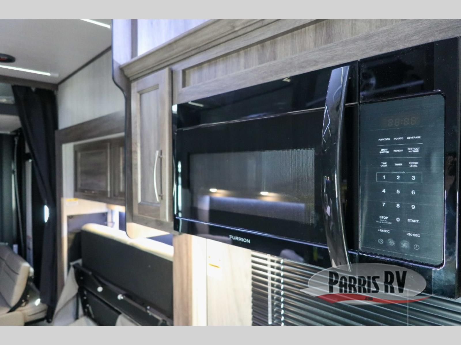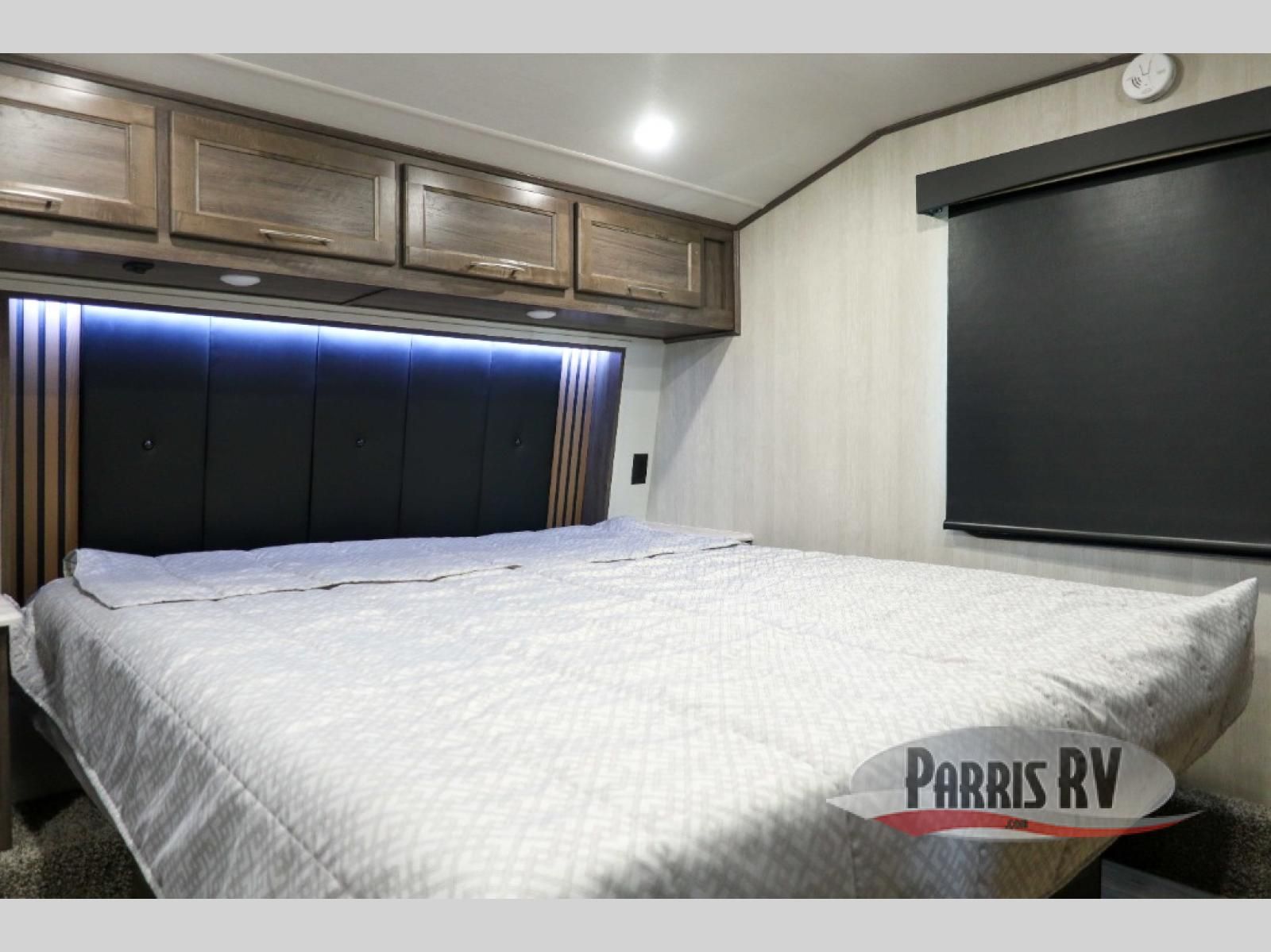 Sit back in one of the two lounge chairs on this Vortex toy hauler after exerting all of your energy out on the trails for the day! If you need to replenish your energy, grab some food from the 8-cubic foot refrigerator or heat up some leftovers in the XL residential microwave. The sofa table is good for eating meals or catching up with friends over dessert, and the full bathroom has a linen closet to store your towels. The private bedroom has a wardrobe slide to add space for moving about and storing your clothes, and you can also add another optional slide in the main living area.