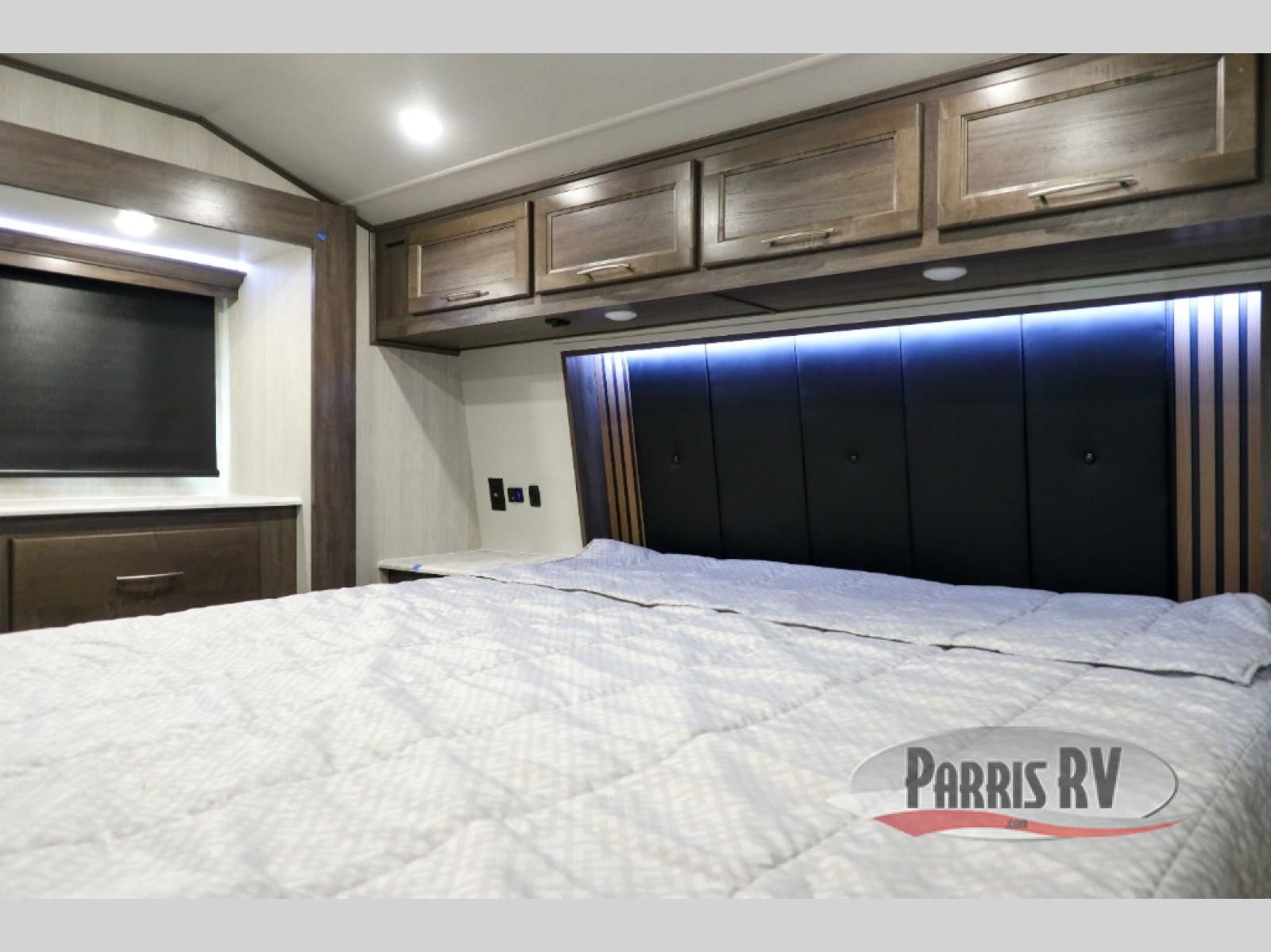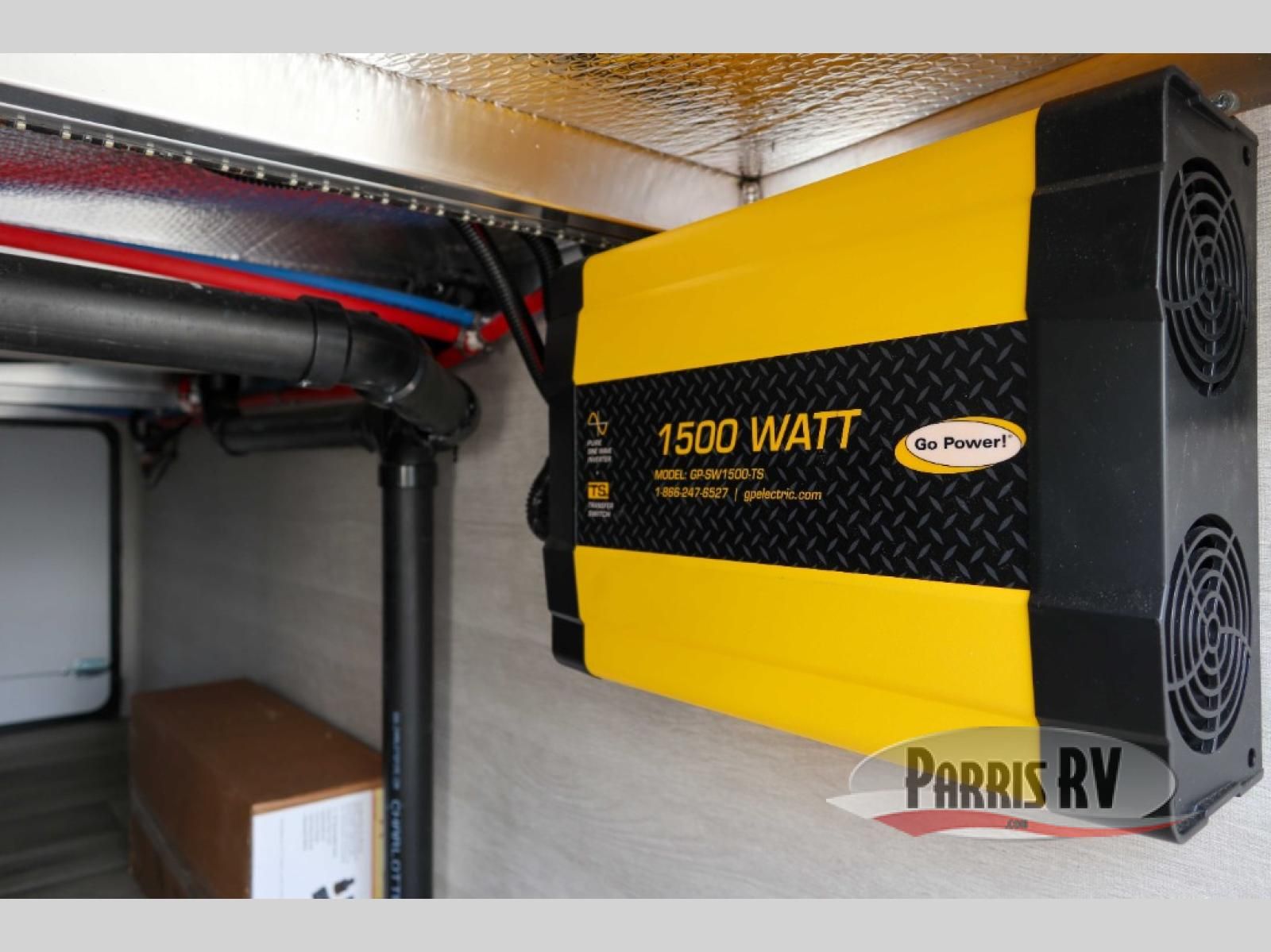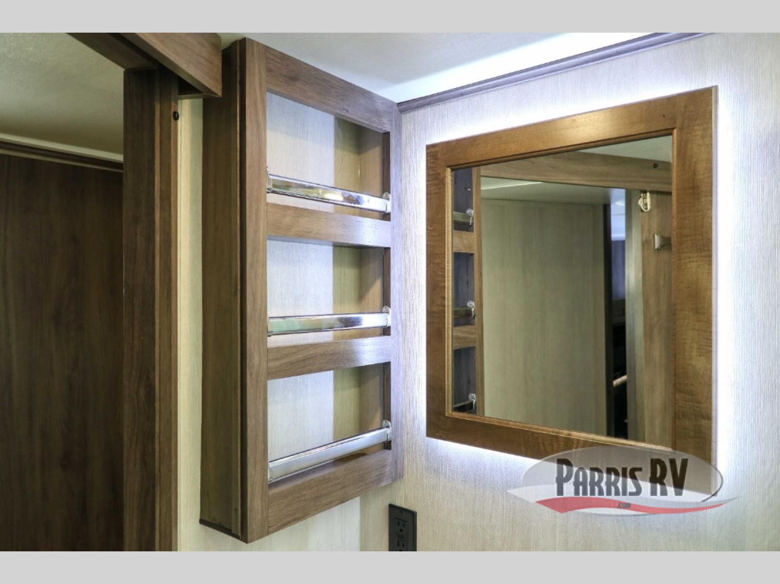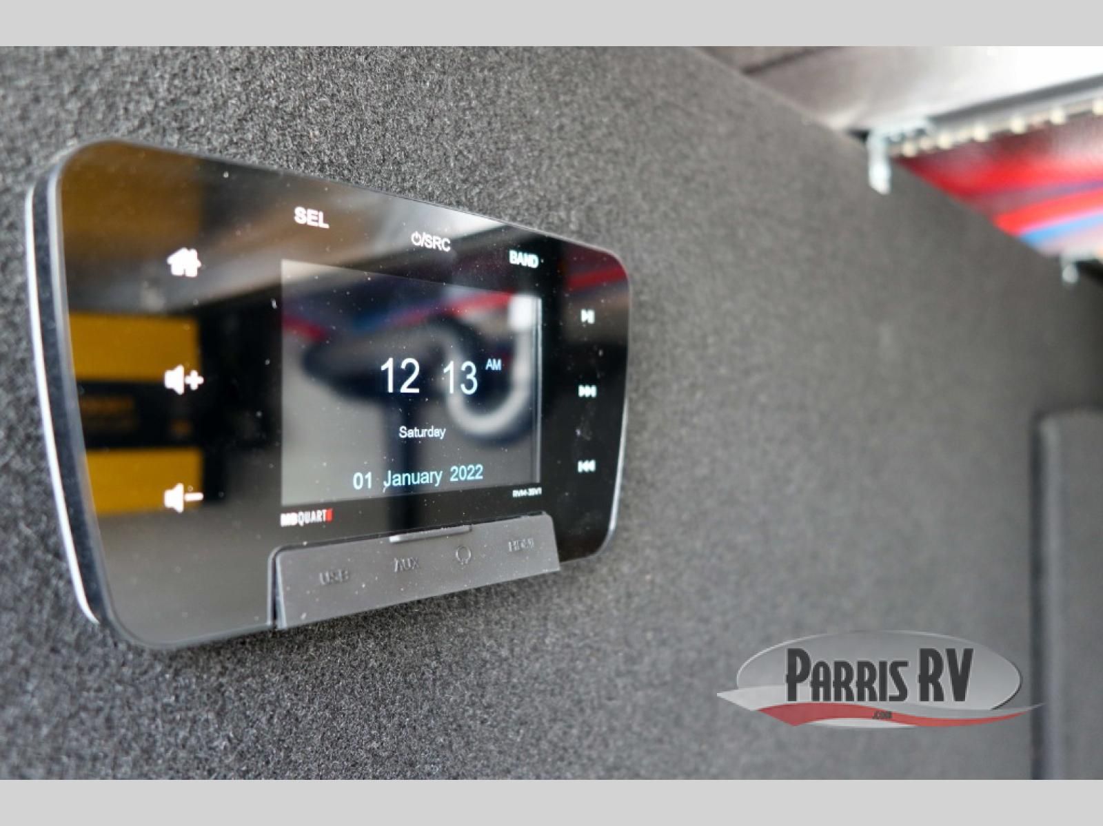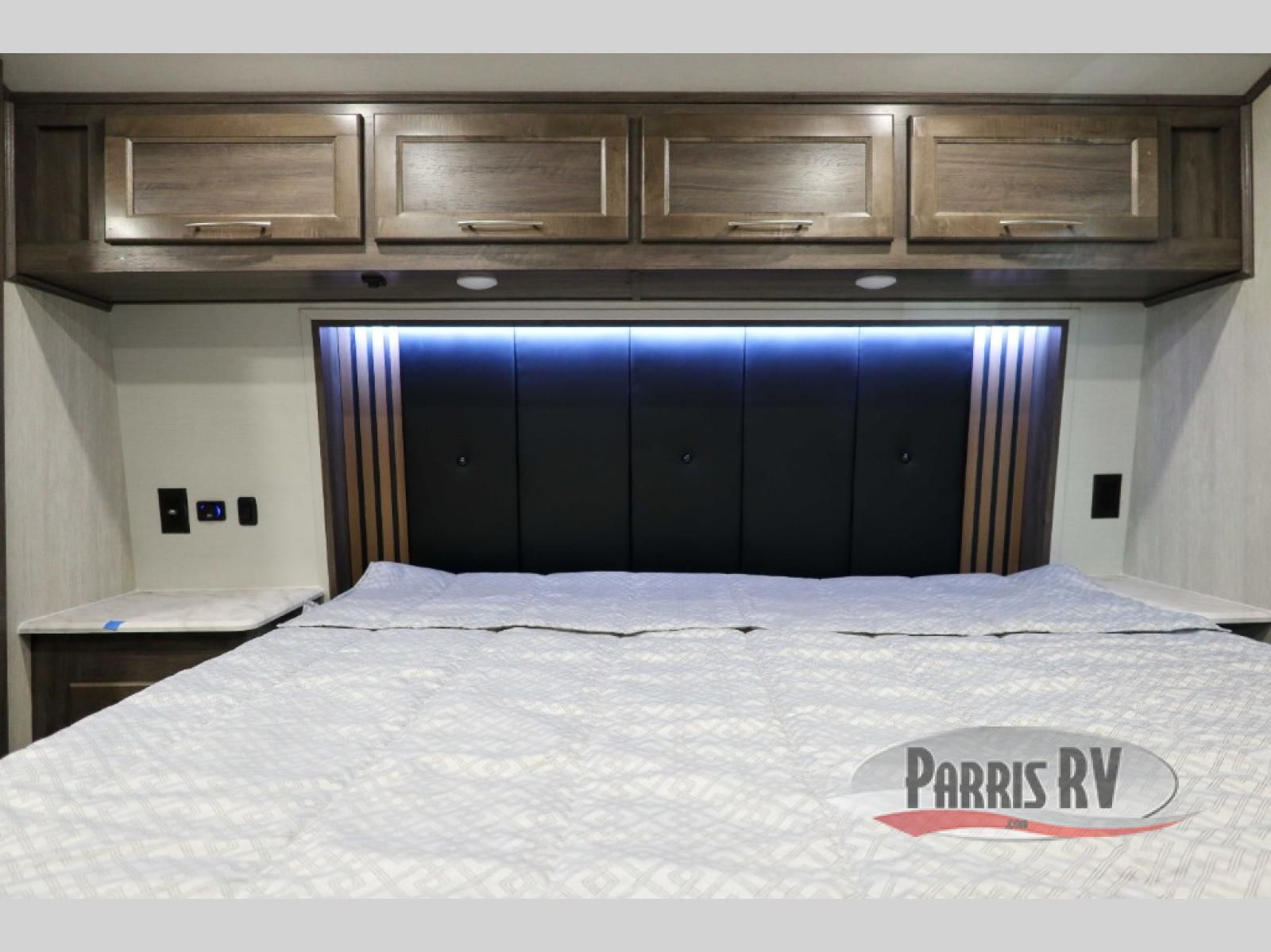 Sit back in one of the two lounge chairs on this Vortex toy hauler after exerting all of your energy out on the trails for the day! If you need to replenish your energy, grab some food from the 8-cubic foot refrigerator or heat up some leftovers in the XL residential microwave. The sofa table is good for eating meals or catching up with friends over dessert, and the full bathroom has a linen closet to store your towels. The private bedroom has a wardrobe slide to add space for moving about and storing your clothes, and you can also add another optional slide in the main living area.