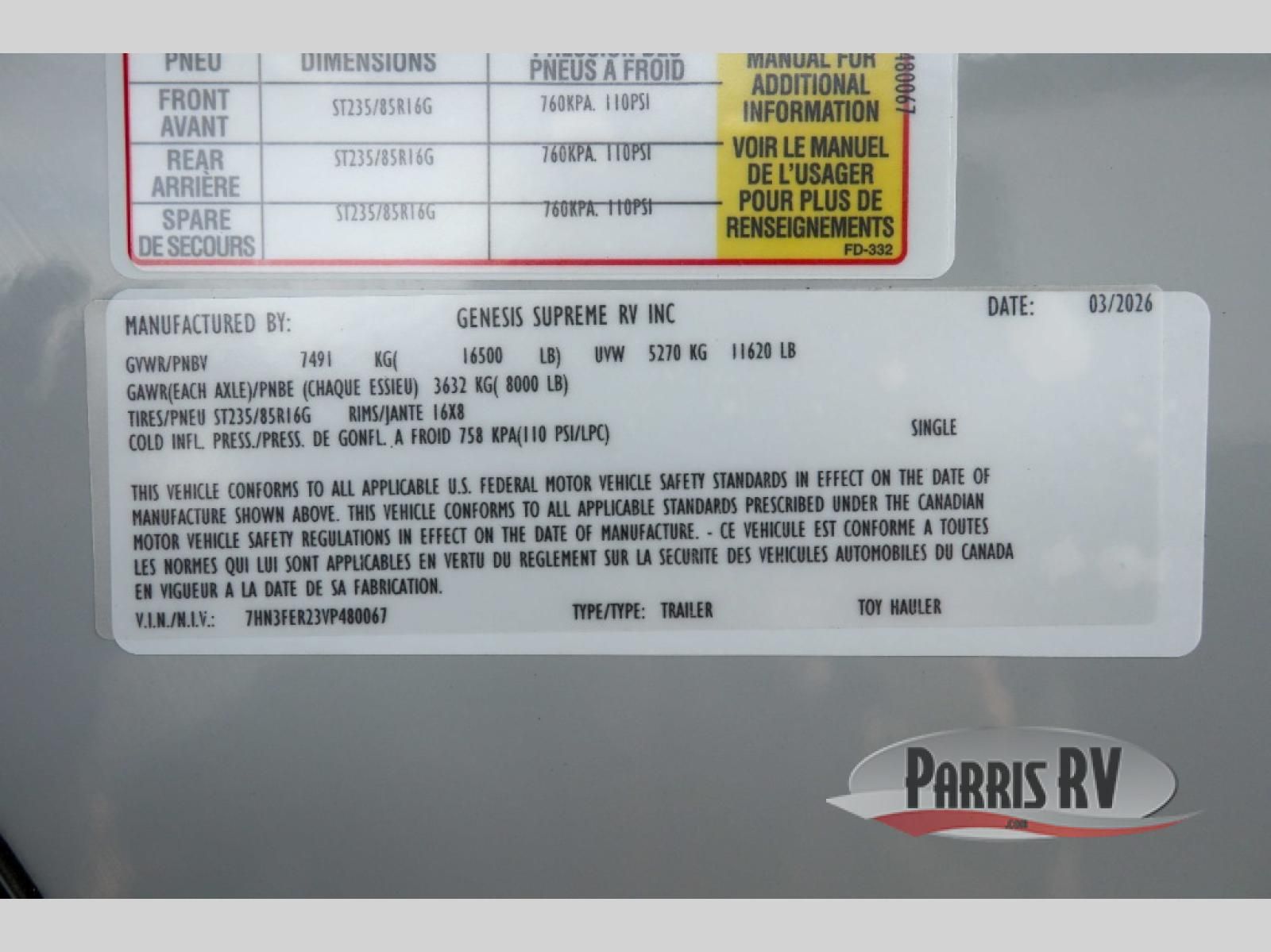 Genesis Supreme Vortex toy hauler 3317VXL highlights: