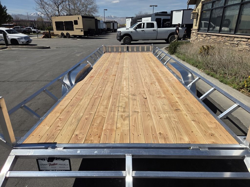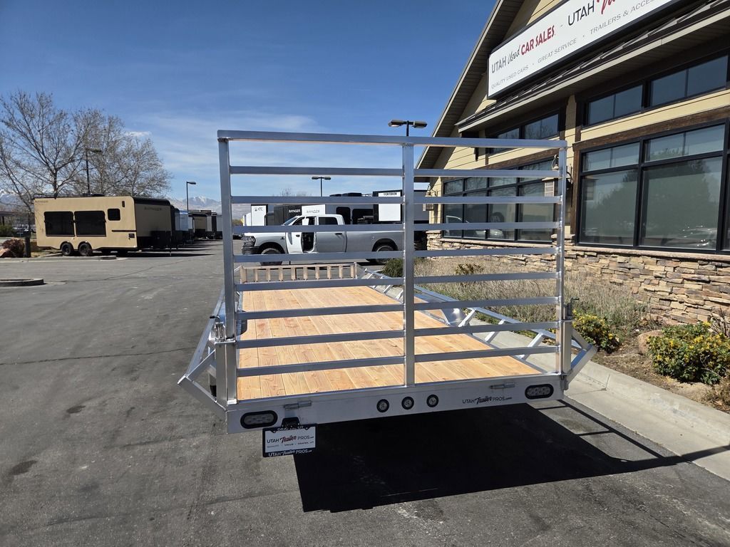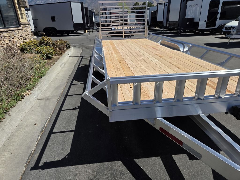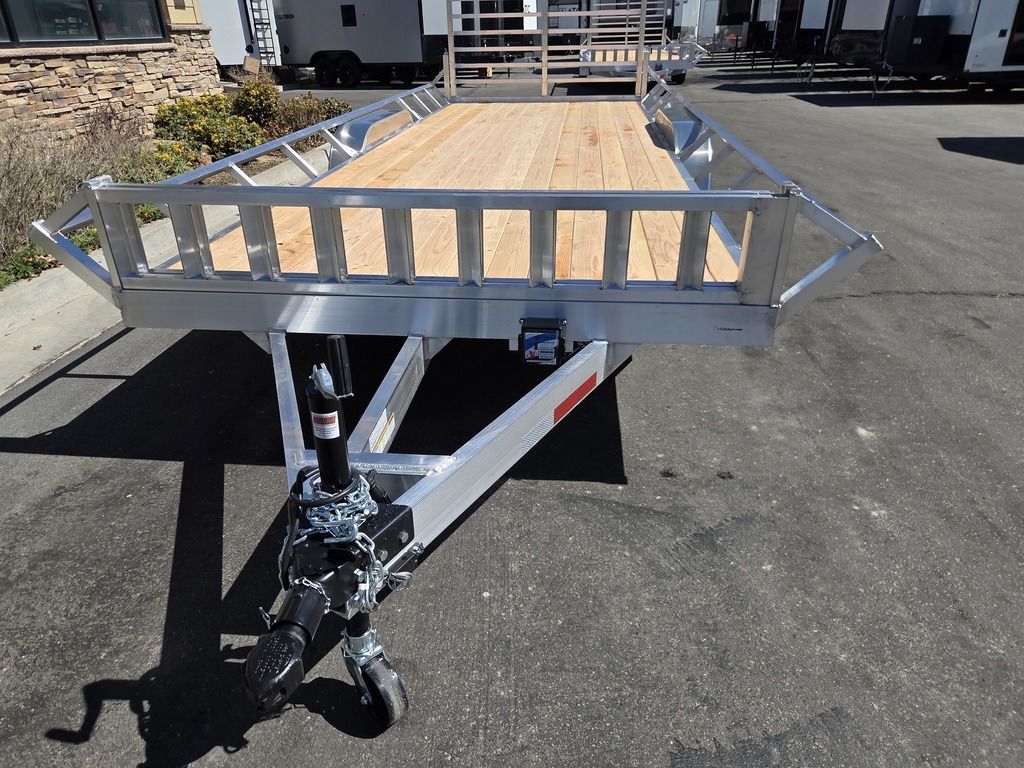 Baughman Aluminum 7x20 Utility with Side Ramps AND Rear Ramp!! Angled Sides for easy side load and unload!! This is not your average trailer, this Premium Baughman comes with high strength aluminum welds, premium decking with recessed D rings for easy tie down, super light side ramps with built in storage, plus an easy to use pin locking ramp!! Did you know this trailer is light enough for most people to simply hand lift off your trailer ball!!?? Super light and easy to move around with built in tongue jack wheel!!! Recessed Lights, Weather Treated Wood Deck, and More! Call or Text to come pick up this gorgeous trailer!! TL065214