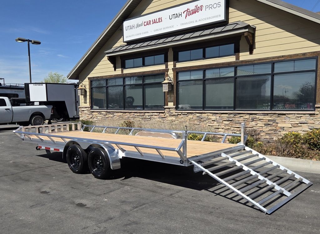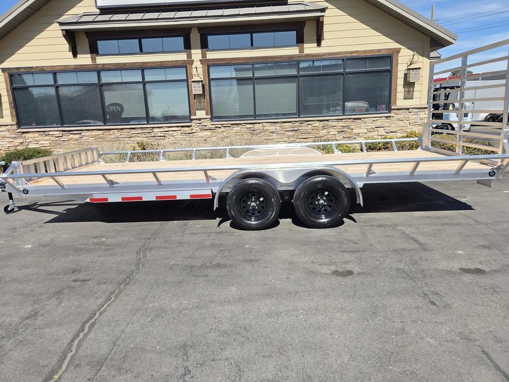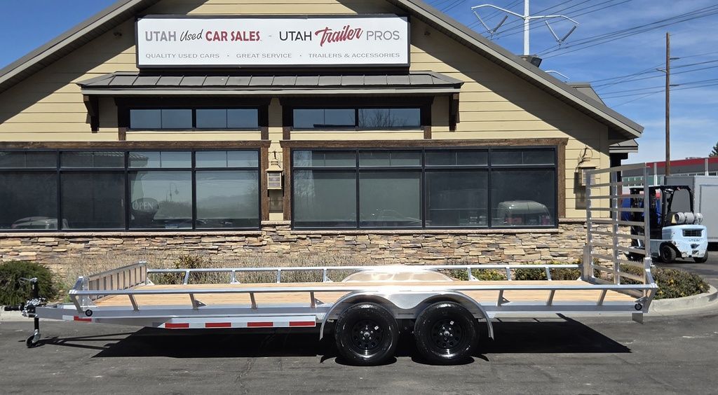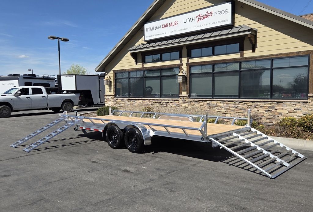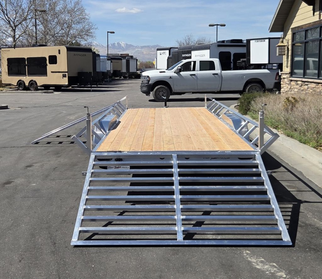 Baughman Aluminum 7x20 Utility with Side Ramps AND Rear Ramp!! Angled Sides for easy side load and unload!! This is not your average trailer, this Premium Baughman comes with high strength aluminum welds, premium decking with recessed D rings for easy tie down, super light side ramps with built in storage, plus an easy to use pin locking ramp!! Did you know this trailer is light enough for most people to simply hand lift off your trailer ball!!?? Super light and easy to move around with built in tongue jack wheel!!! Recessed Lights, Weather Treated Wood Deck, and More! Call or Text to come pick up this gorgeous trailer!! TL065214