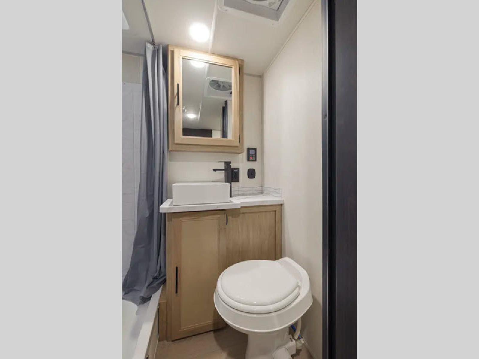 You will undoubtedly love this Cherokee Grey Wolf Black Label toy hauler! Because of its ability to have up to 15' 2" of cargo space, you can easily load up the ramp door and head out to your outdoor toy land, and you can bring much more than just your toys since this trailer also comes with exterior storage, a bedside wardrobe, overhead cabinets, a refrigerator, and a kitchen pantry. The full bathroom is another feature that is going to allow you to experience a true getaway since you won't need to find public facilities to use while you're gone, and the USB charging stations will allow you to charge your phone inside while you're outside playing.