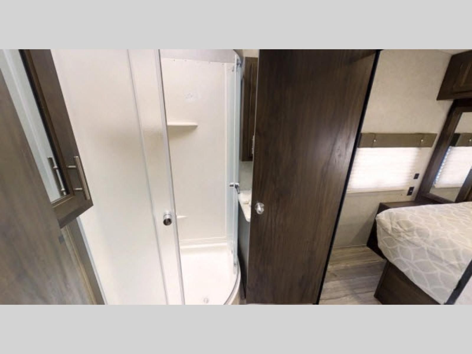 With any Cherokee Wolf Pack toy hauler, it is easy to keep the outdoor fun going all weekend long! There is plenty of room for a few dirt bikes, a four wheeler, or an ATV, and you can clean up from your excursions before coming indoors with the outside shower. Inside you will find comfortable conveniences, such as tongue and groove plywood floors, real wood doors and drawers, wood blinds, and an 8 cubic foot refrigerator. You will also appreciate having a 35,000 BTU furnace to keep the interior warm while you sleep at night.