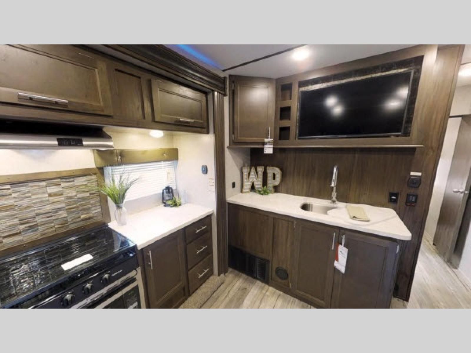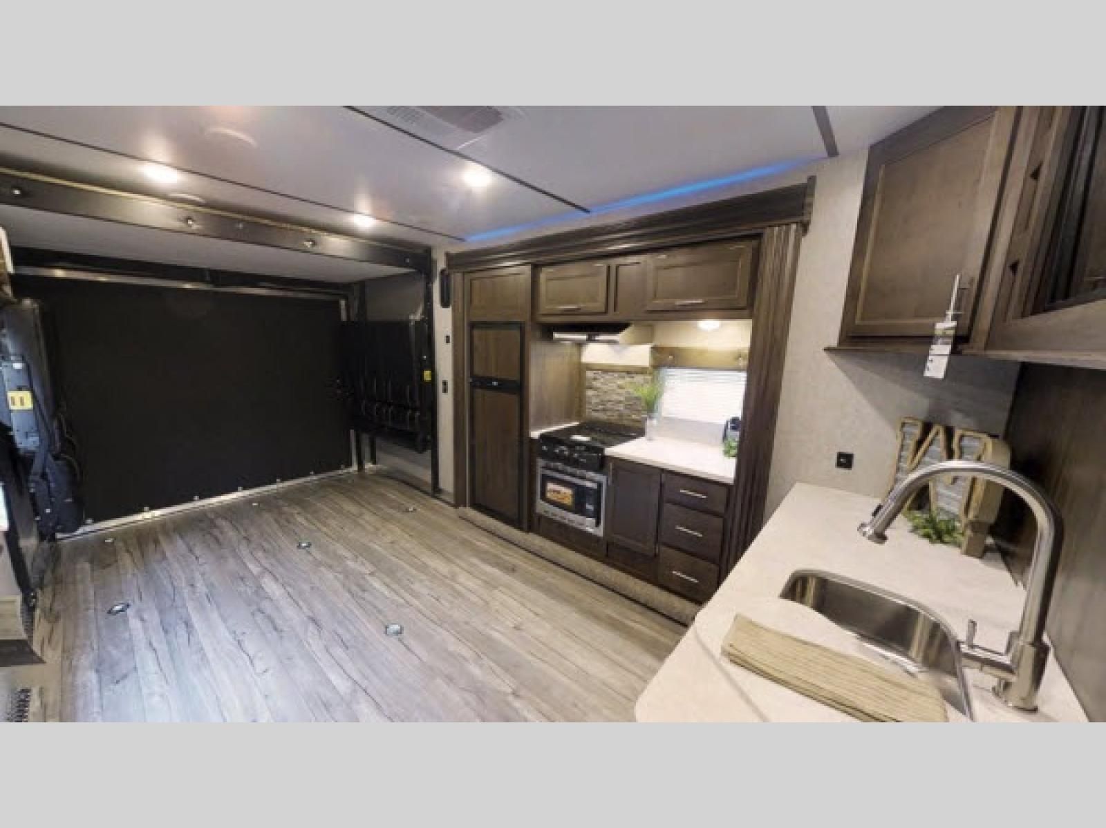 Get ready for any camping excursion with this single-slide Cherokee Wolf Pack toy hauler. There is 15' of storage space for your off-road toys. Once you reach your destination and your gear is unloaded, you can easily set up the sofa beds and removable dinette table and lower the Happijac power bunk. The kitchen features all of the amenities that you would expect to find at home, from the convection microwave to the three-burner range, and when you are ready to turn in for the night, retreat to the private master suite where you will find a queen bed with storage below. Outside you will find more storage, a fuel station, plus a 15' power awning.