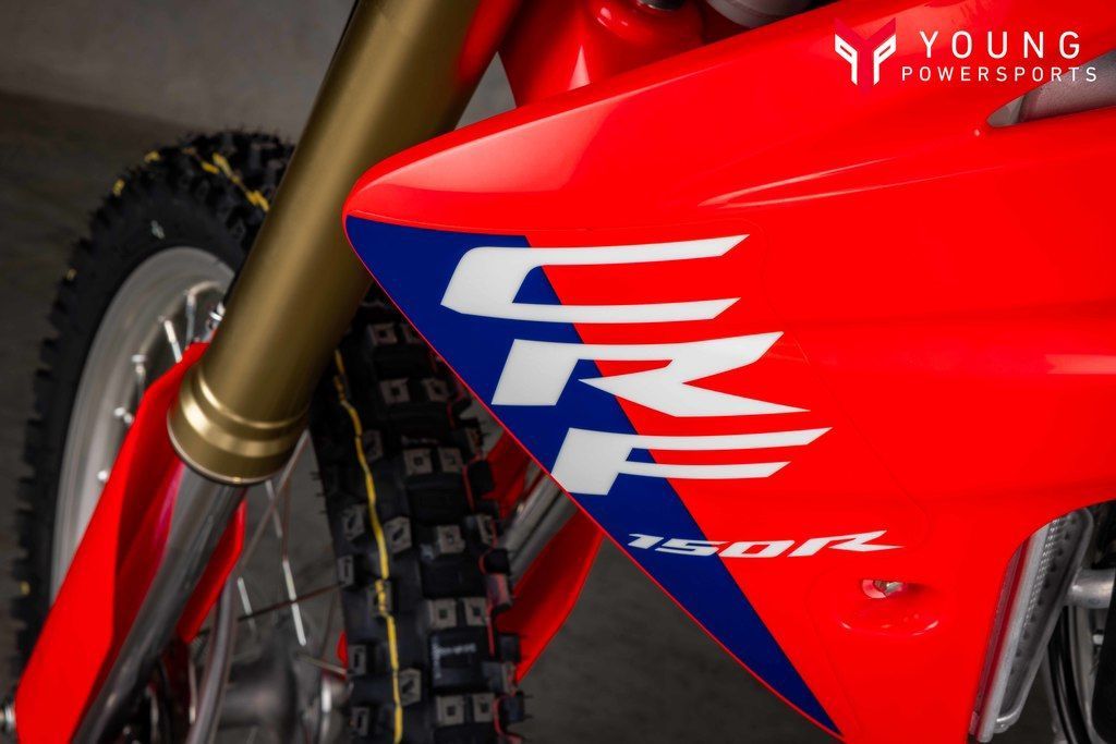 2026 Honda® CRF150REvery champion starts somewhereA great place to start. An even better place to win. The CRF150R and CRF150R Expert are built for young motocross racers, with high-revving Unicam® engines and race-proven components. The Expert adds larger wheels for a taller seat height—perfect for growing riders chasing bigger goals. However far they’re going, it all starts here.Features may include:PerformanceUnicam® engineThe Unicam® engine is based on the championship-winning CRF450R. It is designed to provide excellent rideability and increased power and torque throughout the rev range.HandlingTrack-designed chassisA lightweight, high-tensile steel frame with large-diameter tubing and crossmembers delivers excellent turning performance and straight-line tracking..StyleBig-bike MX graphicsClean, bold, and bright graphics are just like those on our CRF450R. Look like a pro, ride like a pro.Comfort & ConvenienceExpert model featuresThe CRF150R Expert features bigger wheels and a longer swingarm, giving it a higher seat to better suit taller riders.