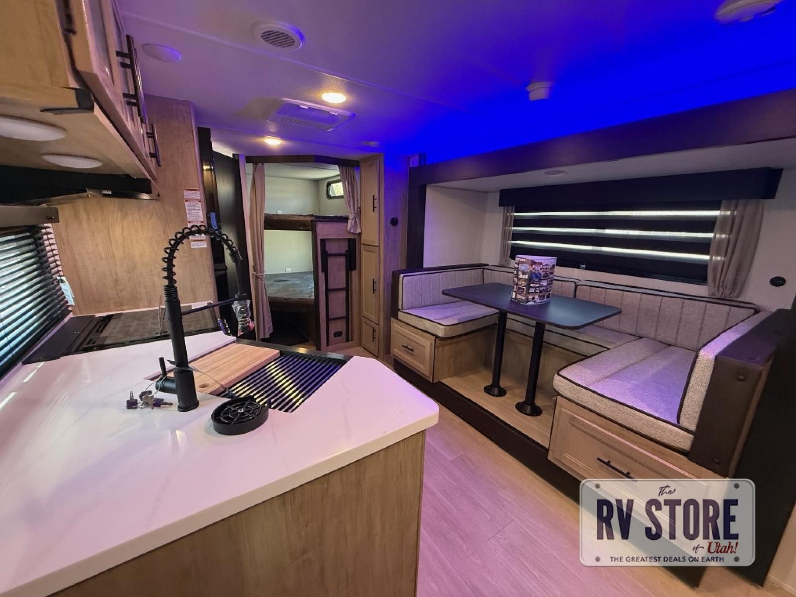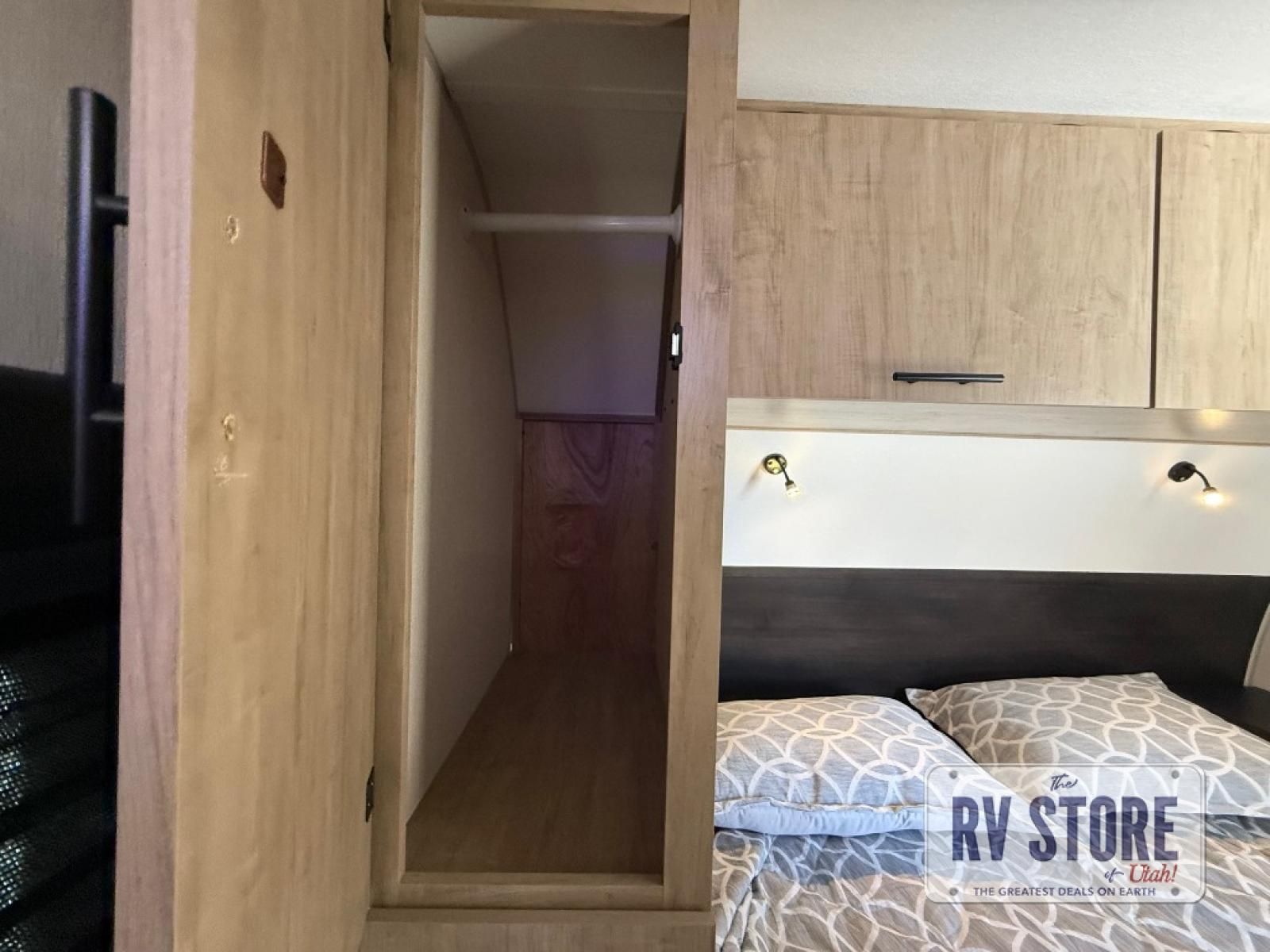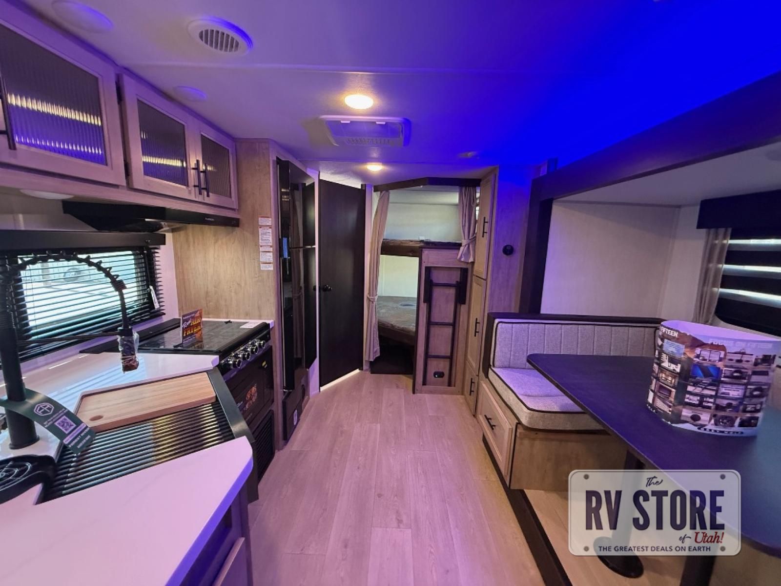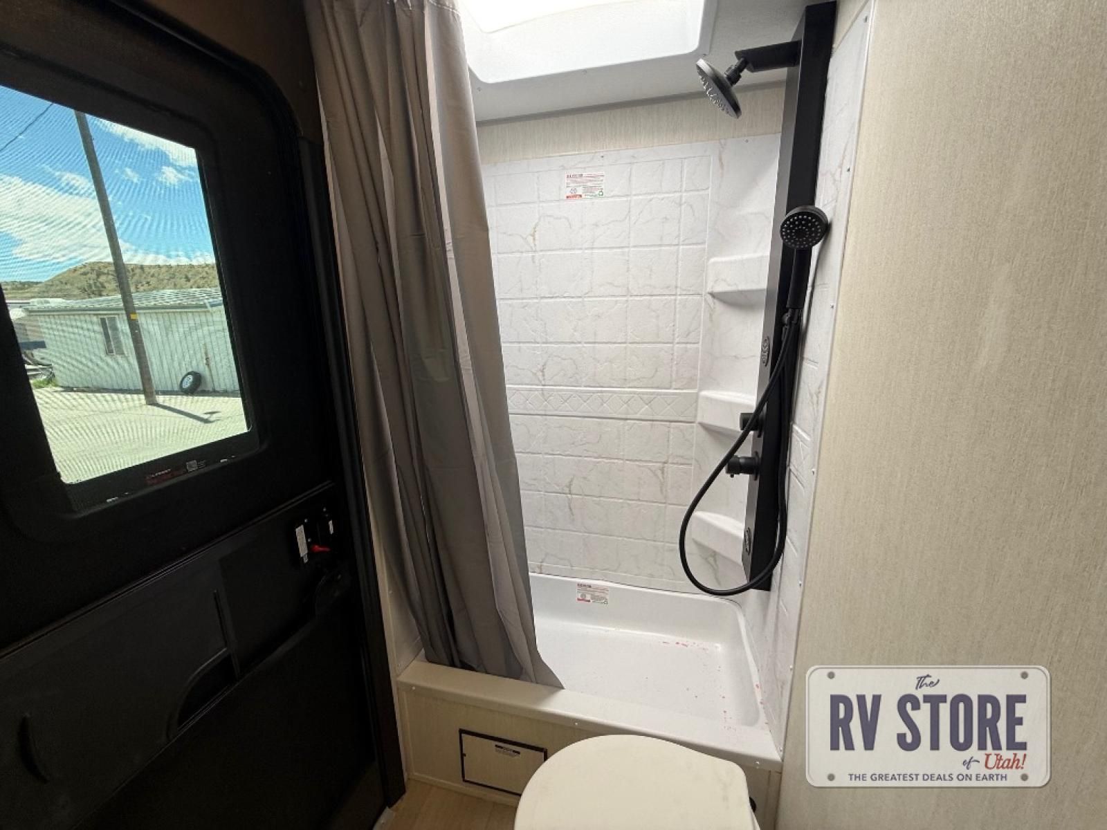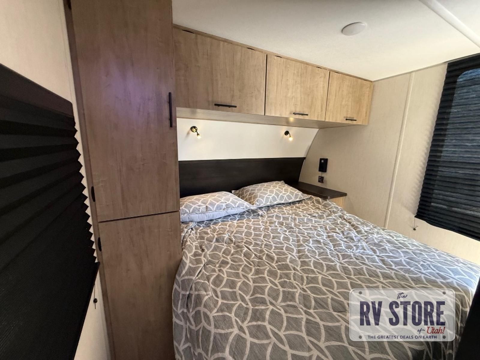You will love the space provided in this dual entry Cherokee Grey Wolf Black Label travel trailer that has double-size bunks! The rear entry door leads right into the full bath allowing easy access from outside when you need to use the bathroom while you're enjoying the great outdoors. The large U-shaped dinette slide will not only seat everyone comfortably for a meal or a game, but since it also slides out, it opens up the interior even more to give you plenty of space for foot traffic. This space also serves as extra sleeping space if needed. For all of your outdoor gear, you will find the outside storage compartments handy for stowing away your things when not in use. While the kids enjoy their bunk beds, you will enjoy a good night's rest on the RV king bed with a wardrobe in the front private bedroom!