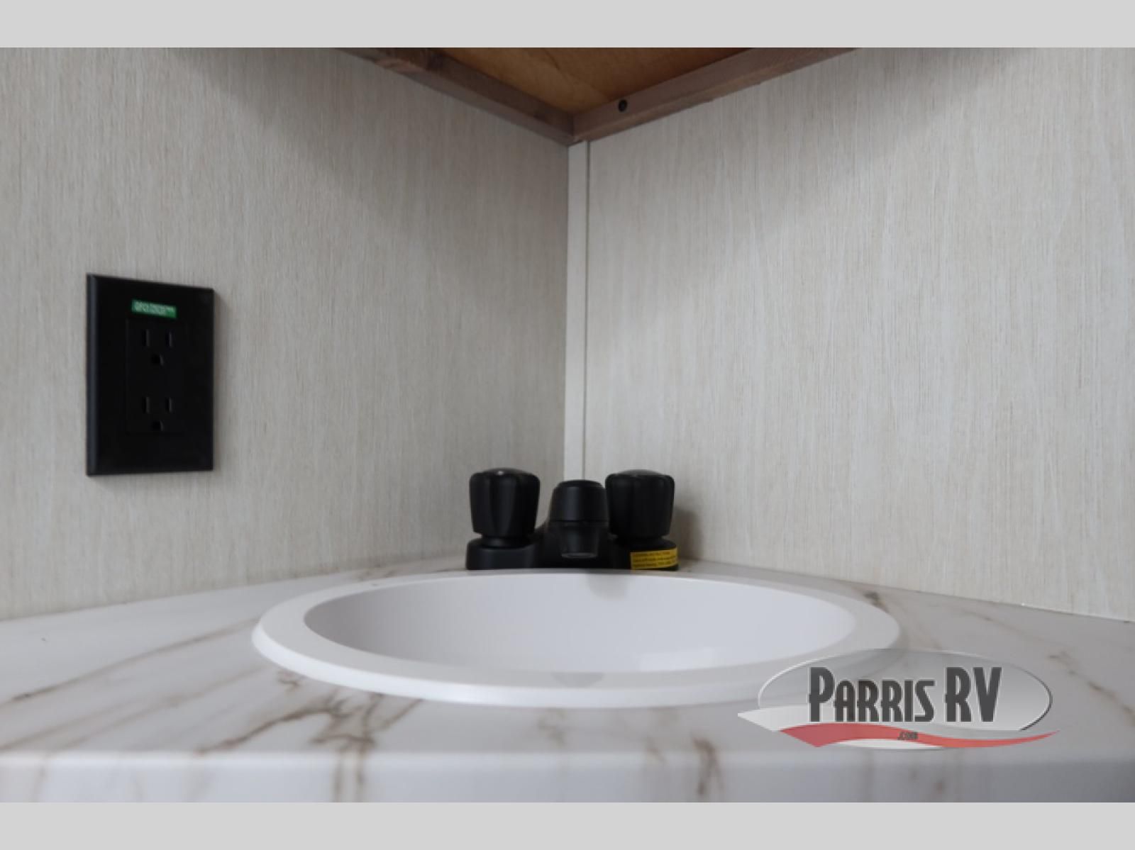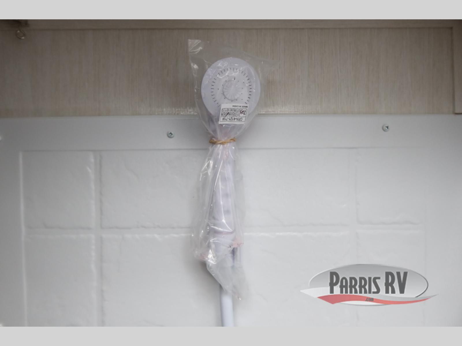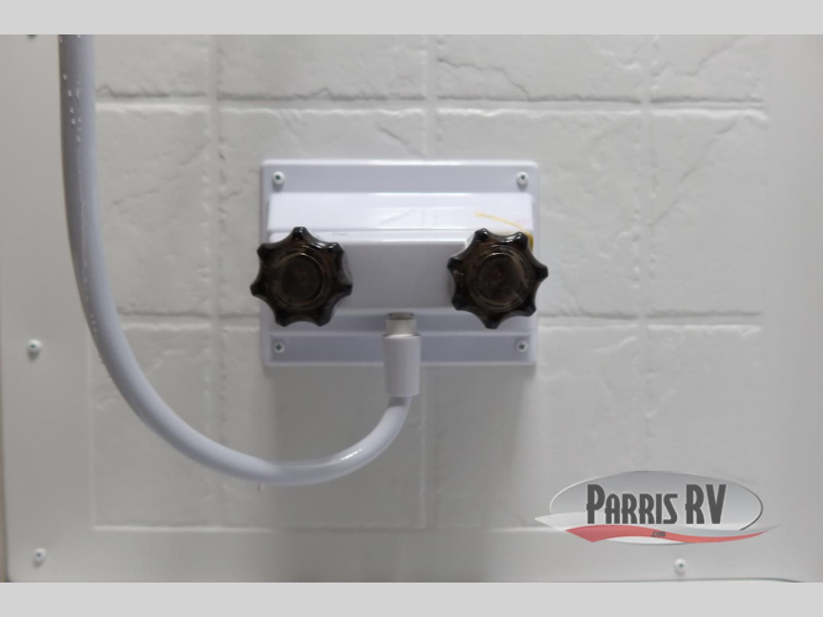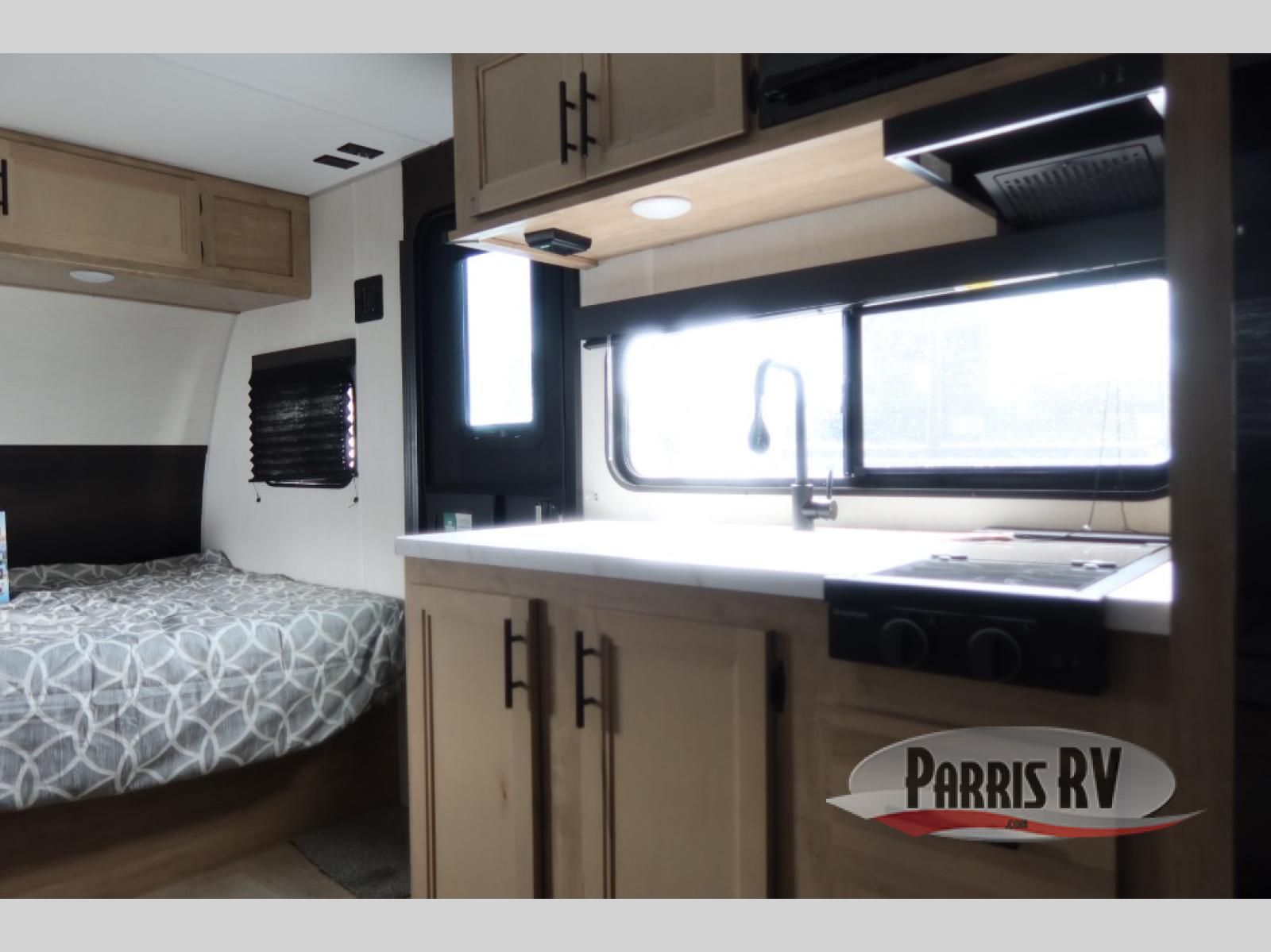 This family travel trailer is ready to head to the campground whenever you are! The kiddos can sleep on the set of double-size bed bunks, and you can sleep on the front queen bed, plus the U-shaped dinette slide can also transform into an extra sleeping space when you aren't using it to enjoy a meal prepared with the cooktop. You can also prepare your delicious meals at the outside mini kitchen and stay protected by the power awning. The exterior not only has outside storage and an outside TV mount but also features an outside storage plus door for access to the storage space underneath the bottom bunk bed. The rear corner bath allows everyone to stay clean and refreshed while you camp.