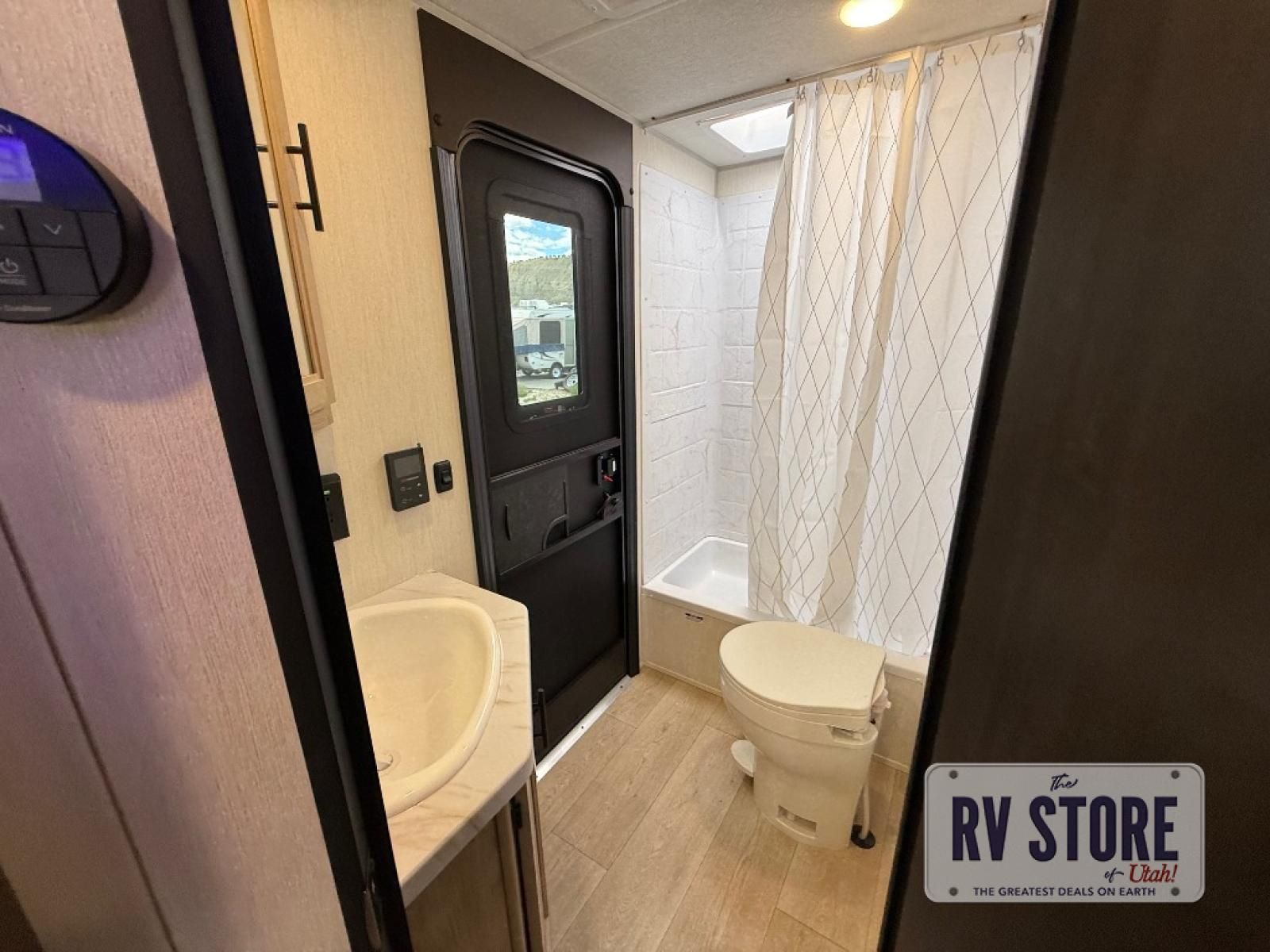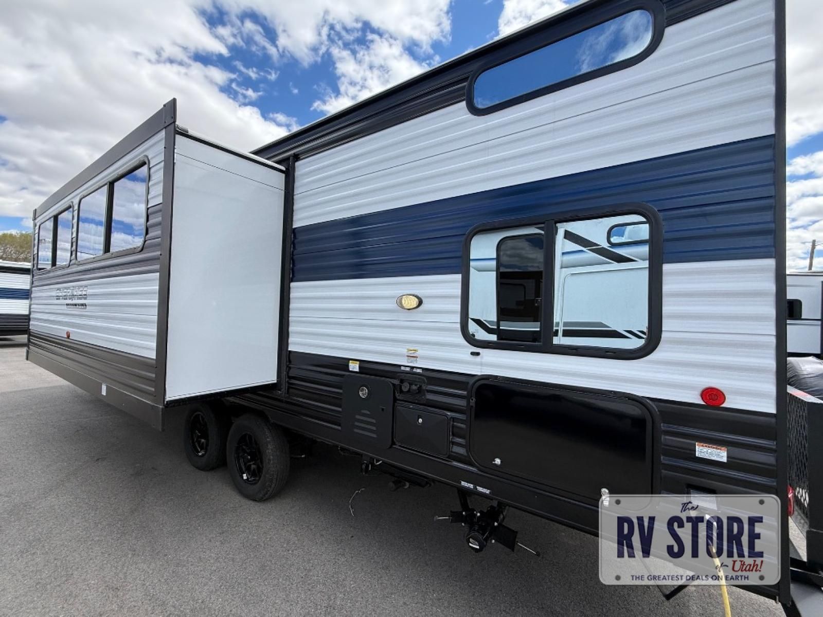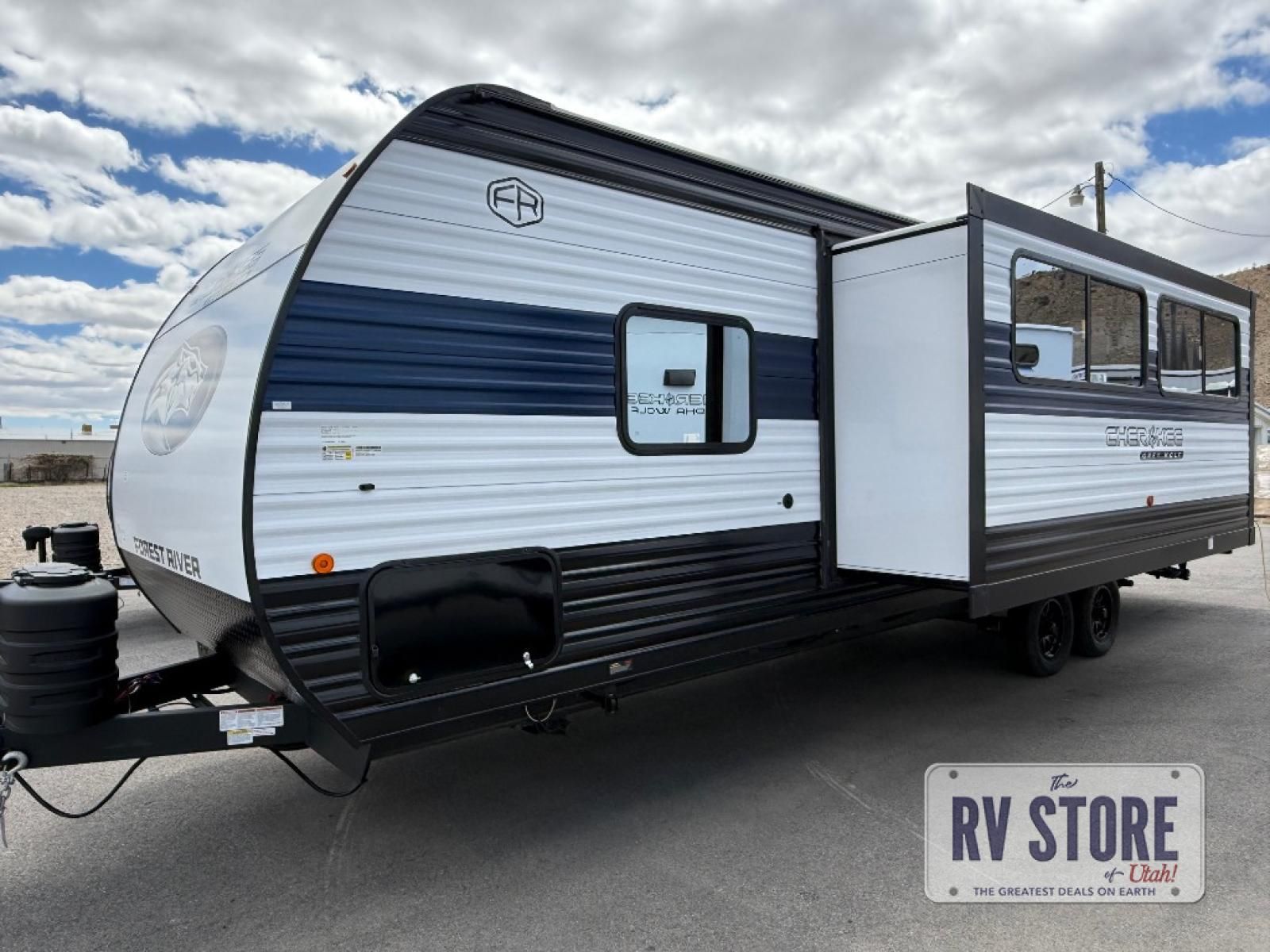 This Cherokee Grey Wolf Black Label travel trailer is perfect for your small family and will leave you planning your next outing before you are back from your current weekend away! You will find all of the comforts you need with plenty of livable space including a U-shaped dinette slide. There is also a sofa for more seating when company arrives, and there are end tables on either side to prevent spills. A spacious walk-through bath leads to a front private bedroom where you will enjoy a great night's rest on a comfortable RV king bed.