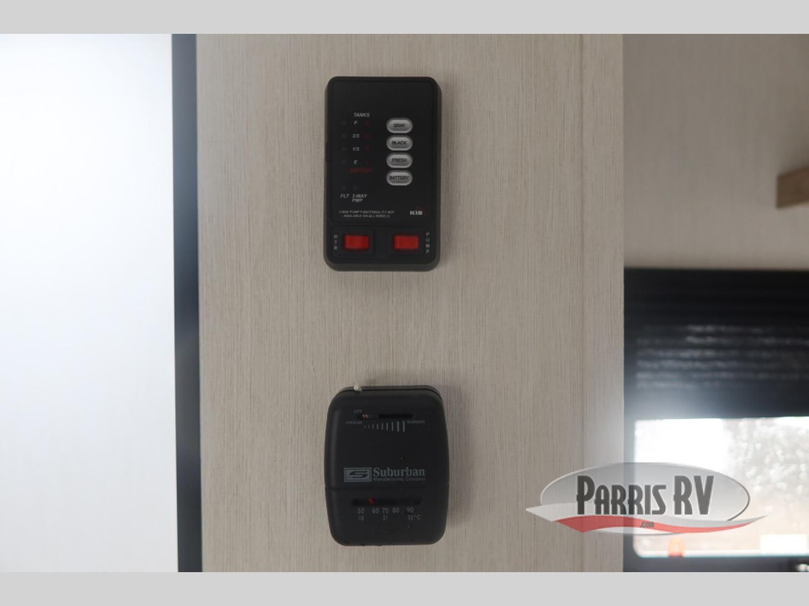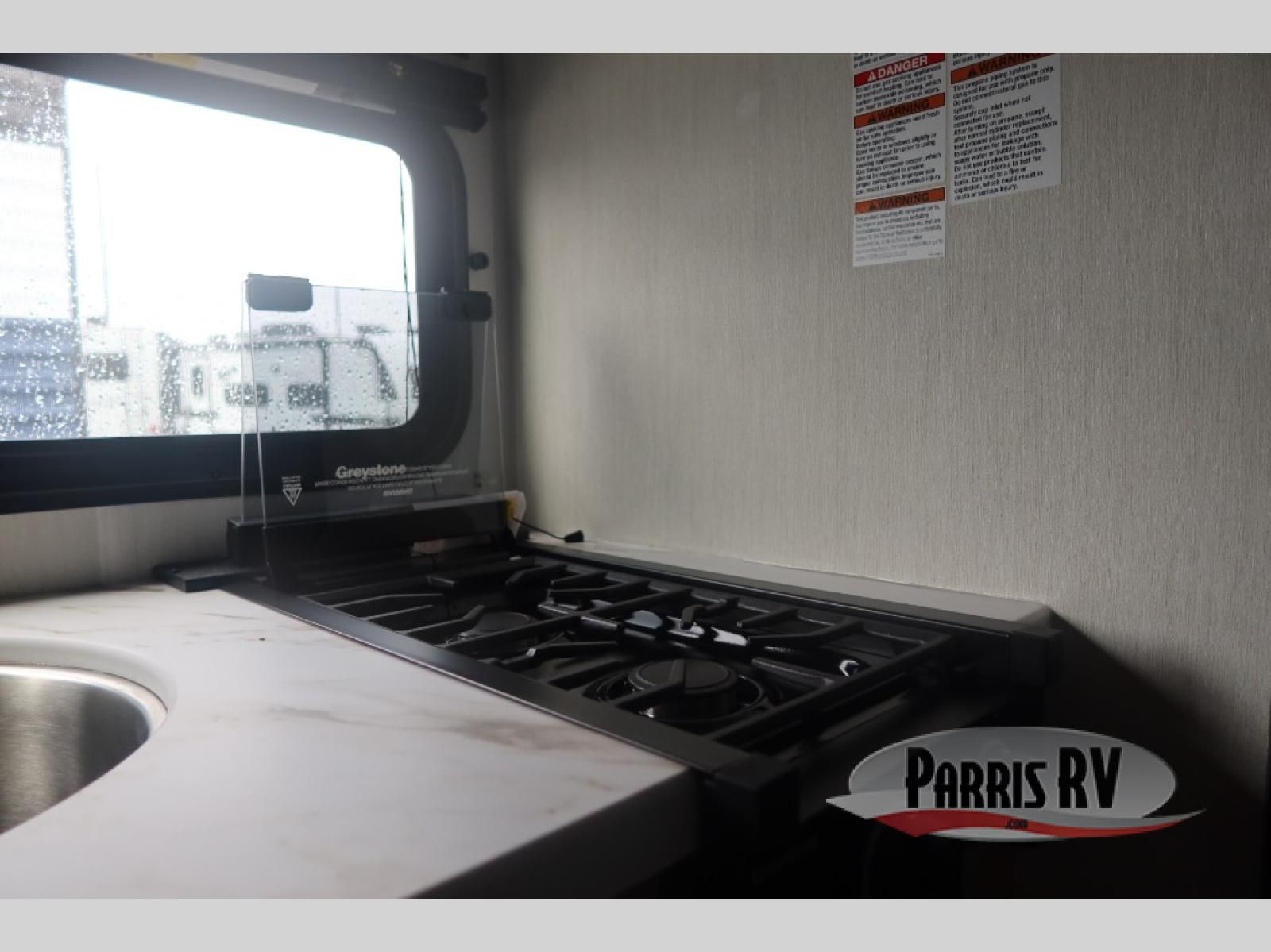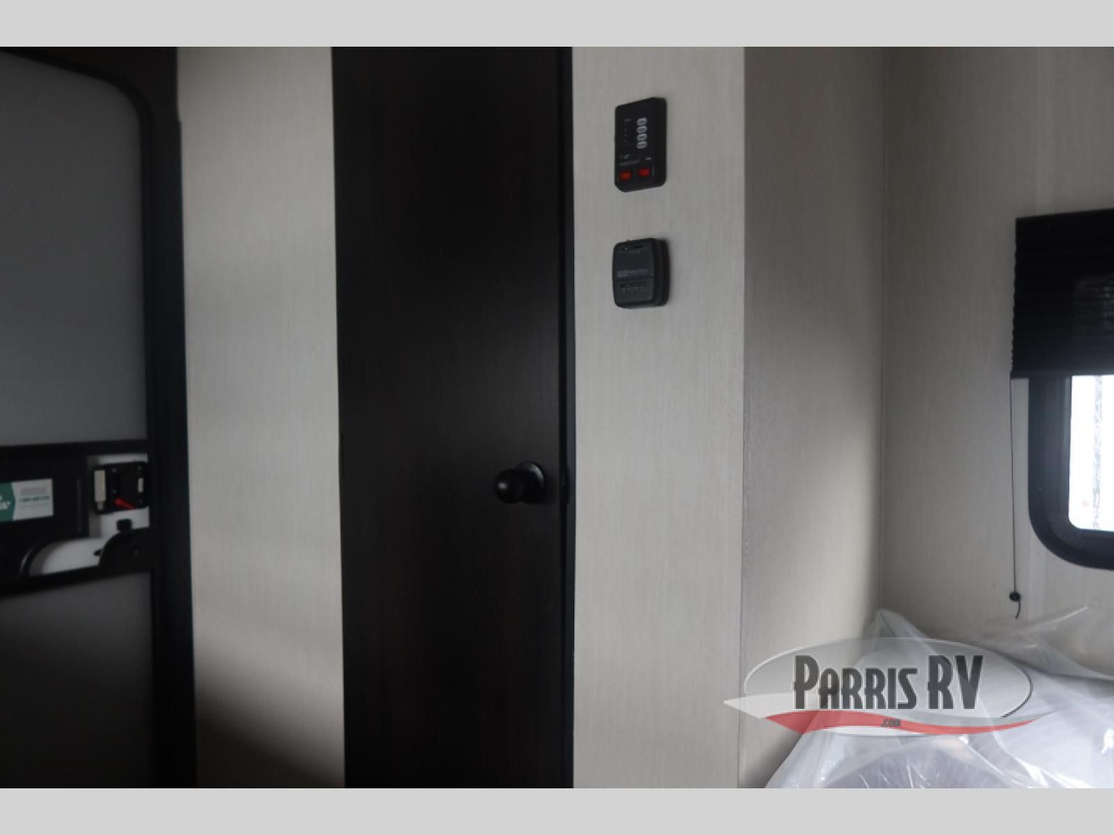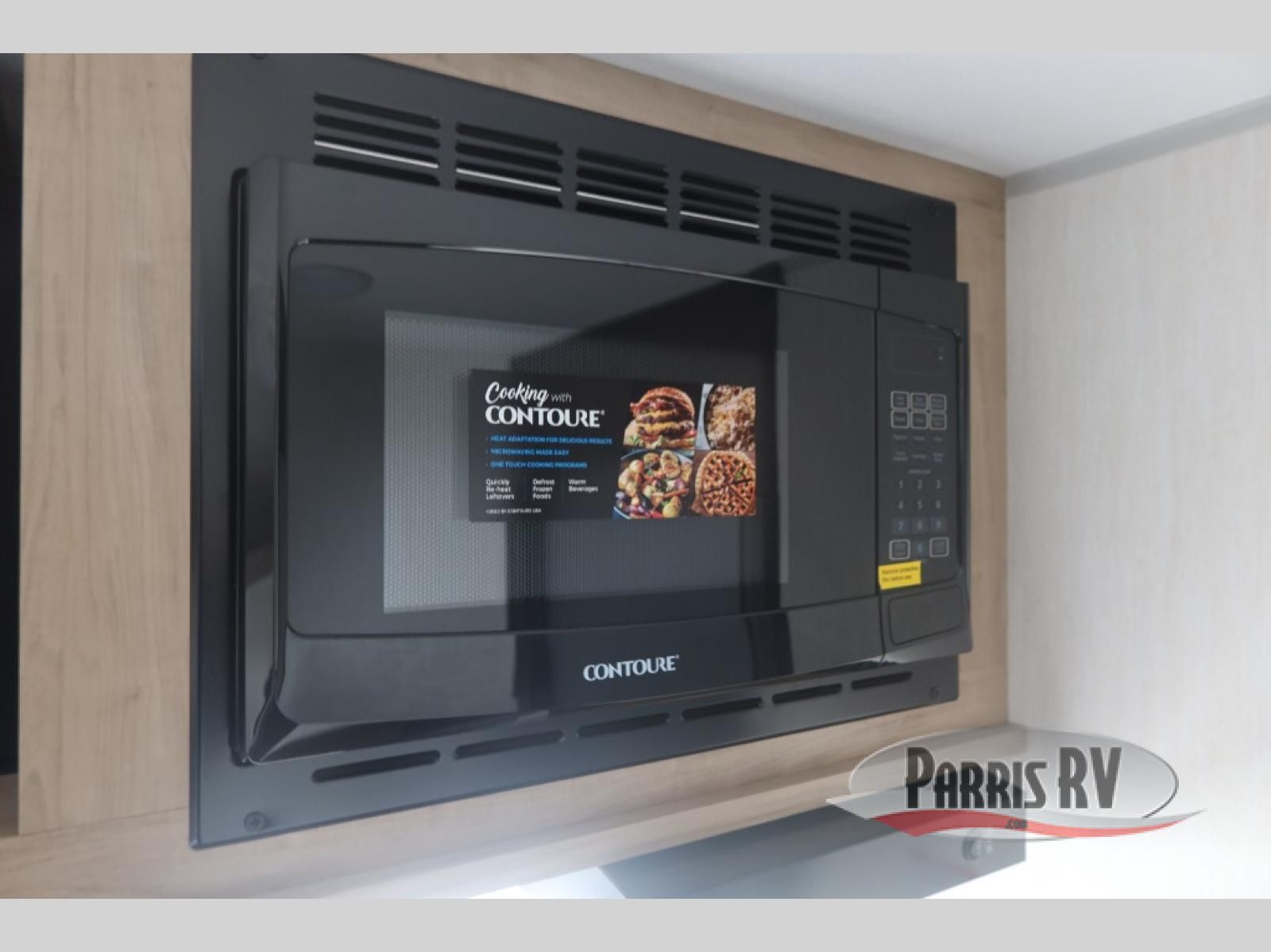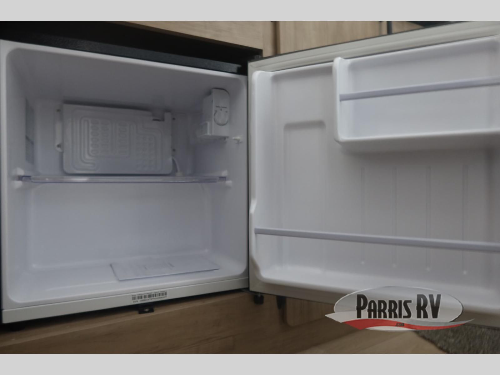 Featuring a compact, no-frills layout that keeps everything within reach. At the front of the unit, the queen bed sits as the main feature of the space, providing a simple and comfortable place to rest without any separate living area. Just beside the bed, the small kitchen setup includes a conveniently placed microwave, making it easy to heat up meals while maximizing the limited space. Above the kitchenette, overhead cabinets offer essential storage for your belongings, helping you stay organized in this efficient layout. With its straightforward design and all-in-one front layout, built for easy, practical camping without unnecessary extras.