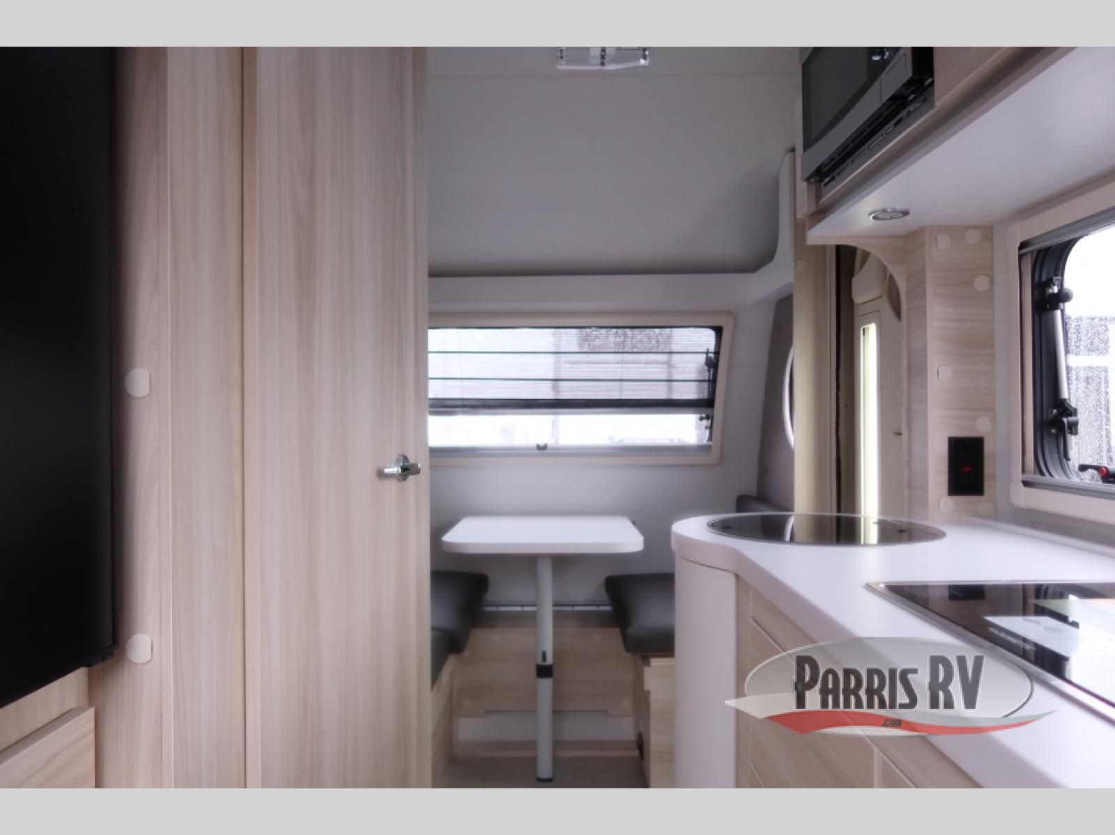 This teardrop trailer offers sleeping space for three with two sleeping areas; one up front and one in the rear. The dinette allows you to eat and relax during the day, and at night this space becomes sleeping space for one. And if you're needing even more sleeping space, you can choose the optional bunk floorplan! The queen-size sleeping area is located on the opposite side with the wet bath in between for convenience for all. The galley kitchen will give the cook a place to make warm meals and store leftovers in the 4.6 cu. ft. 12V compressor refrigerator. Everyone can watch the 24" TV through the Bluetooth media center before bedtime, or in the morning as you all plan your next activity. And the Alde central heating/hot water system, as well as central air conditioning will keep you comfortable wherever you set up. An optional Black Canyon Upgrade is available with an additional 310-watt solar panel, holding tank heaters, underglow lights, and an XL diamond plate storage tub.