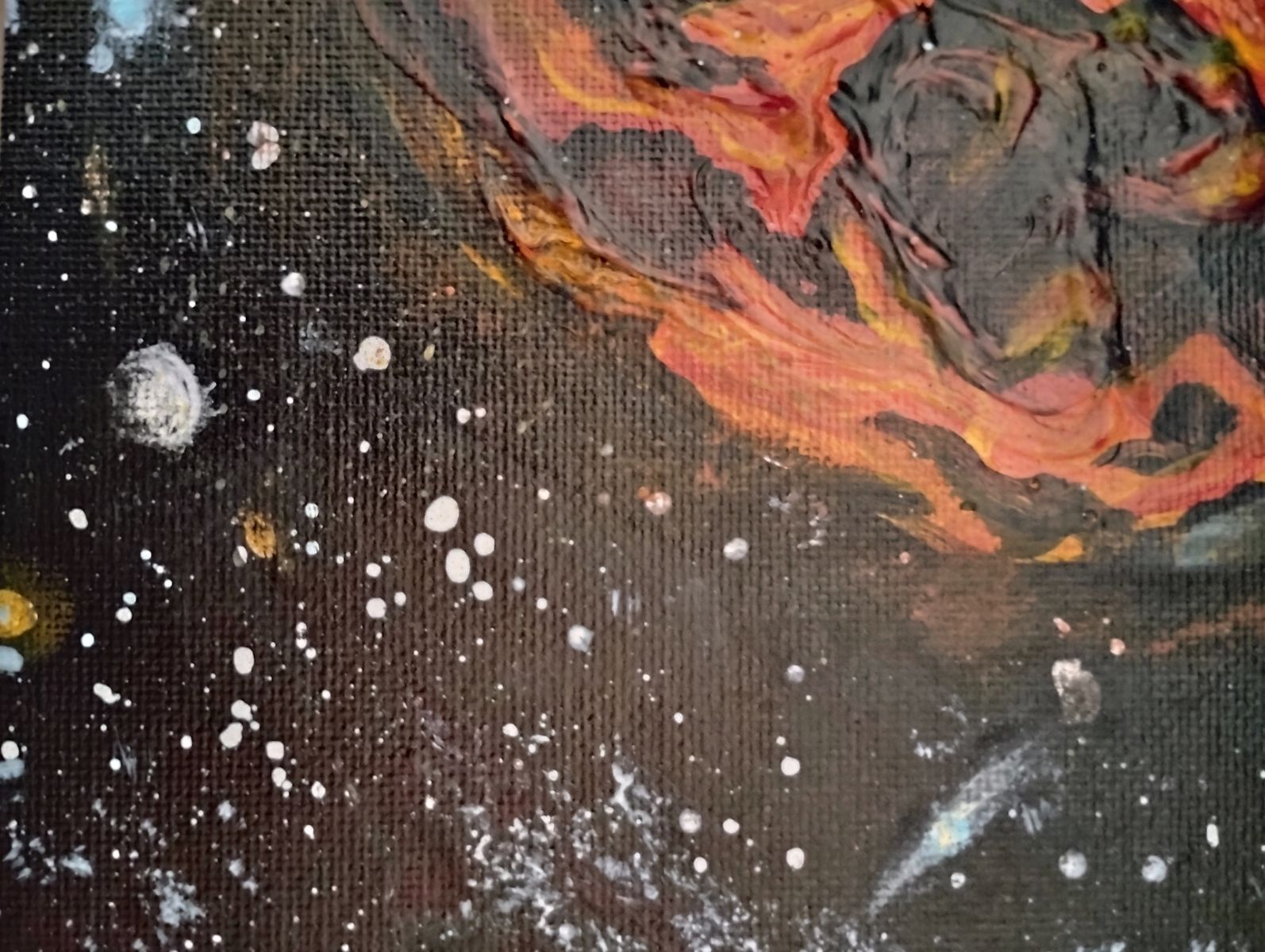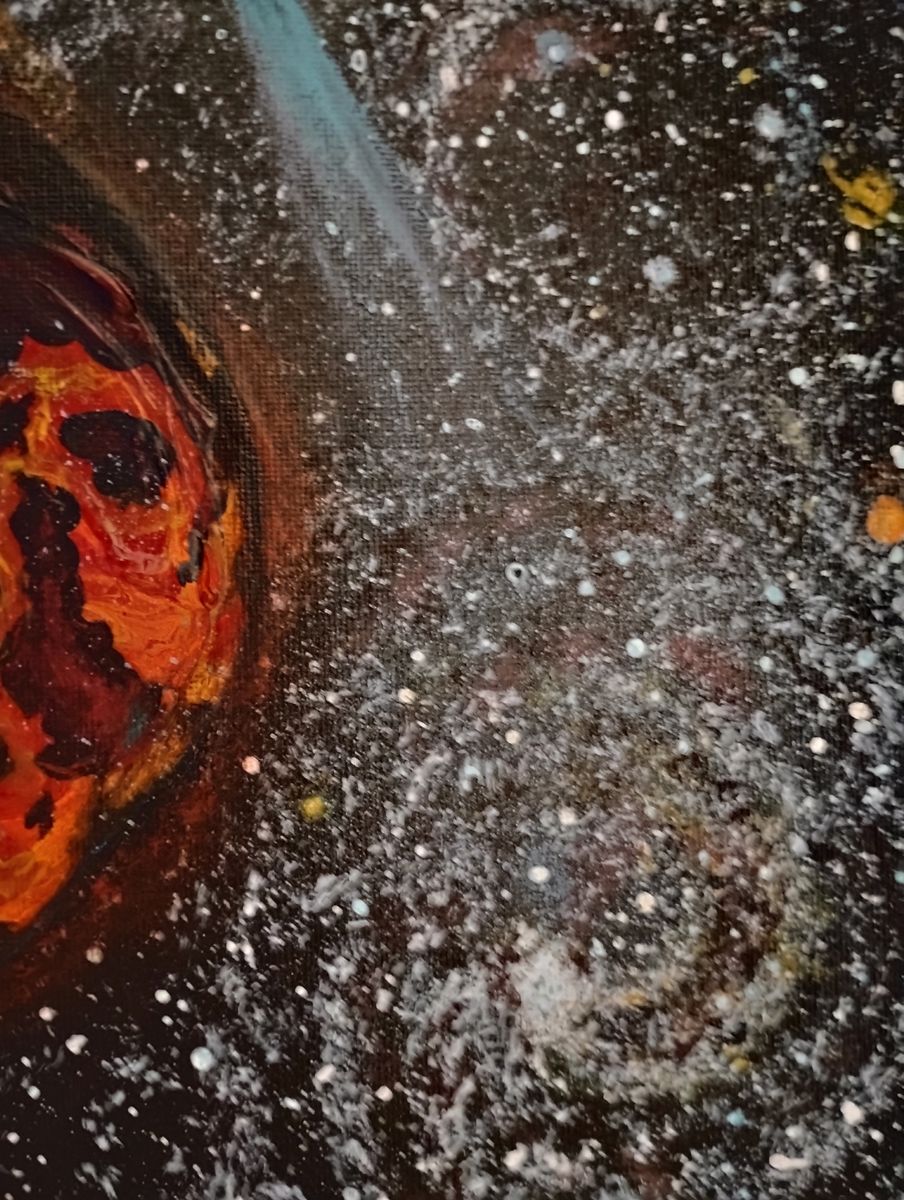 Venmo11" x 14" Original acrylic painting on canvas board. A new molten planet cools down idst a sea of galaxies, stars and more, as a spaceship flies by. My art company is Magenta Marshmallow Art & Photography LLC in Roy, Utah.