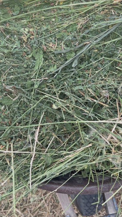 This is first and second cutting of alfalfa. It is hand stacked because the bales ended up being too large for the hay hauler. It hasn’t been covered but overall is pretty good hay. See the video of a bale we opened up. Located near Elmo UT Near Huntington UT 50 Bale minimum - We have around 700 bales