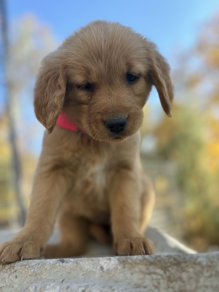 Our Golden’s are extremely easy to train and very well behaved in all areas of obedience. They also have gorgeous athletic look and anyone who meets them falls in love with them right away! Pups are SMART, quick learner and eager to please! We are willing to deliver anywhere from slc to southern Idaho or cache county area. comes with: 3 vet visits 1 year health guarantee A discounted rate for the advanced program for training when he is older Small bag of food CRATE trained Obedience commands-sit, “no”, potty training, socialization, beginning on advanced (place, stay, leash work) etc.... Neural stimulation to make a well rounded and easy dog Transition training back to home where we are there to help you with any puppy behavior questions and concerns. 1 year Health guarantee