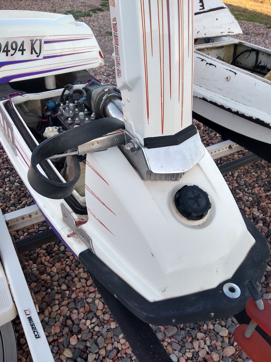 Kawasaki 550SX- rear exhaust. Engine needs rebuild. Has SBN44 carb and adapter, mariner chrome half pipe, aluminum waterbox, steering, hull reinforcers, ride plate, intake grate, ect ect.... .