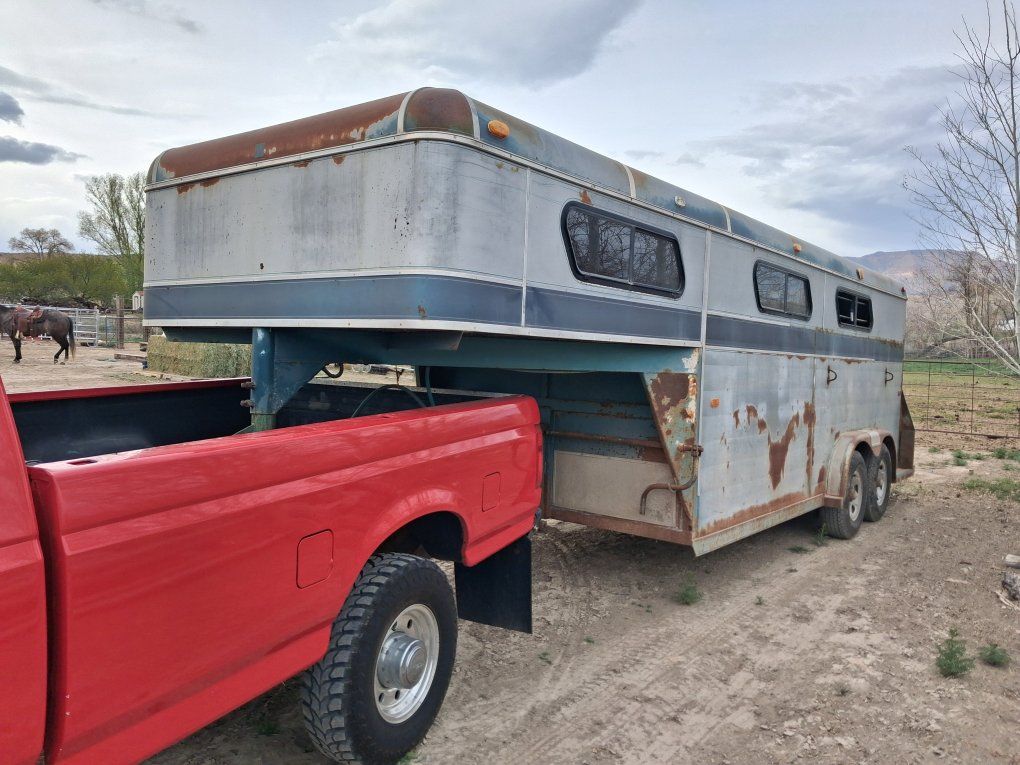 Solid old trailer, tack room doesn't leak. I removed the back tack and was gonna build a full back door but got a different trailer, the back door is the worst part of the trailer but it still is very usable. Has decent tires on it, I have the dividers butthey need some work, good trailer I just don't use it. Thanks for looking. $3500.00 OBO
