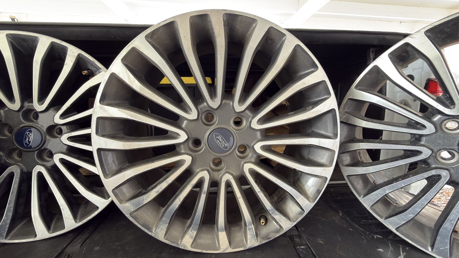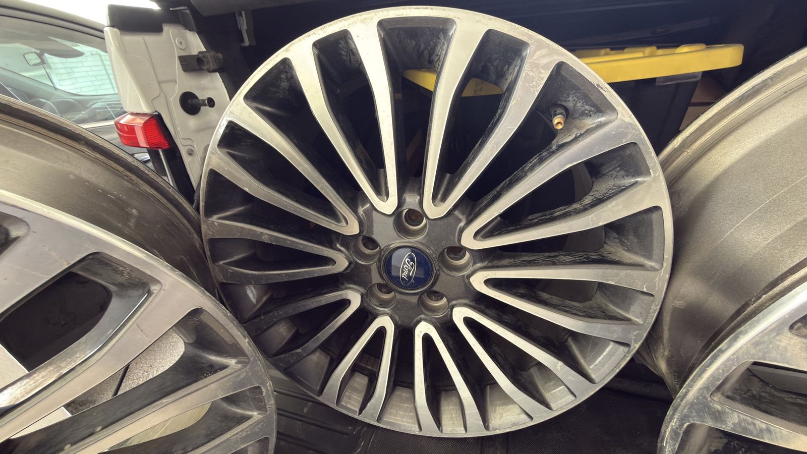 ZelleSelling these damaged wheels from a 2017 Ford Fusion titanium for cheap. Still has valve stems with TPMS.