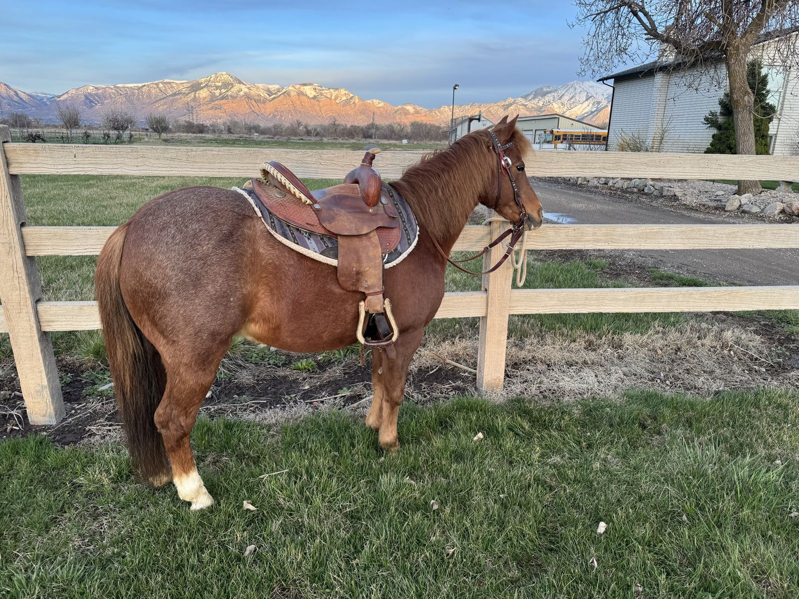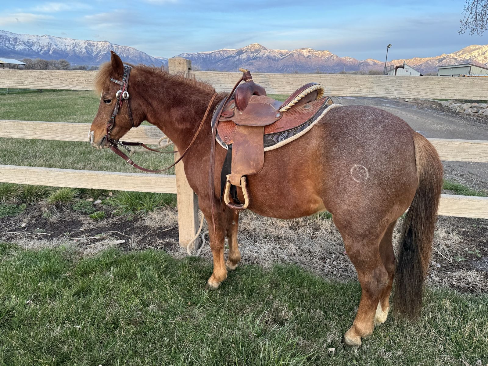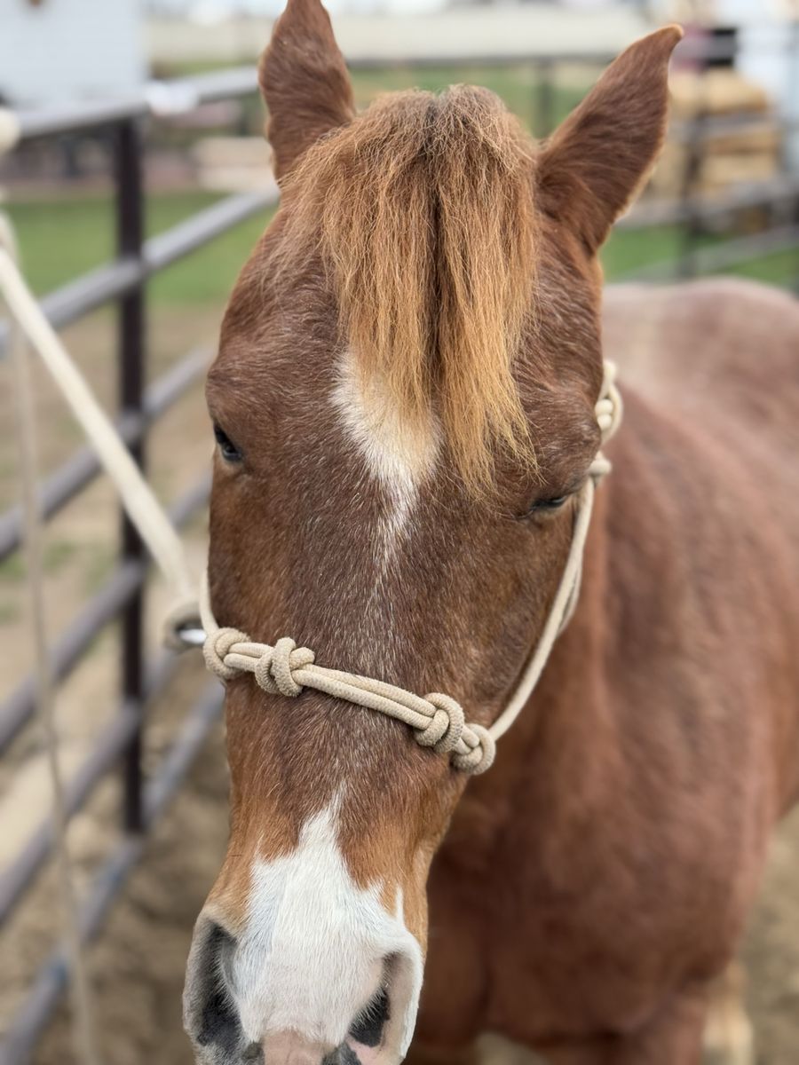 VenmoBuddy is 12.2 hands and 14 yrs old. He has been used for lessons on and off lead-line. He loves kids, loads into anything, great with his feet, clippers, doesnโt bit or kick. Also used for birthday parties and special events.