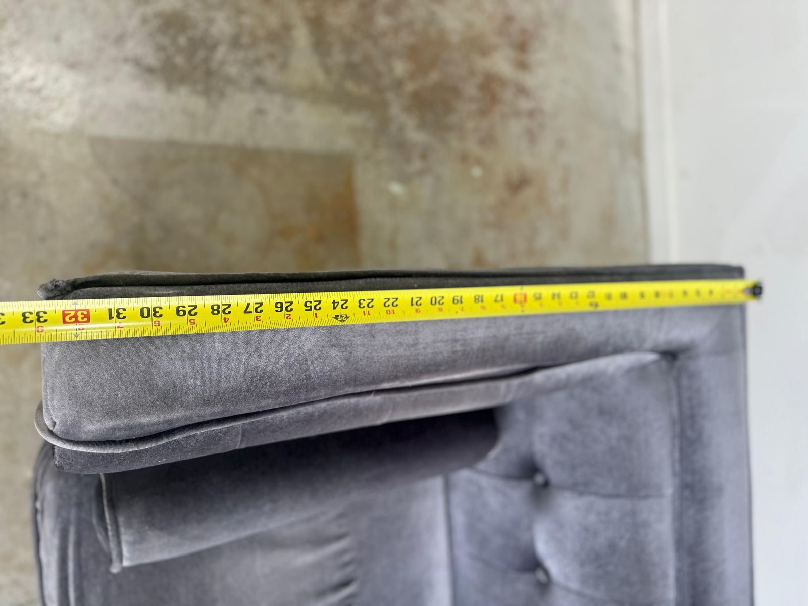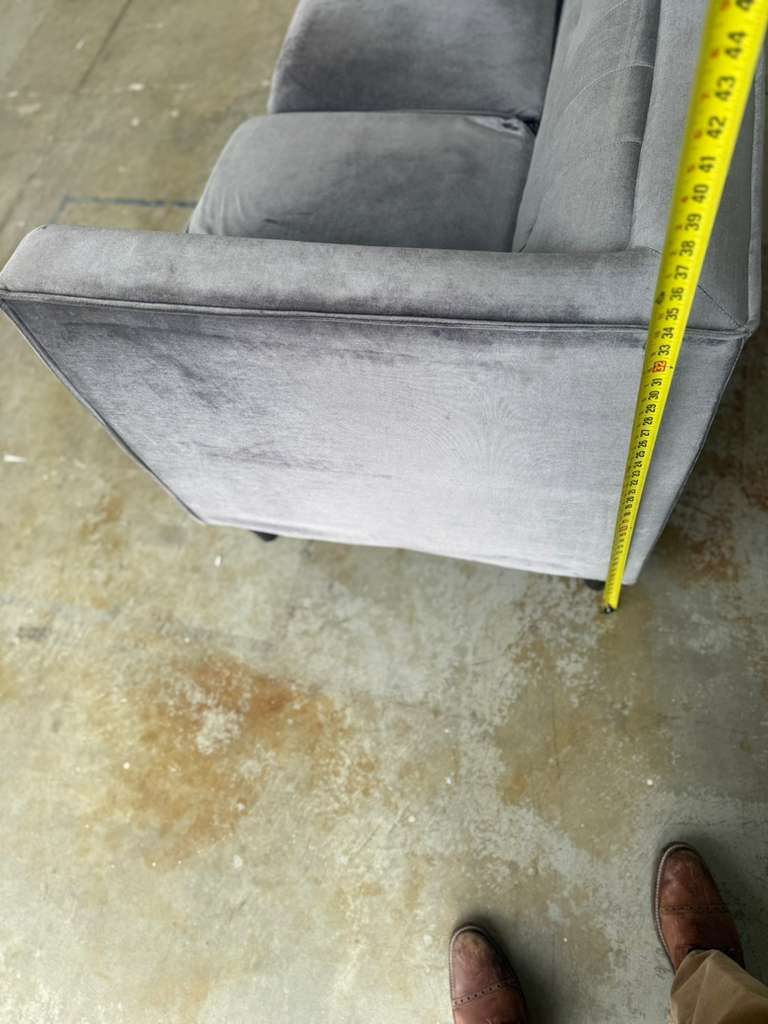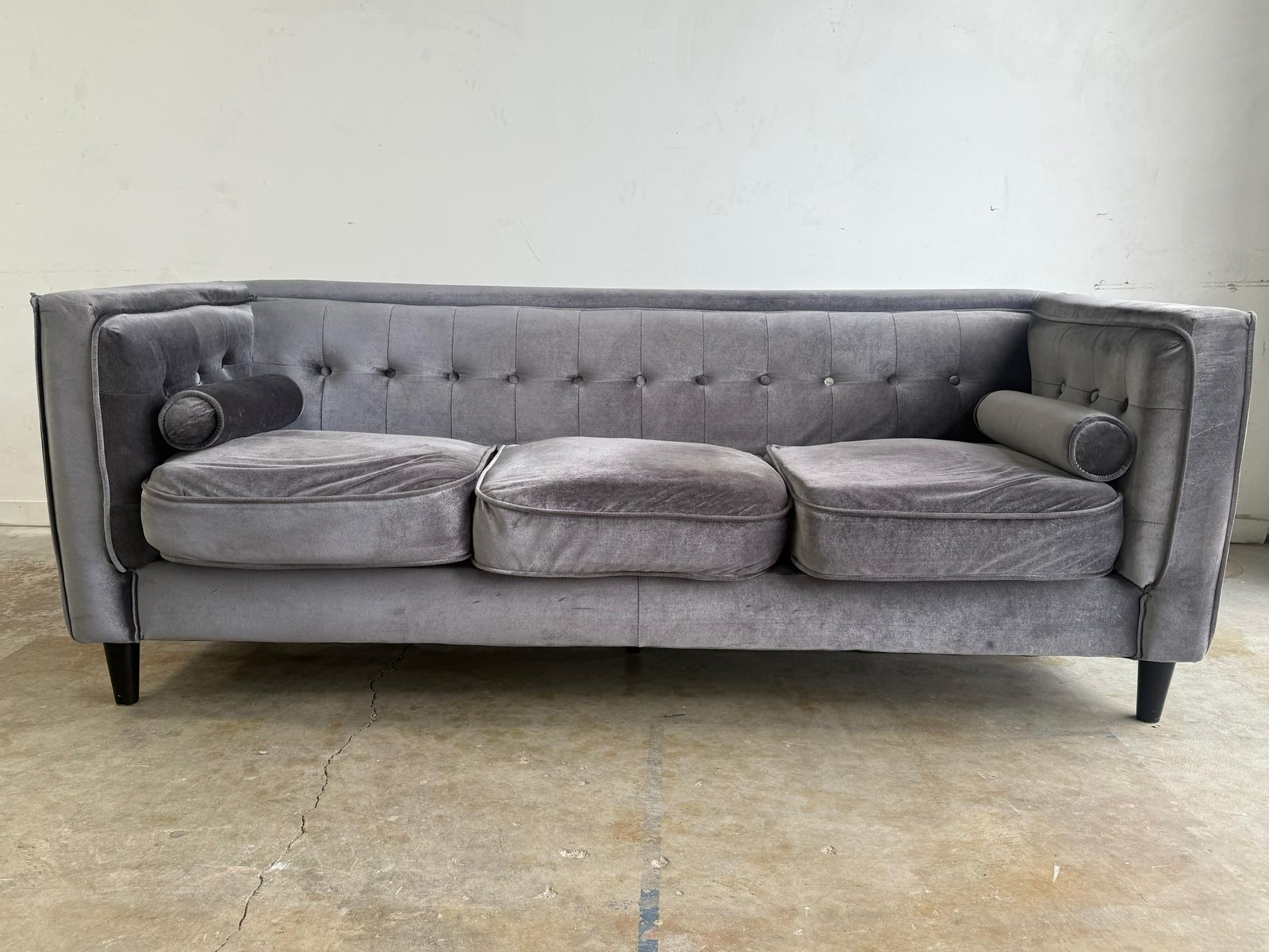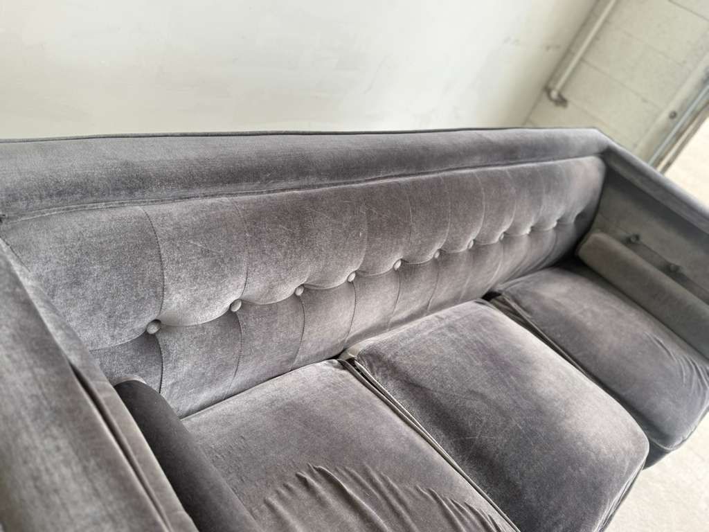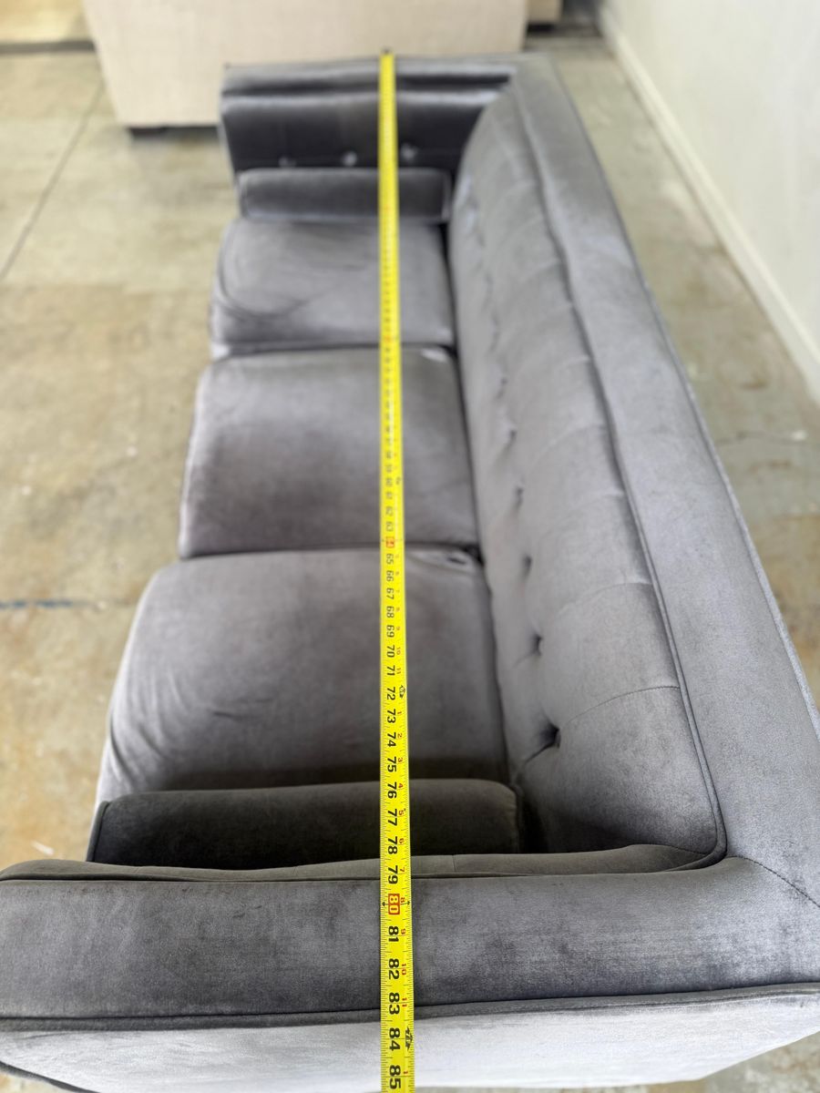 GooglePayBeautiful silver tufted velvet sofa.