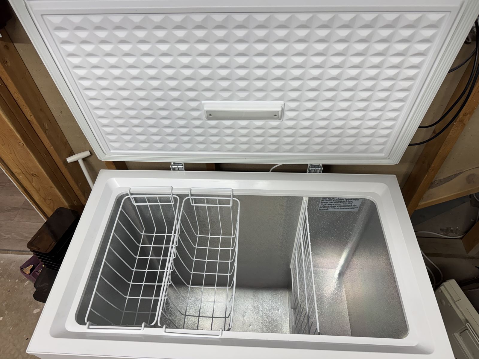 VenmoThis is a small 7.0 cubic foot chest freezer that was used in my mom's basement storage room. Works great! It appears my brother and nephew dropped it when they originally took it downstairs because there is a pretty good dent in the back, Has not affected its operation however. This freezer sells for new around $200.
