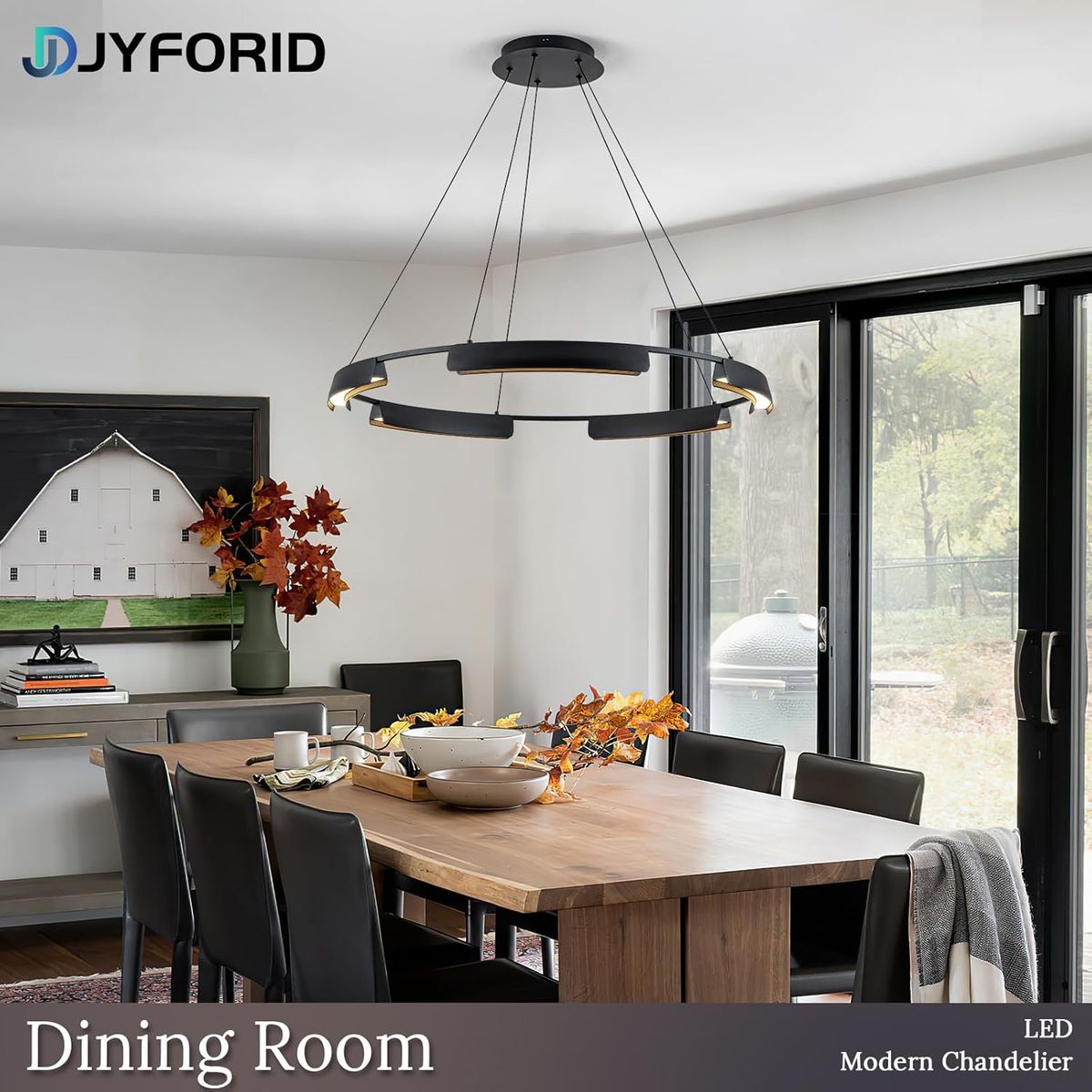 About this item - UNIQUE CHANDELIER: This modern chandelier features a sleek contemporary ring design. Its understated black finish transcends passing trends, effortlessly complementing any interior style