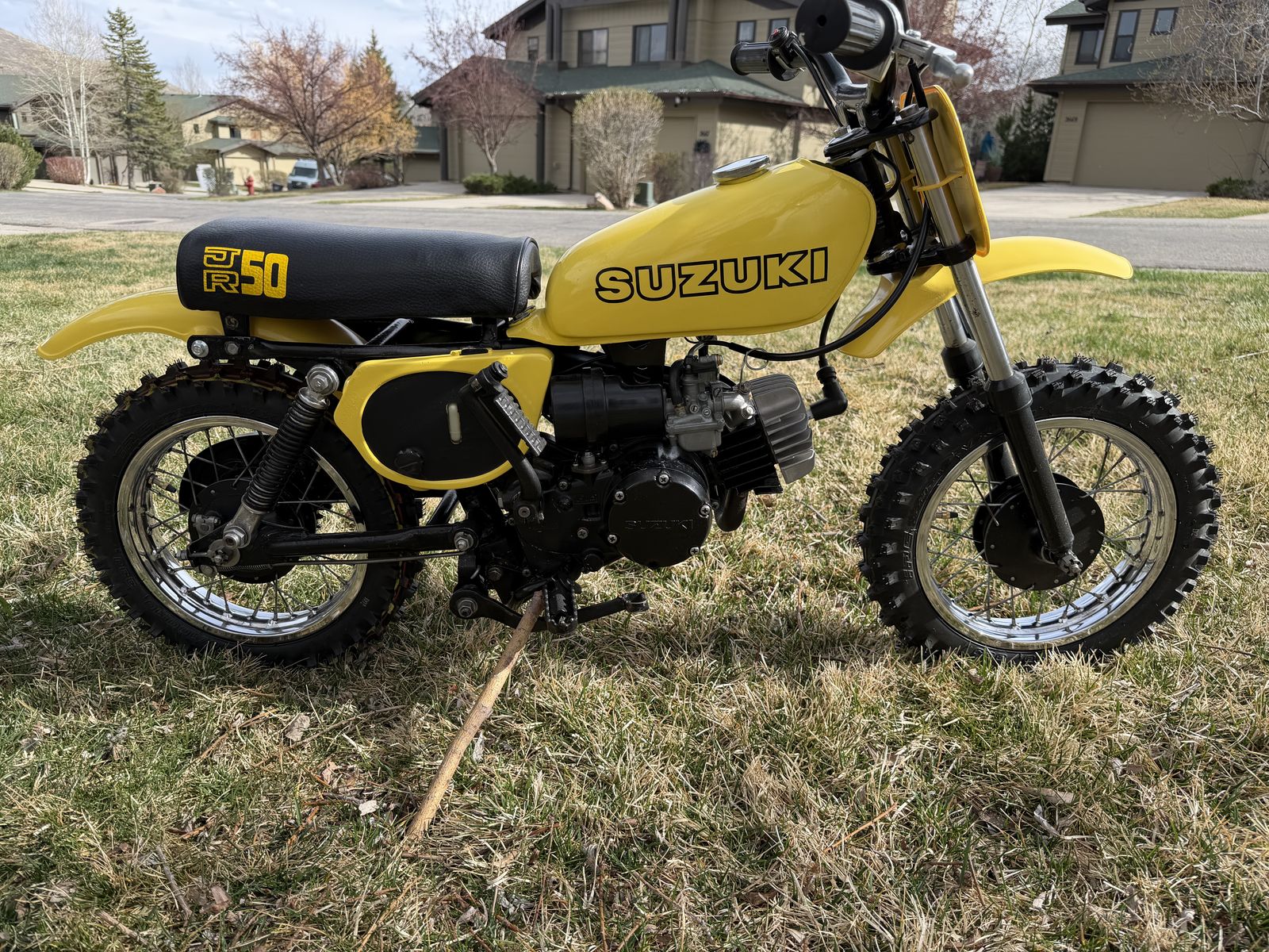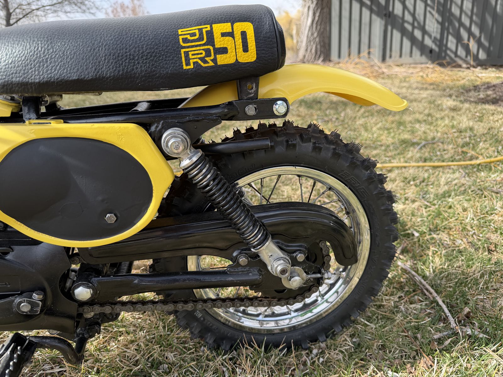 Restored vintage JR 50 ready for your collection. This bike has been on static display for several years and stored dry of all fluids. Ran fine before restoration. New tires and tubes, paint and graphics. Would consider a trade for another vintage bike needing restoration.