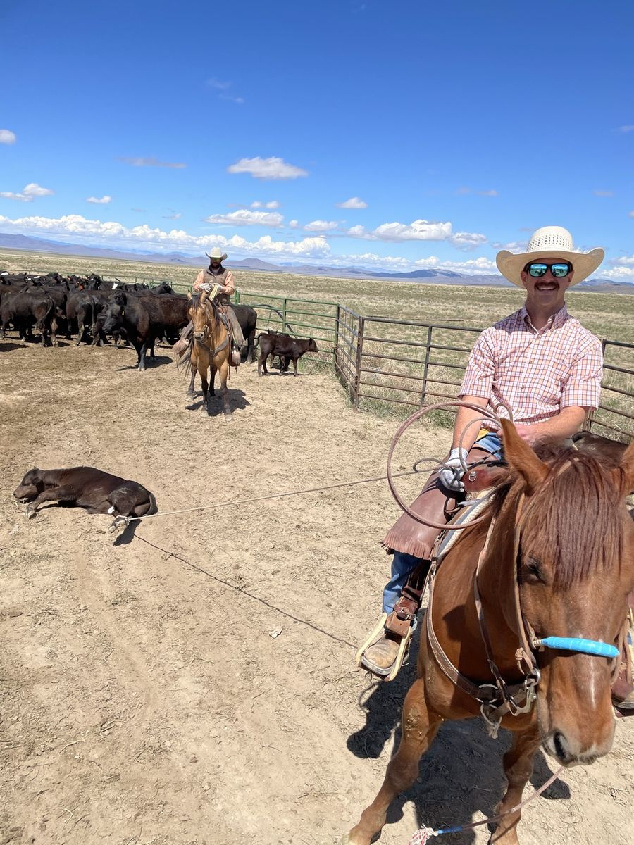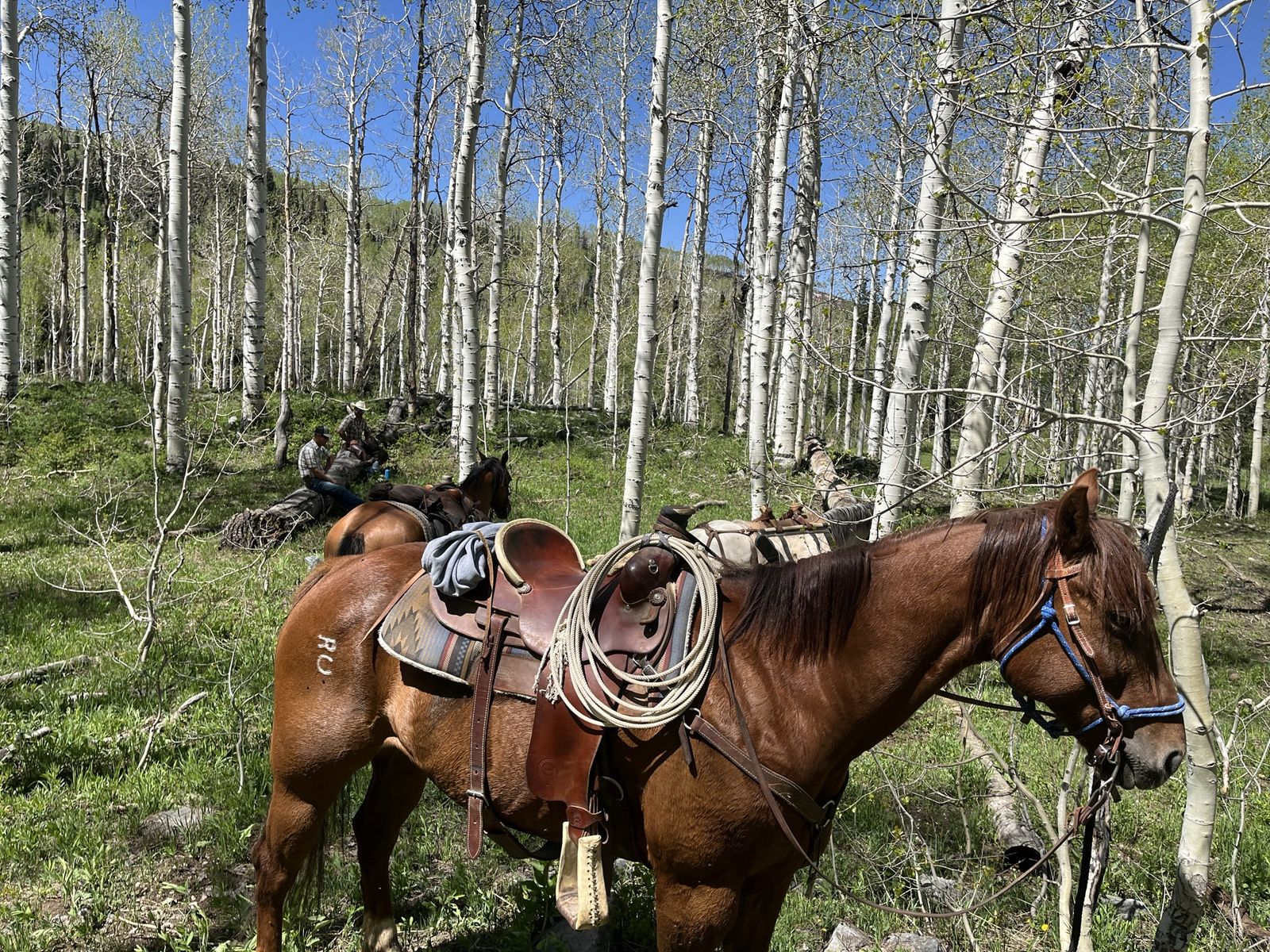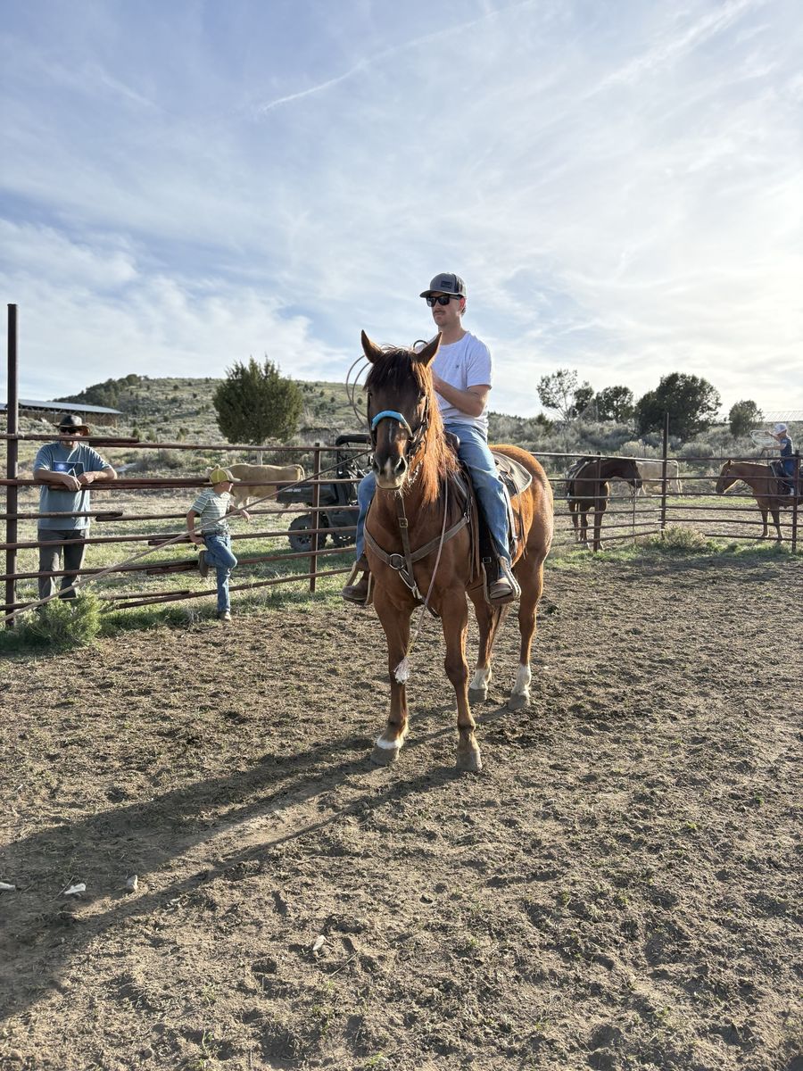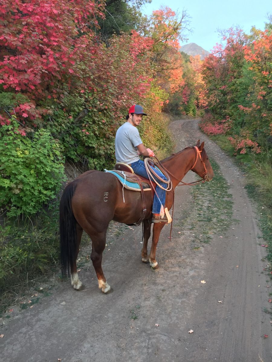 This is an awesome horse. He has had a lot of time on him trail riding in the mountains leading pack horses, no problem crossing rivers and streams. I have branded lots of calves on him he is a started heel horse, I have roped the dummy as well as steers out of the box. My brother had him cowboying on a ranch roping and doctoring cows. My wife has rode him moving cows. He is a solid horse I have had him for 8 years only selling because my wife and I are having a baby I have other pictures and videos I can send you.