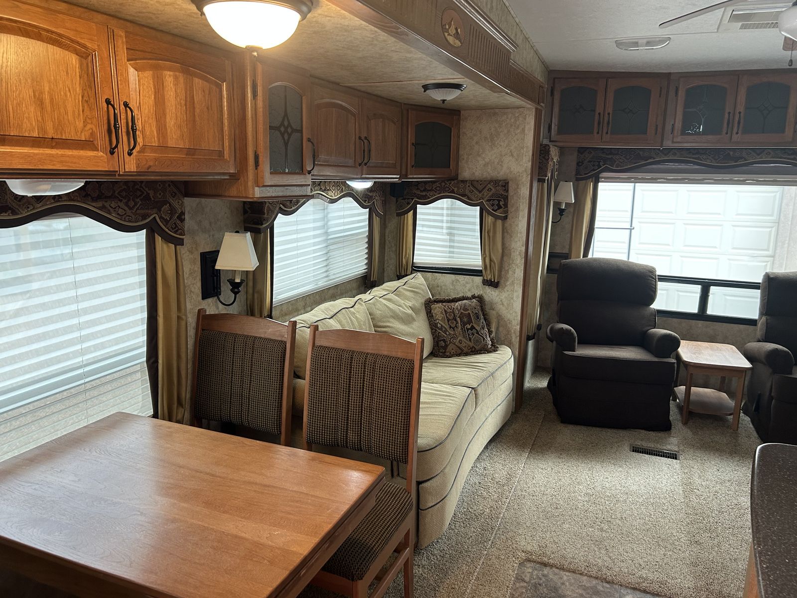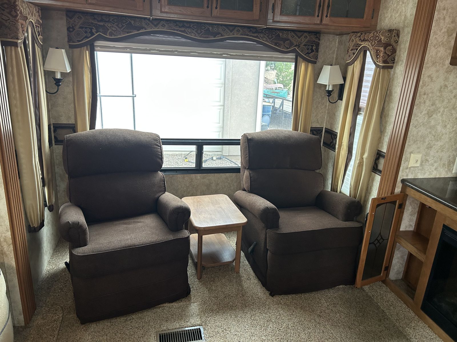This is a live in quality 5th wheel ready for the road or to set up long term. It's well insulated and fully functional. It has 2 AC's and2 heat and will deal with whatever weather comes its way.