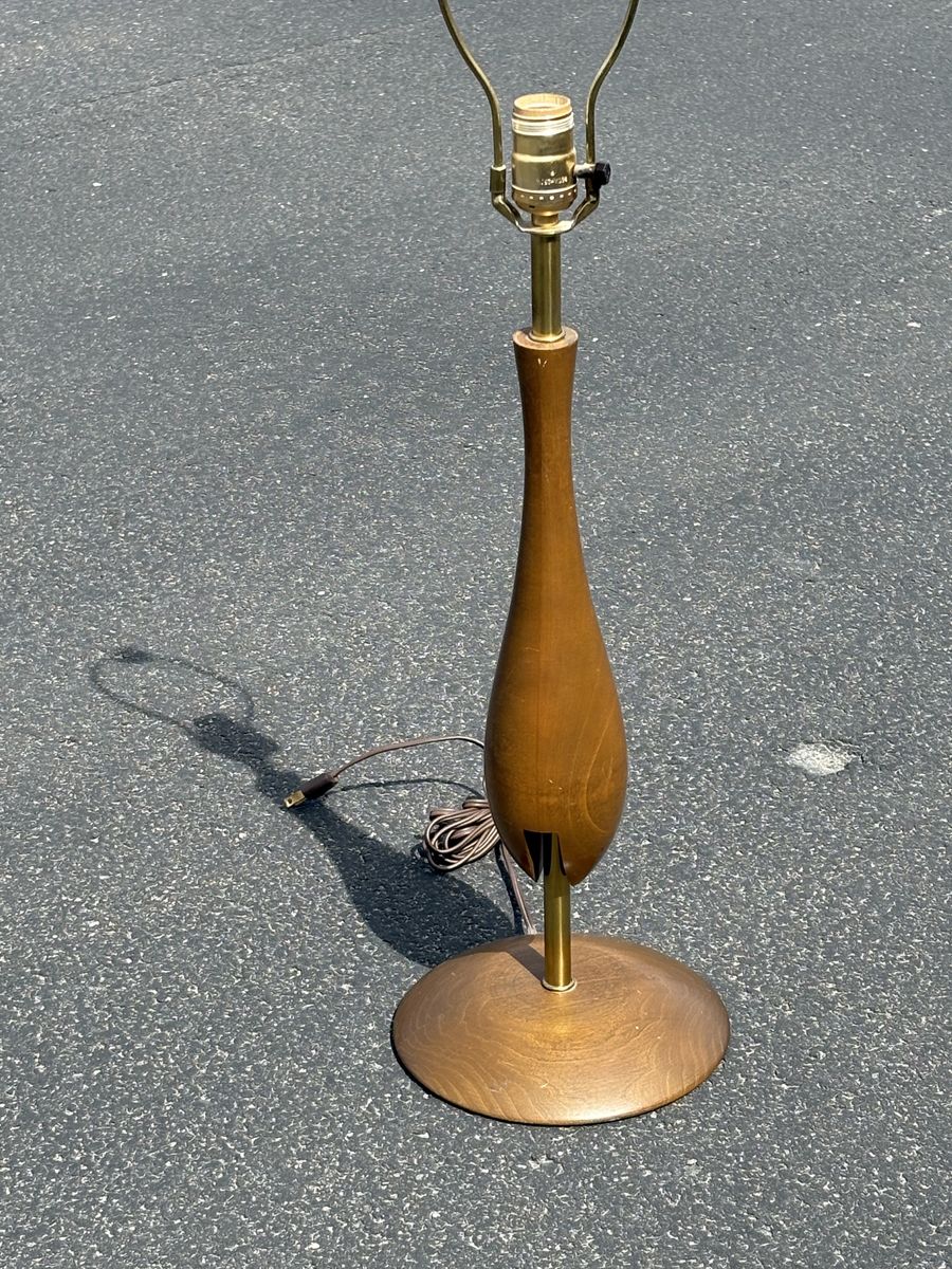 VenmoAwesome vintage wooden Mid Century Modern walnut and brass table lamp attributed to designer Tony Paul for Westwood Industries.