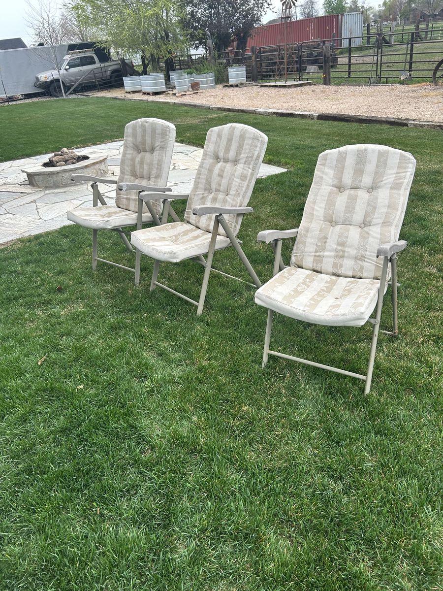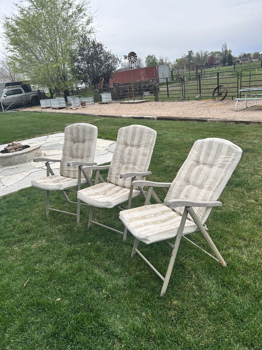 Three super nice padded patio chairs are very comfortable. They have adjustable back rest for total. Comfort would be great for any extra seating on any patio $40 or best offer 801-540-4414.