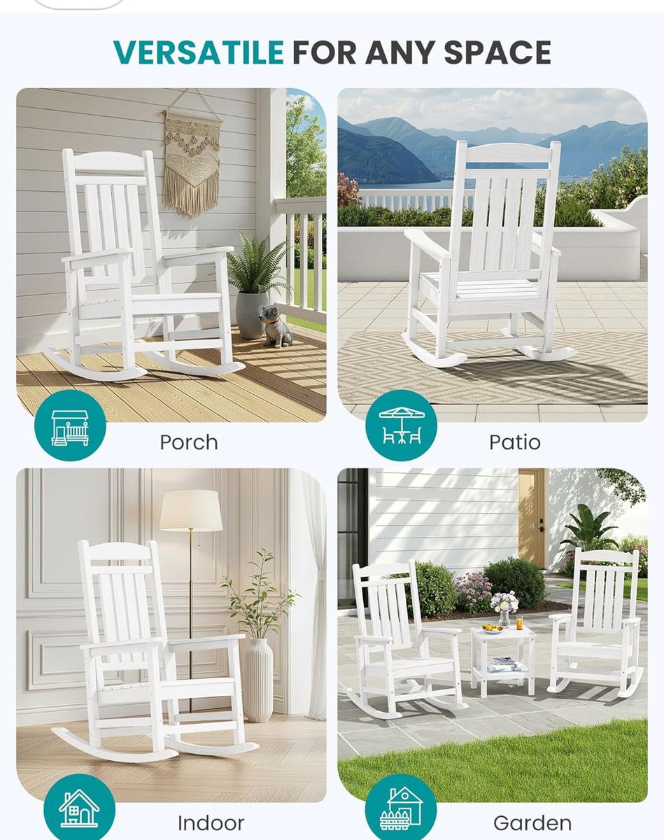 VenmoSERWALL Outdoor Rocking Chair Oversized HDPE Porch Rocker for Adults, All-Weather Composite Patio Rocking Chairs, White BRAND NEW IN THE BOX ASKING $100