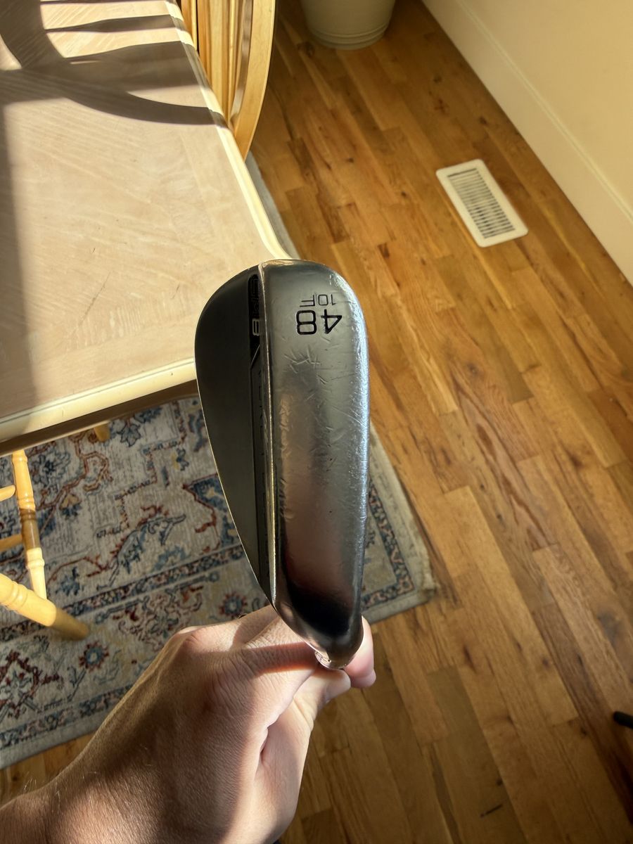 It's 48 degrees, 10 bounce, F grind. Right handed. Still in great condition!