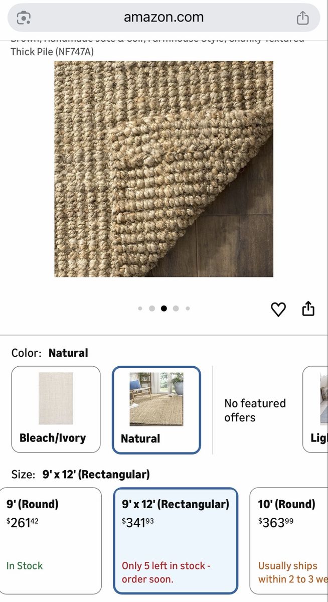 New. 9x12 Chunky Farmhouse Jute Area Rug