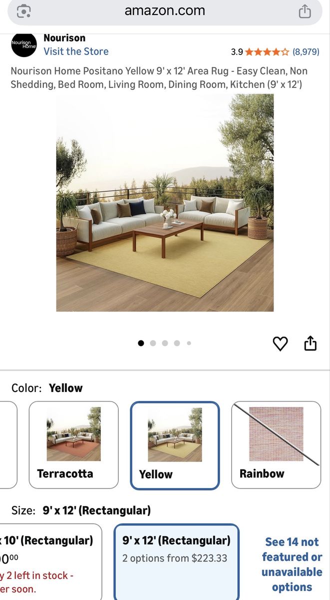 New. 9x12 Yellow Maize Indoor/Outdoor Area Rug