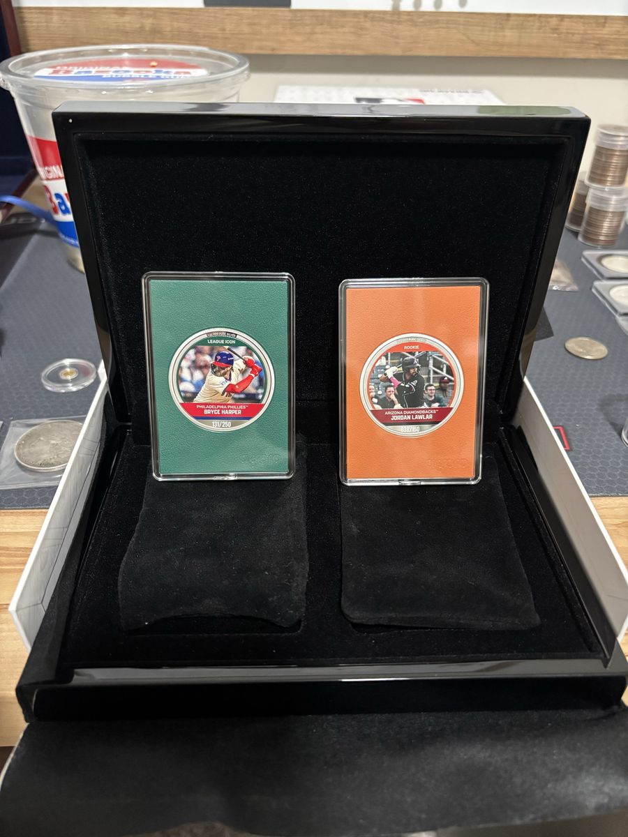VenmoI have available 1 Jordan Lawlar #38/150 Rookie 1 Adley Rutschmam #41/50 Rising star 2 Anthony Volpe #241/250 and 6/150 Both League Icon 1 Kumar Rocker #92/150 Rookie I can sell individually or if you buy 2 I have the box the silver coins come with. $110 each or 2 for $200 obo I am also willing to trade for other precious metals or other offers. Thanks