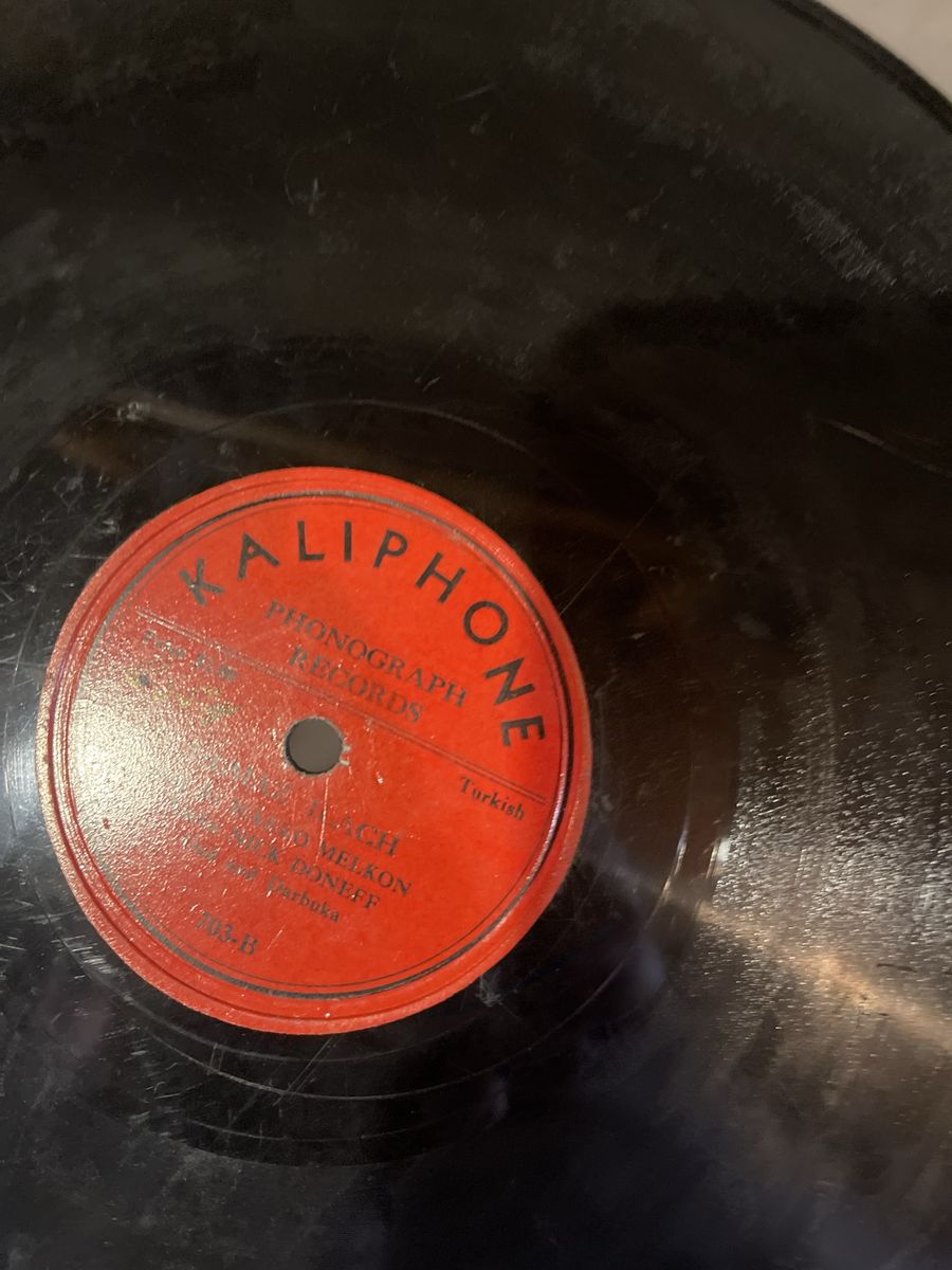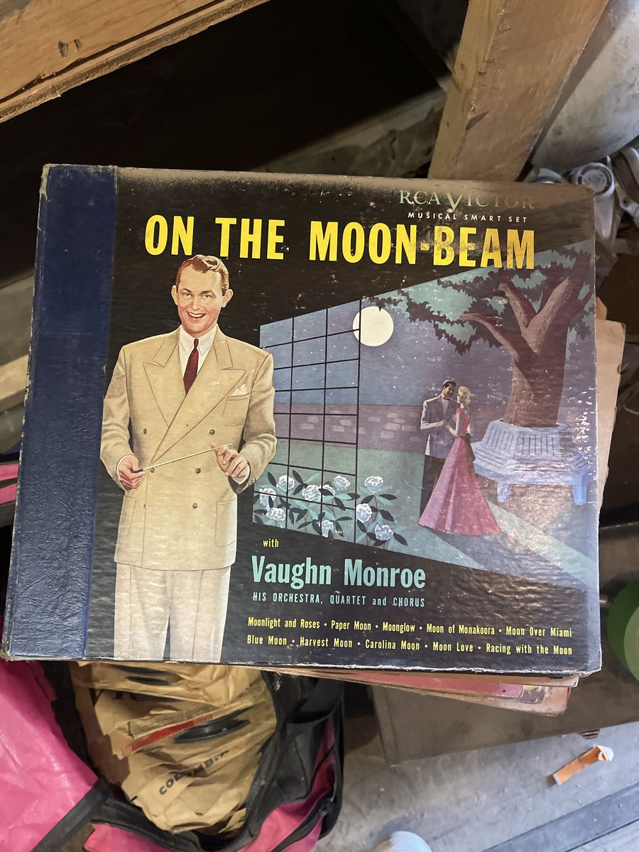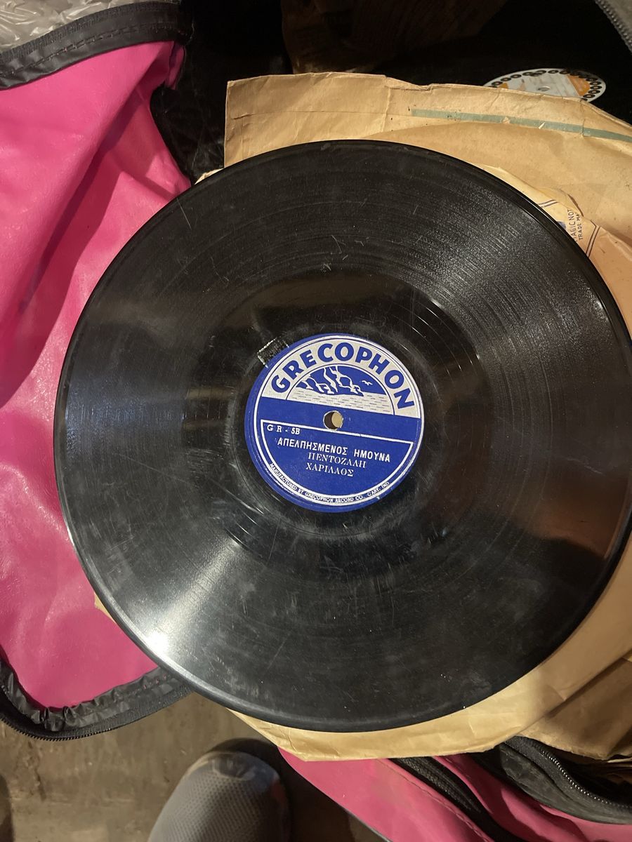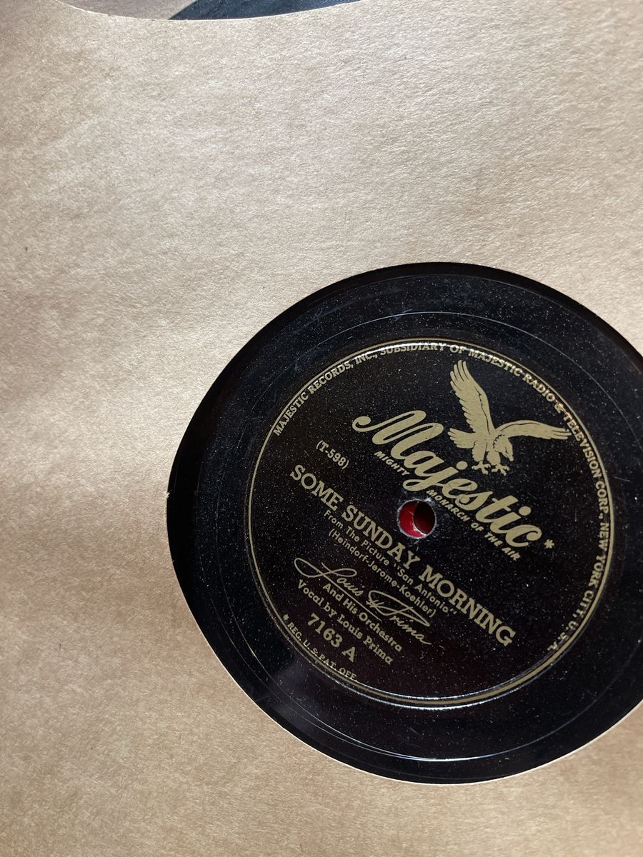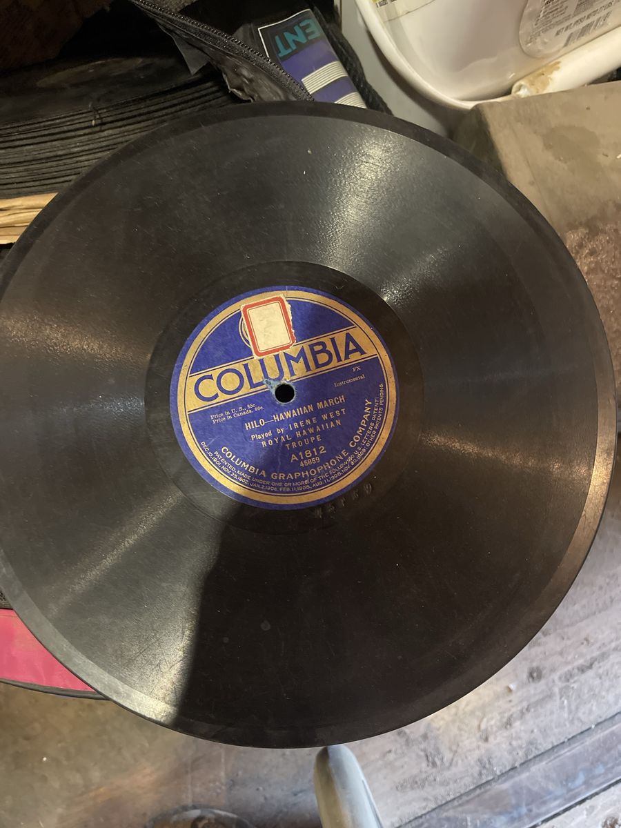 Collection of vintage 78 RPM records from various labels including Victor, Decca, Columbia, Blue Bonnet, and more.