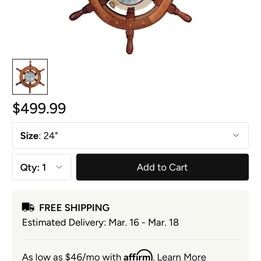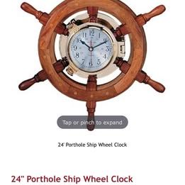 VenmoVintage 24" Wooden Nautical Ship Steering Wheel Wall Decor Heavy. Clock runs. Like New. Ship's clock quartz.